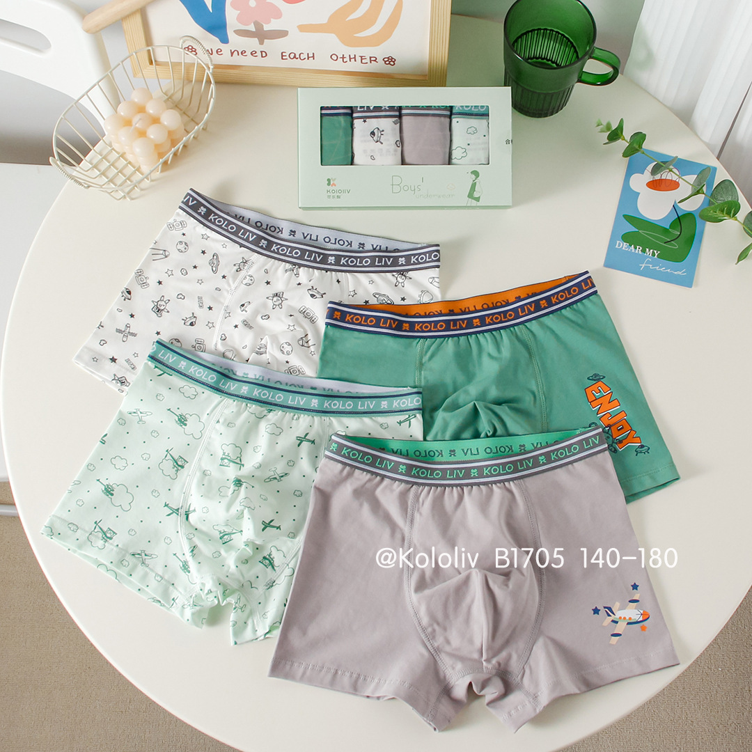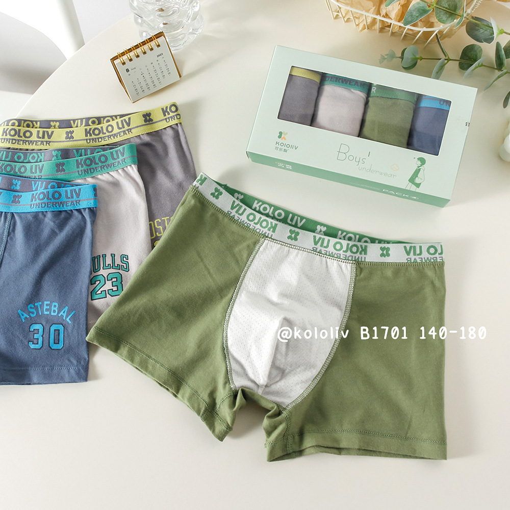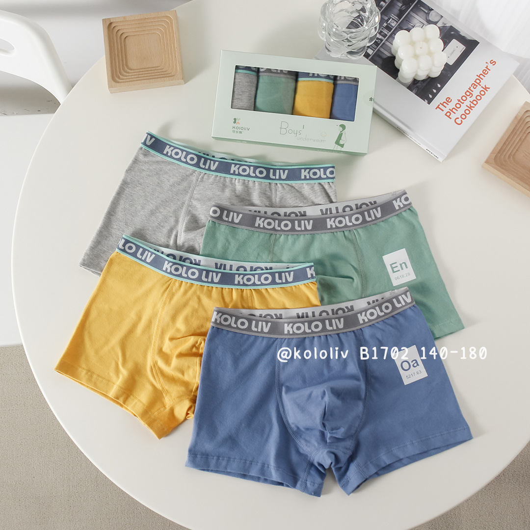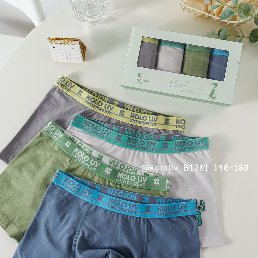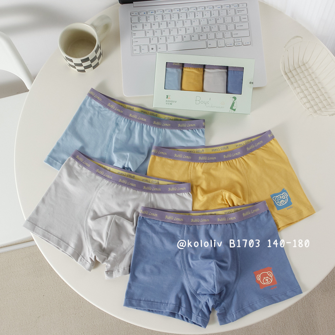 可乐梨男生内裤男童四角裤精梳棉学生纯色短裤青少年大童裤头