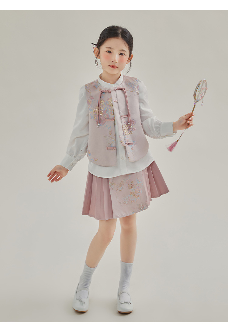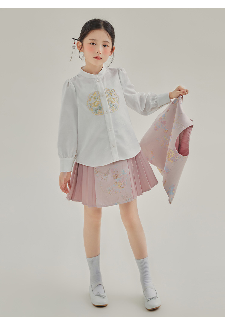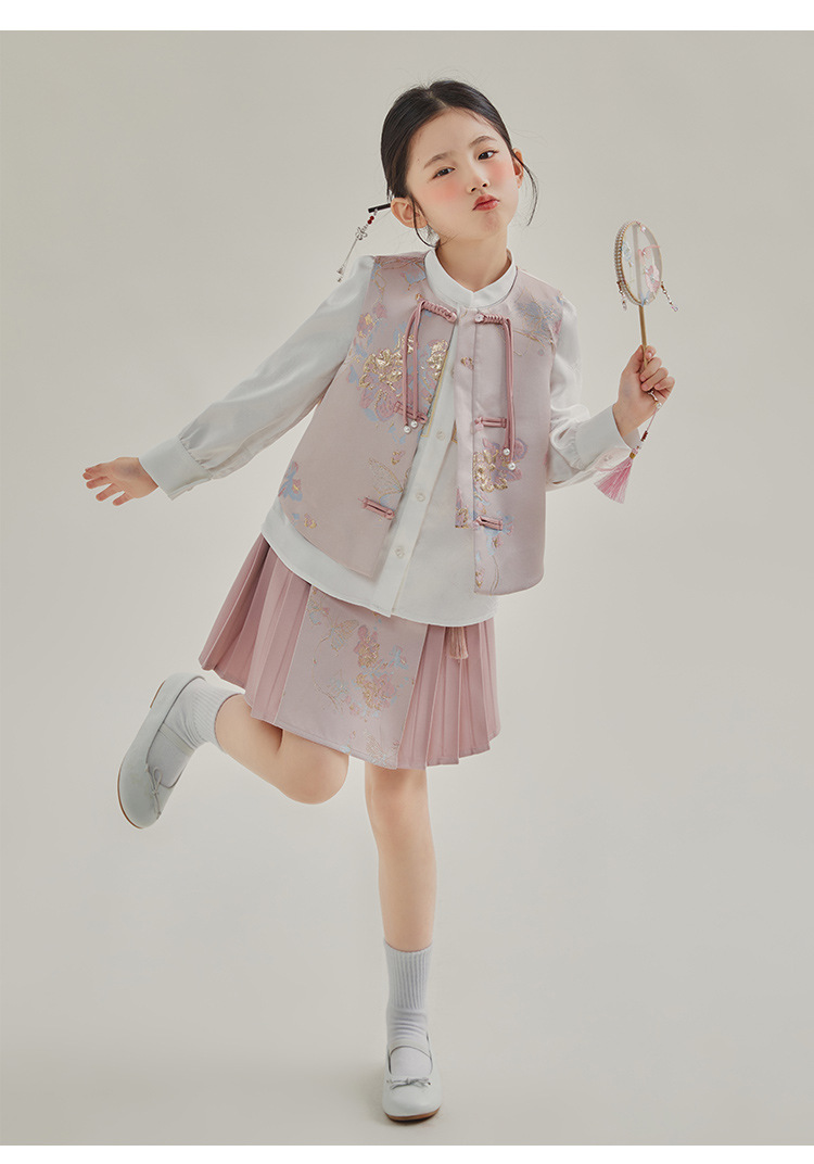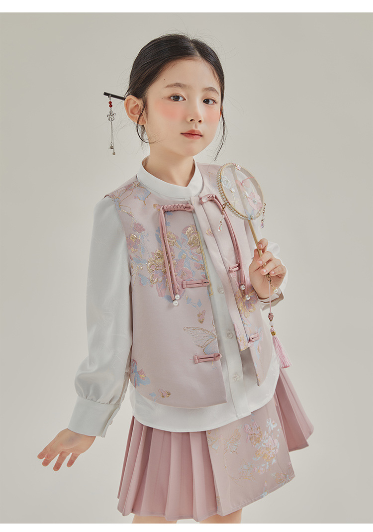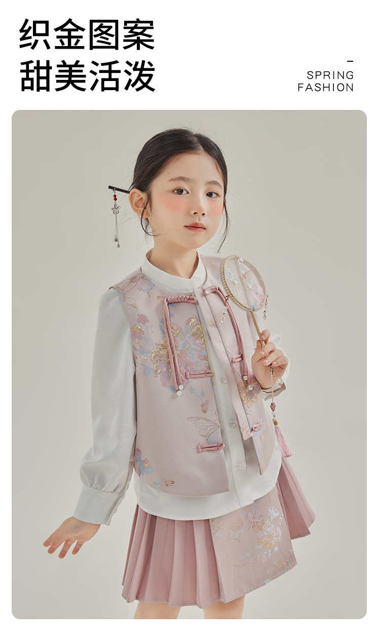 媛媛公主2024春女童装新中式国风绣花衬衫马甲两件套童装一件代发