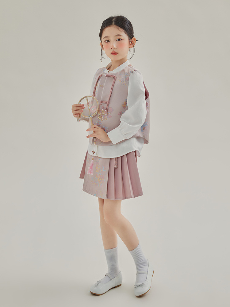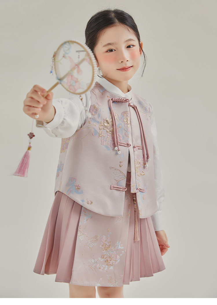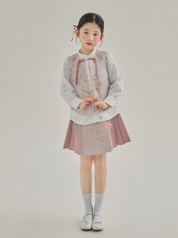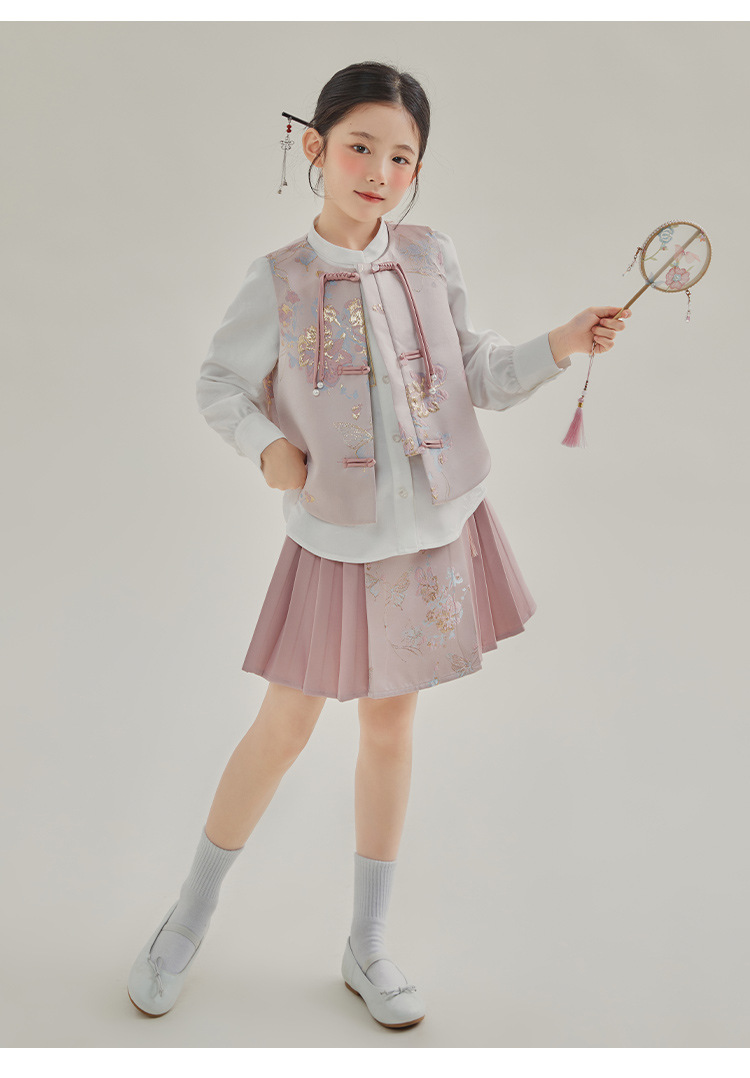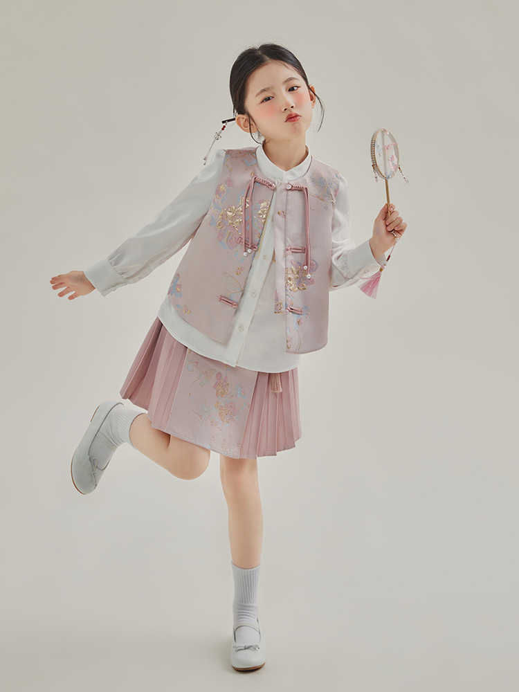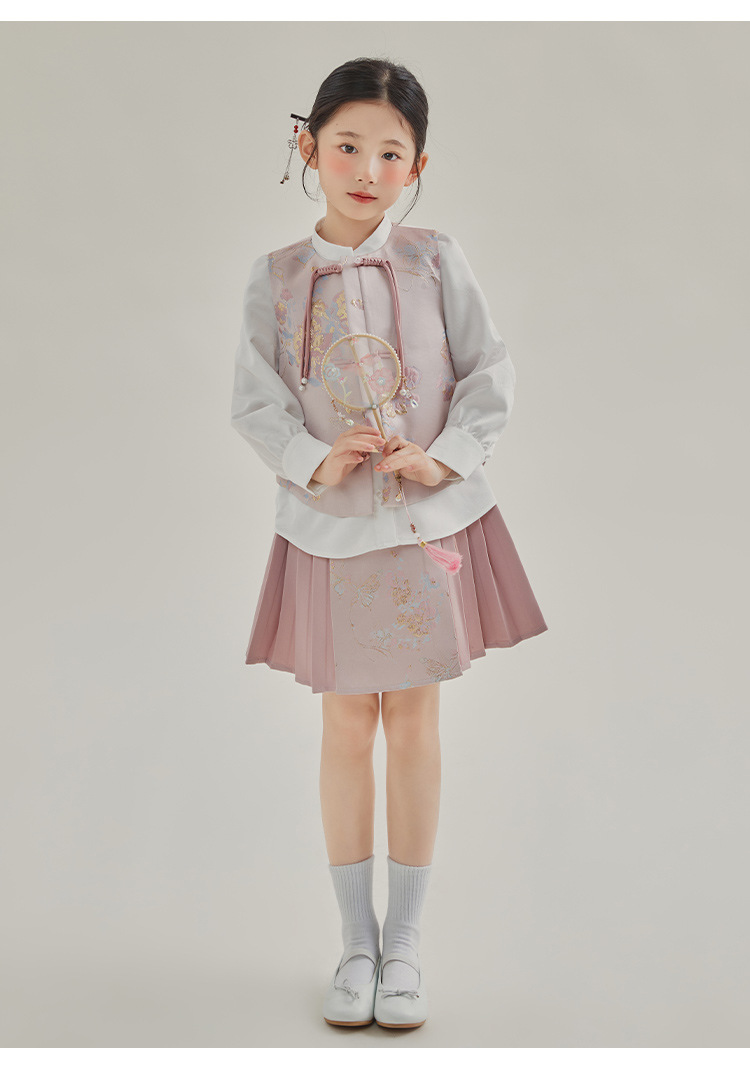 媛媛公主2024春女童装新中式国风绣花衬衫马甲两件套童装一件代发