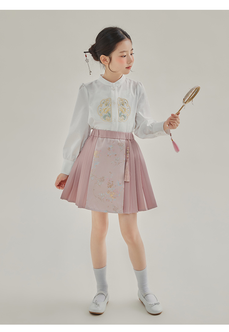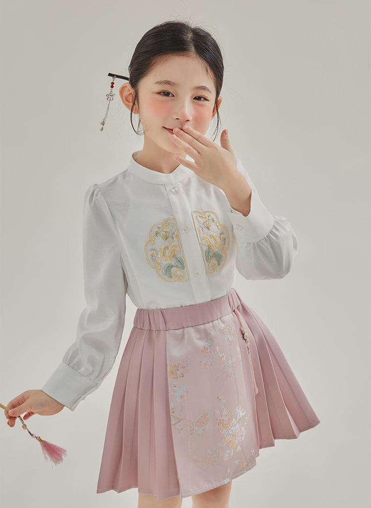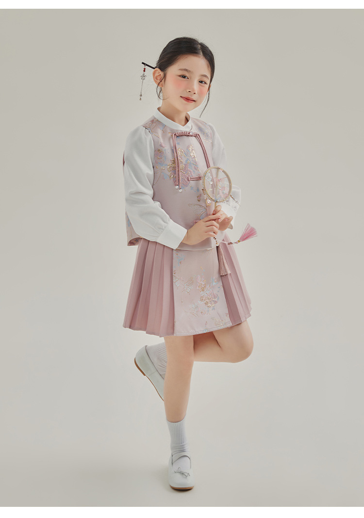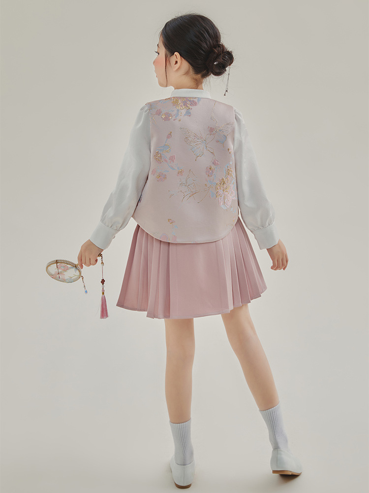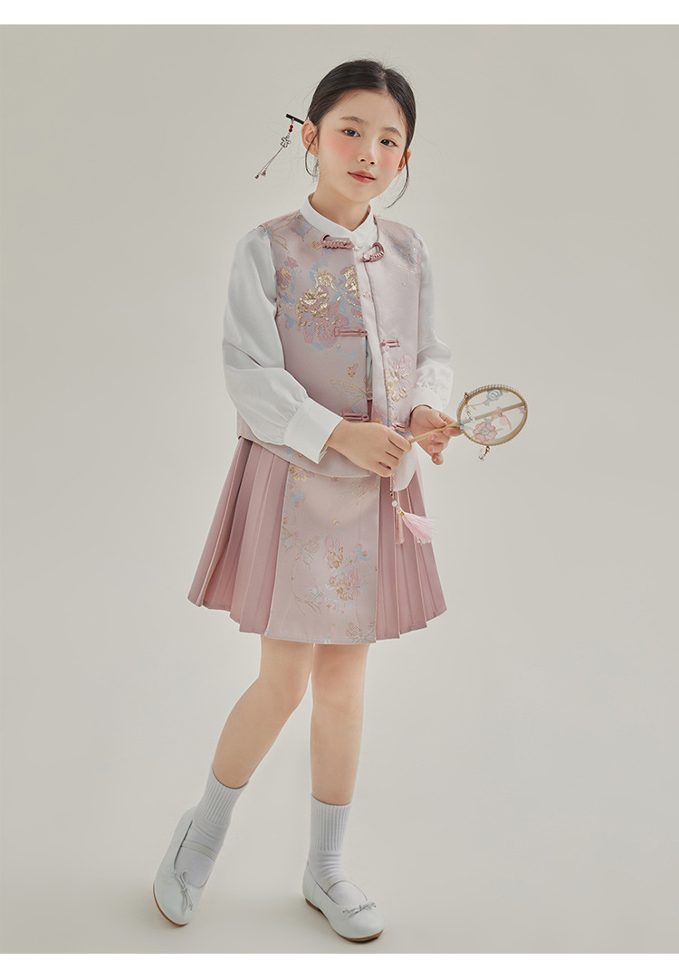 媛媛公主2024春女童装新中式国风绣花衬衫马甲两件套童装一件代发