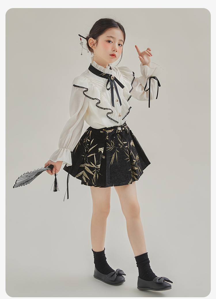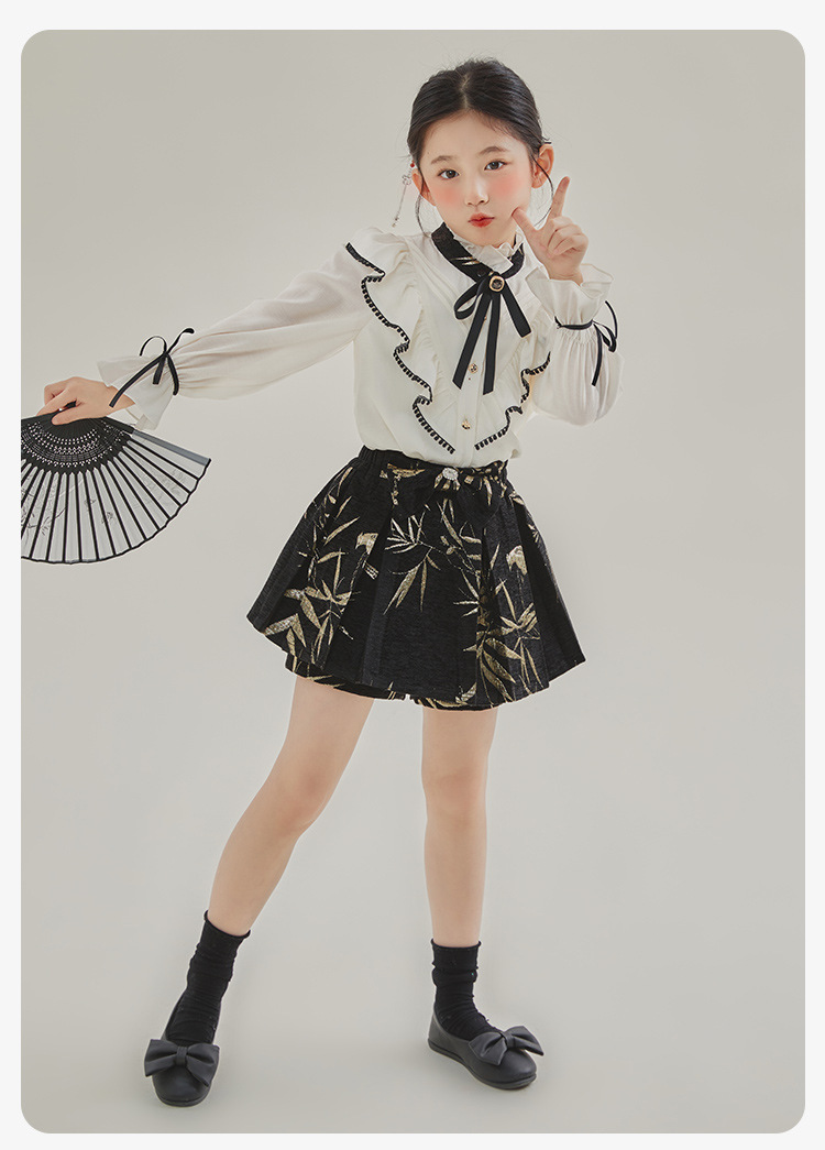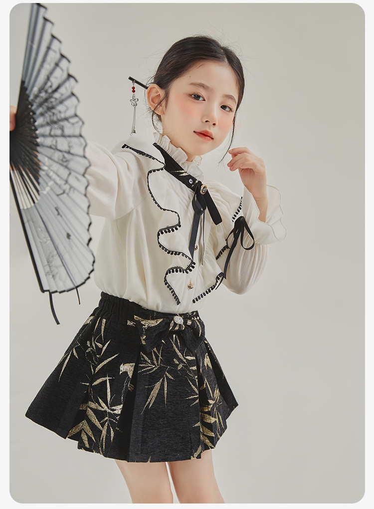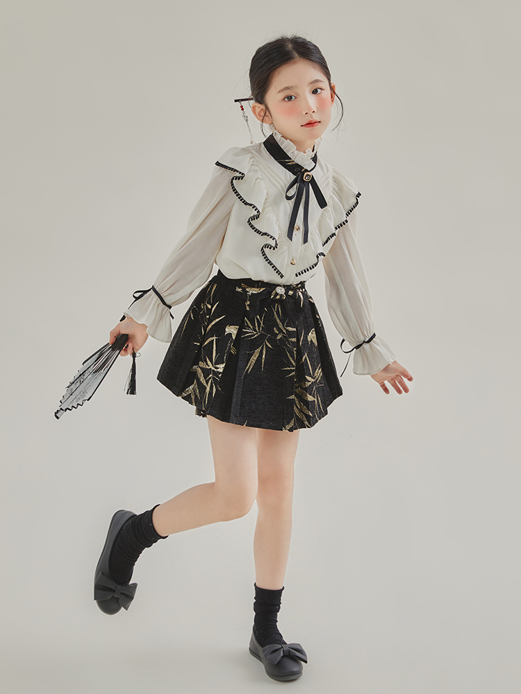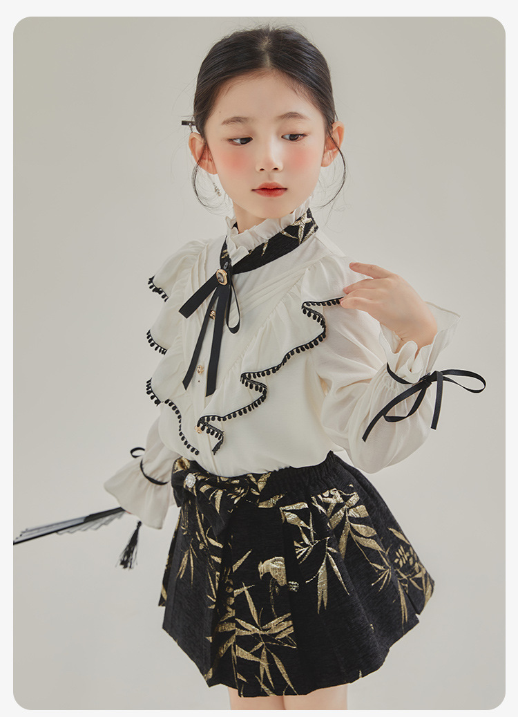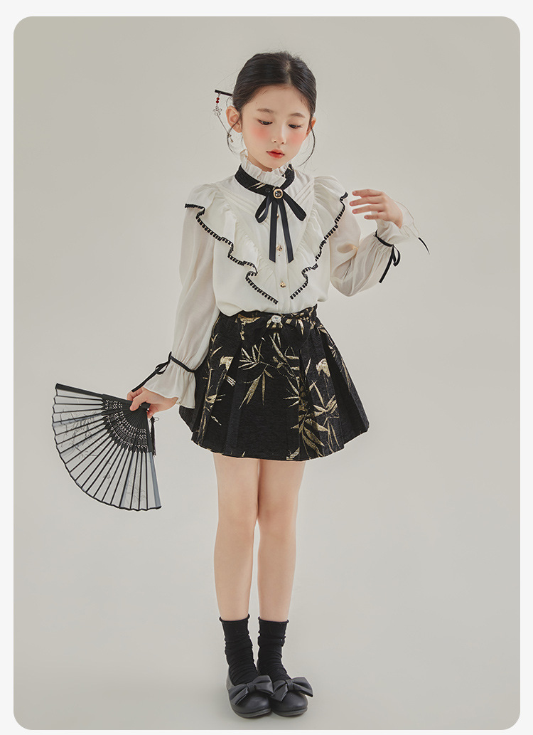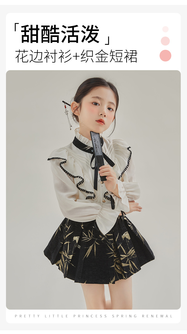 女童套装2024春款新品国风刺绣洋气衬衫半身裙两件套小女孩童装