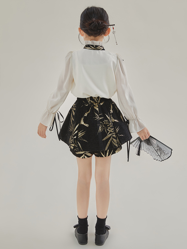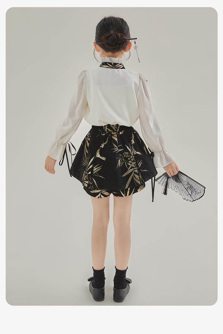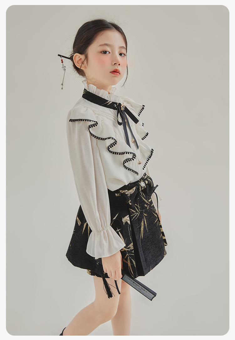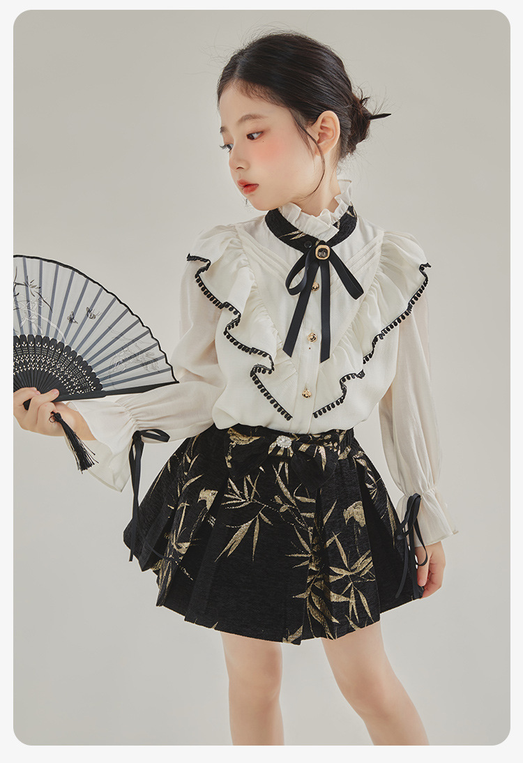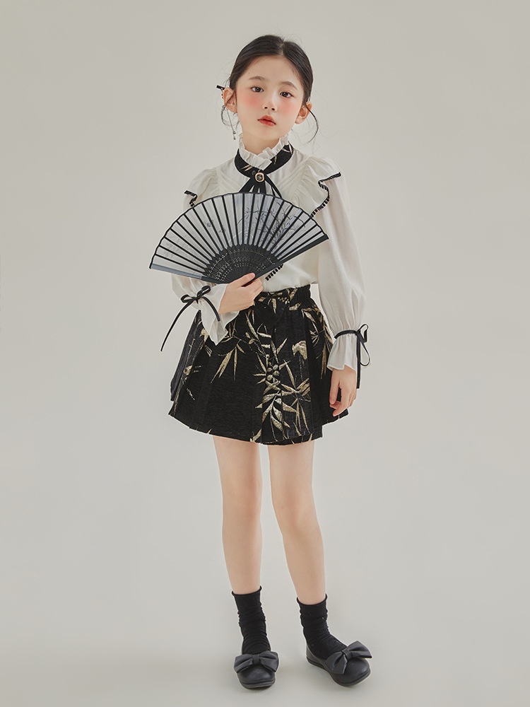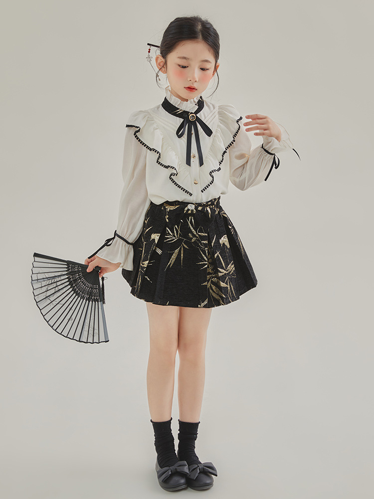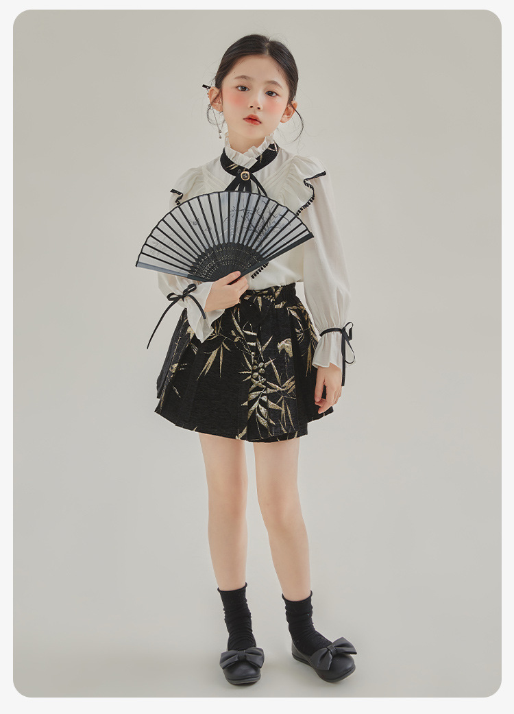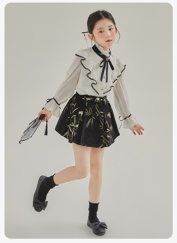 女童套装2024春款新品国风刺绣洋气衬衫半身裙两件套小女孩童装