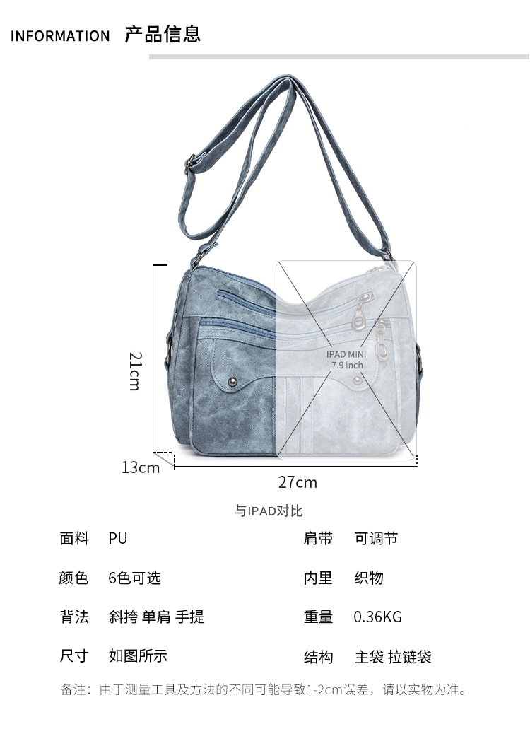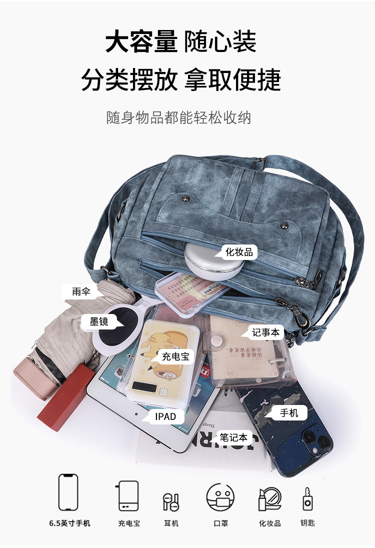 女包新款休闲单肩包时尚多层口袋妈妈包批发