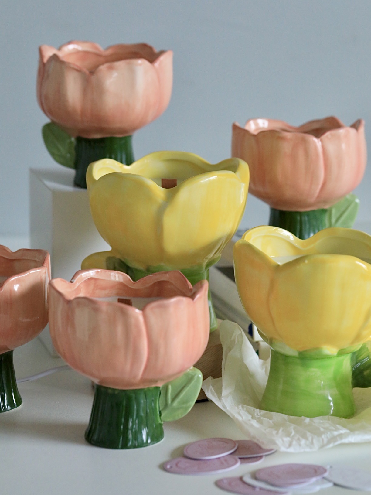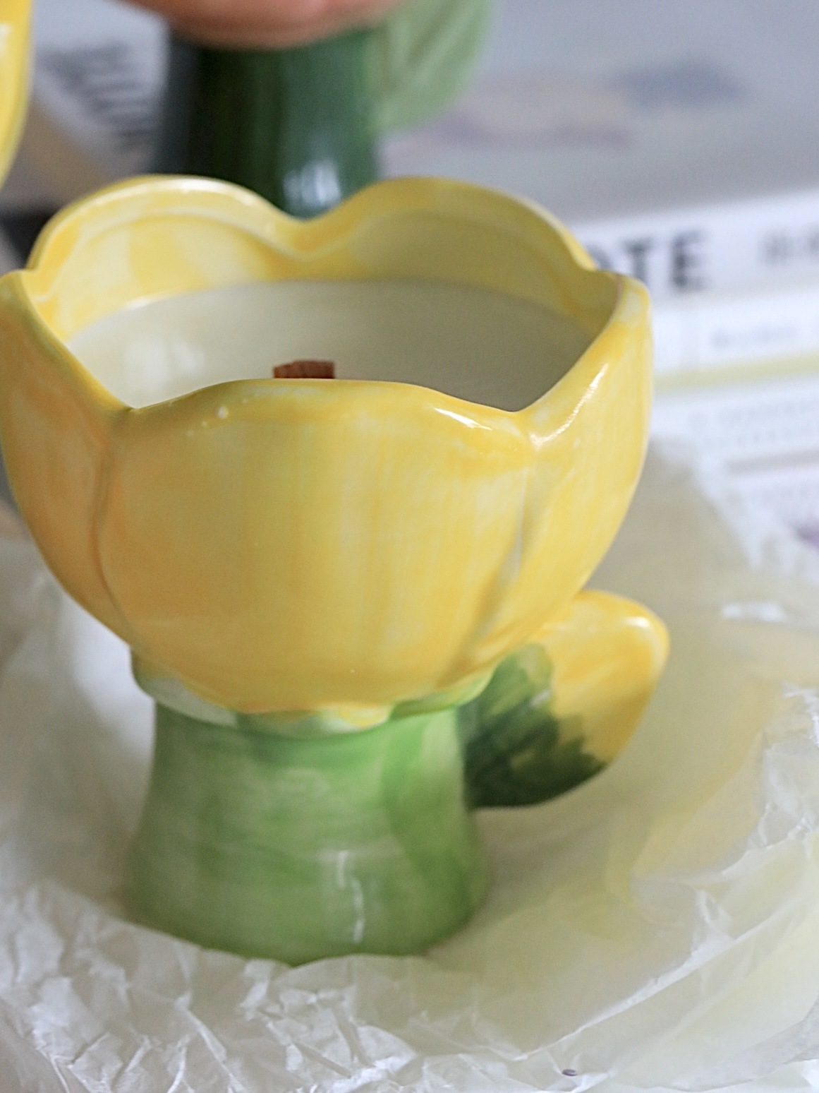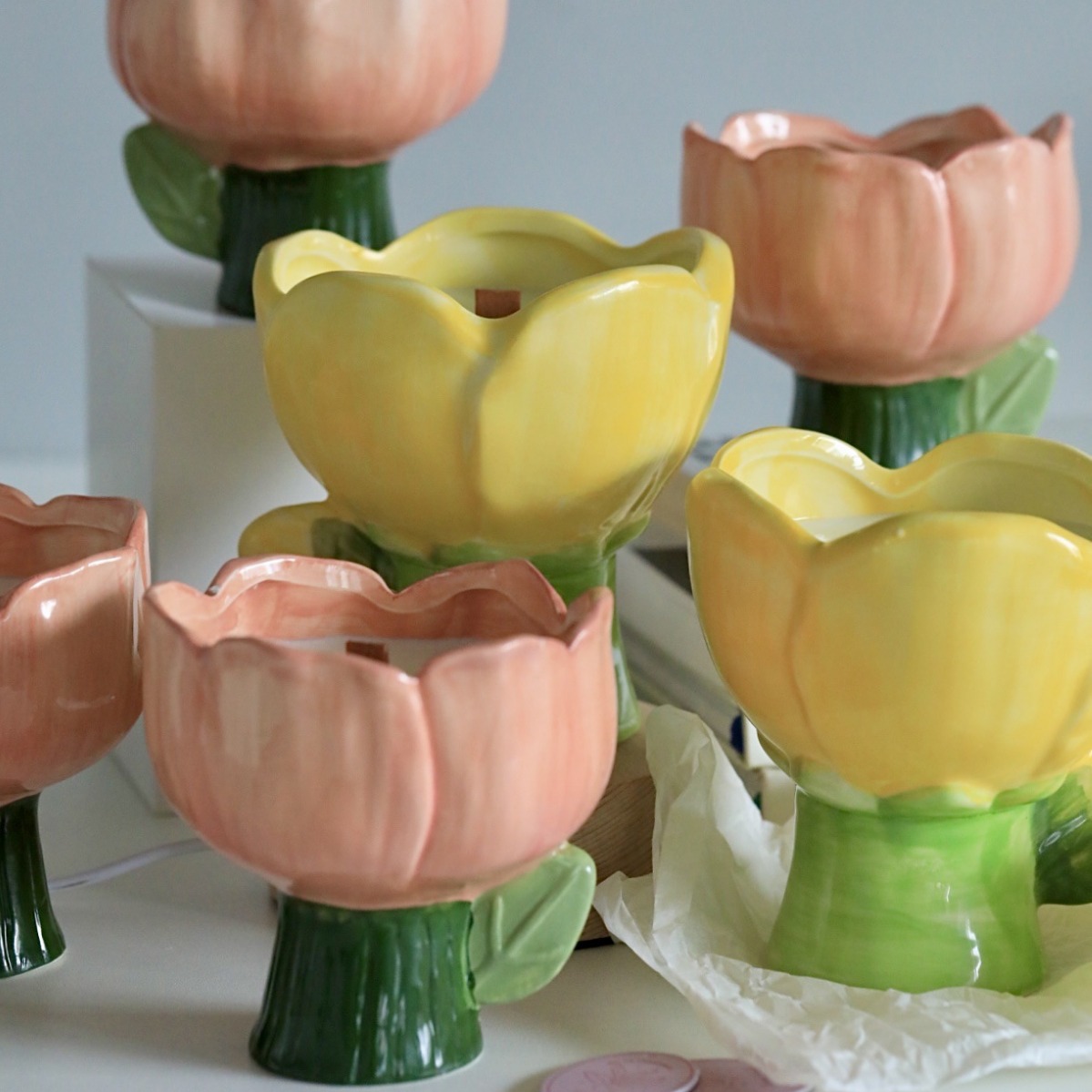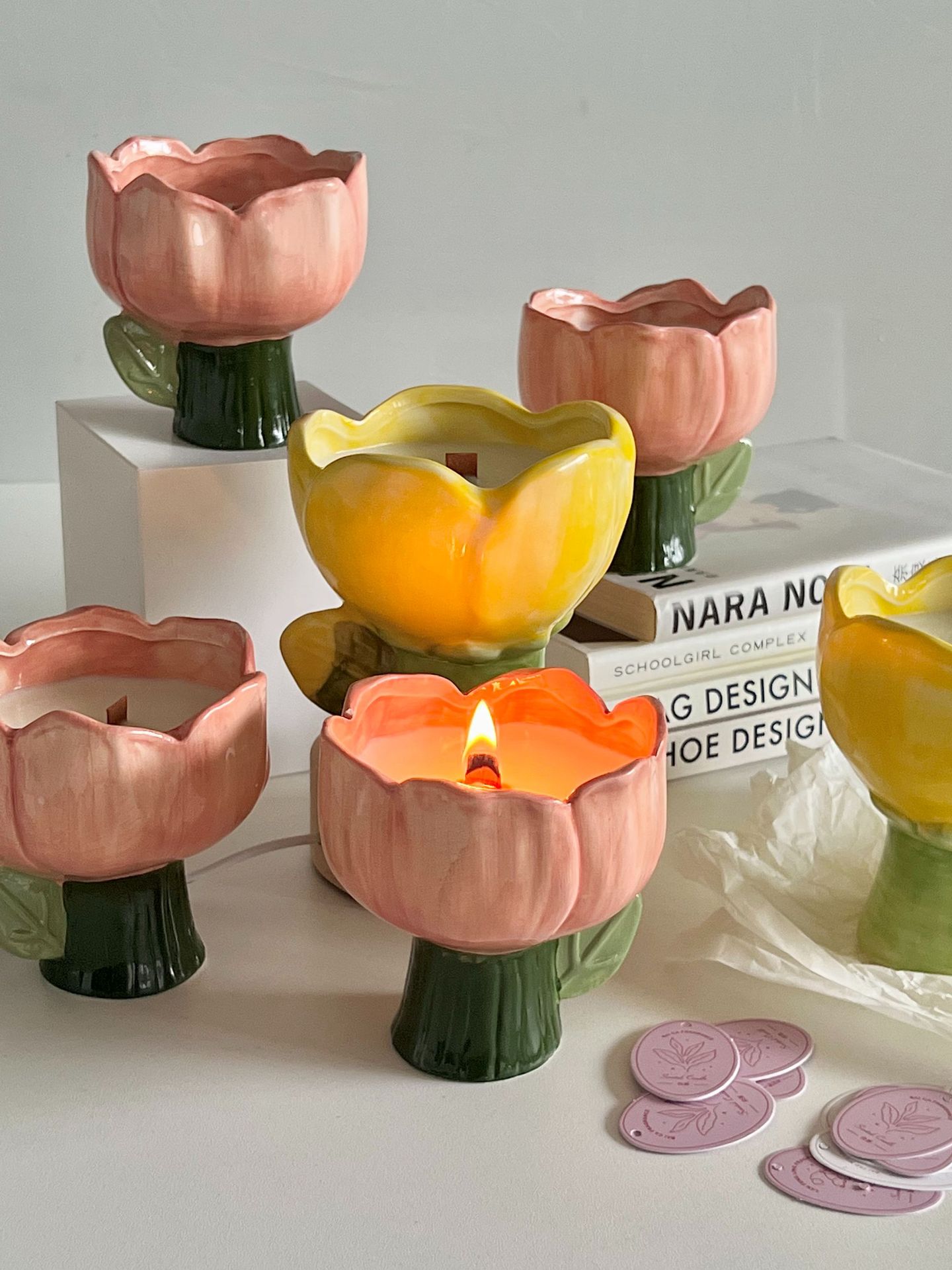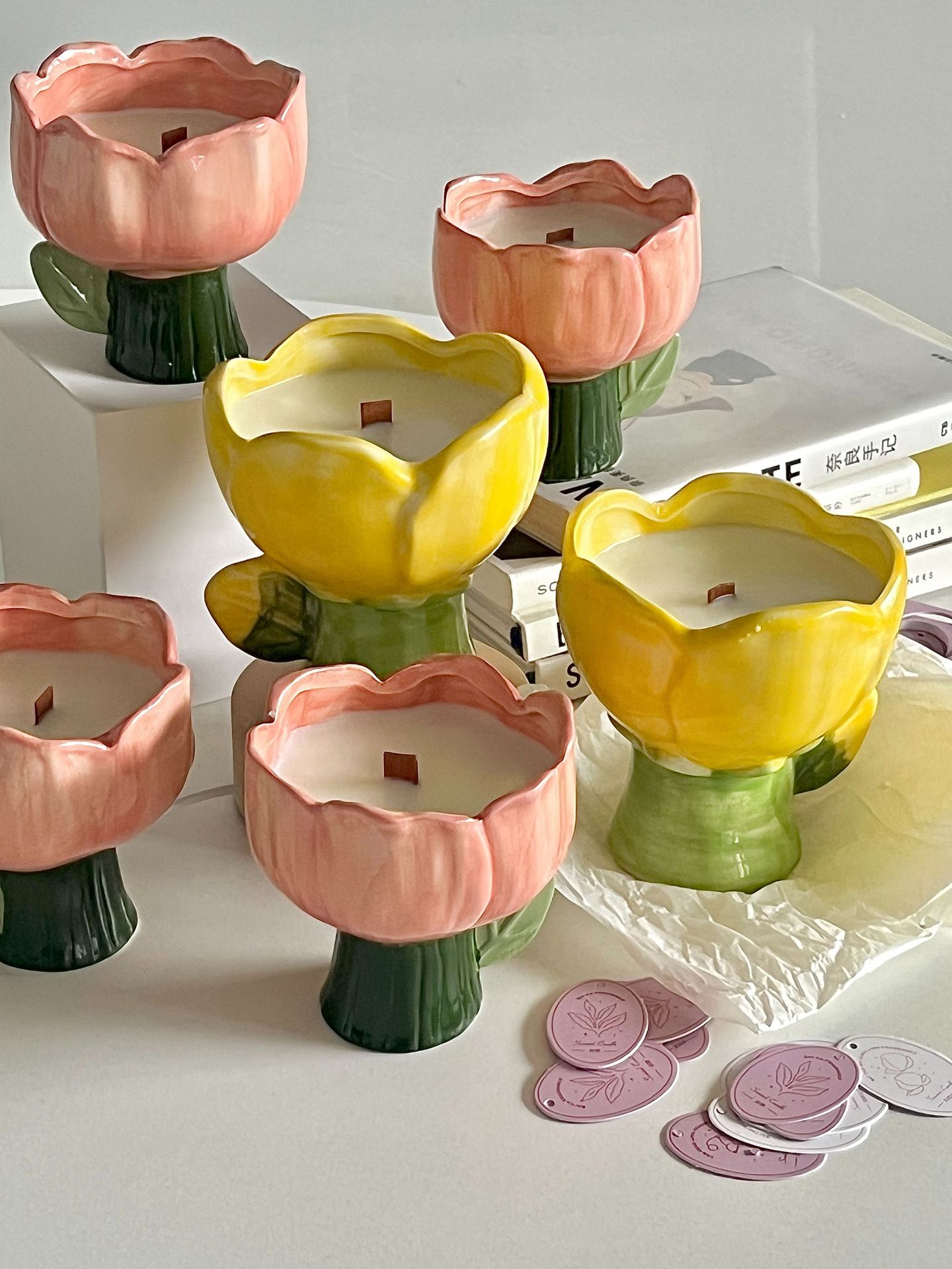 郁金香陶瓷低温香薰蜡烛可爱女生日送礼卧室内持久熏香氛礼盒装饰