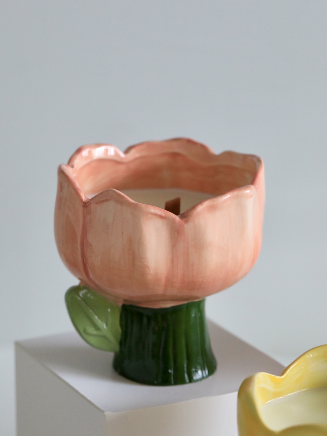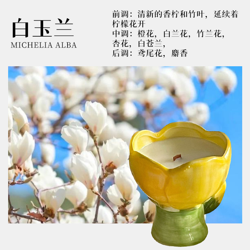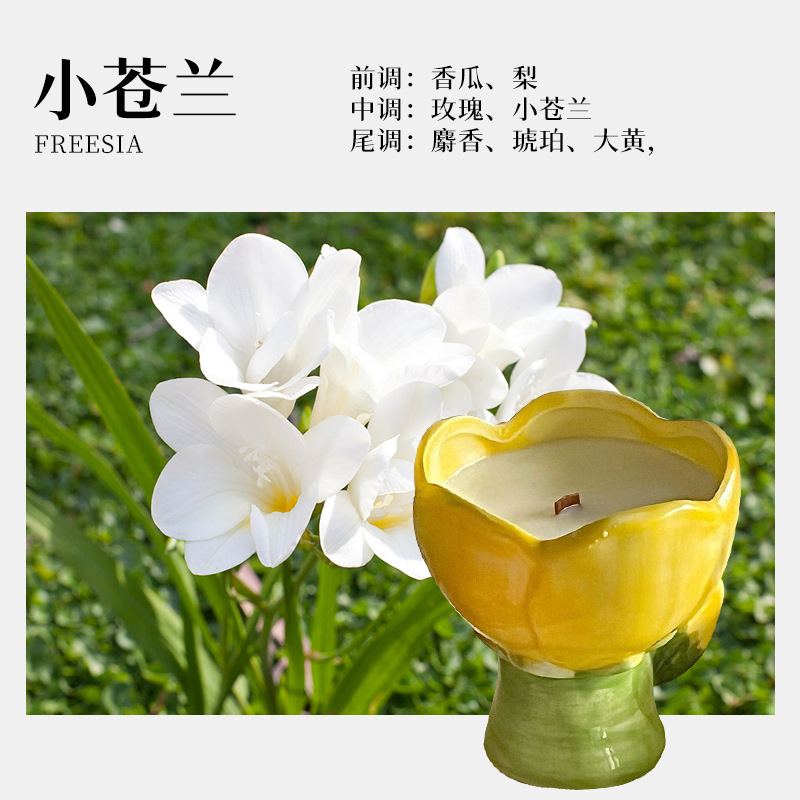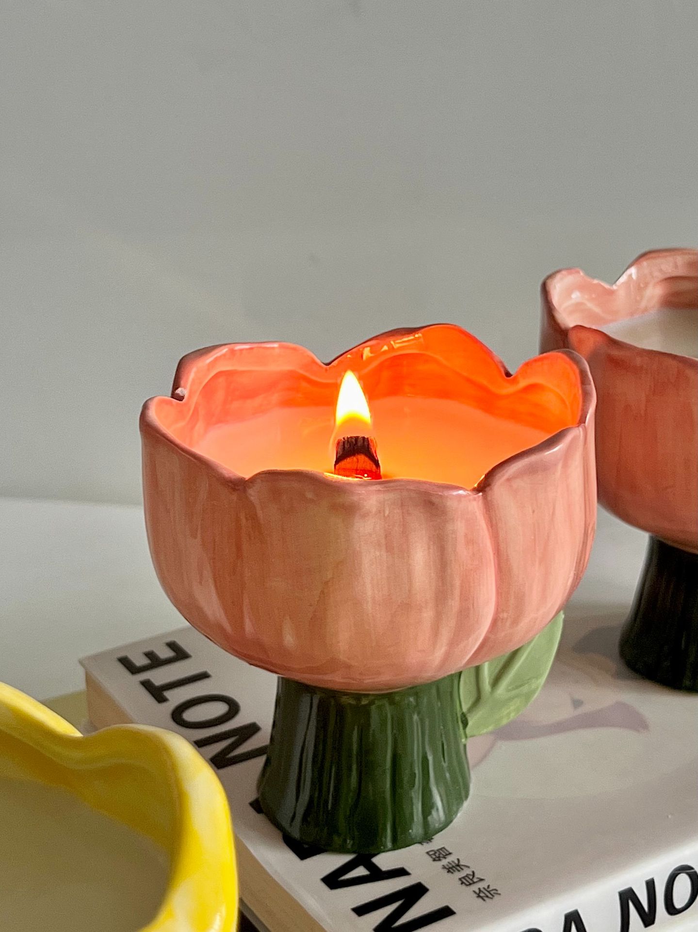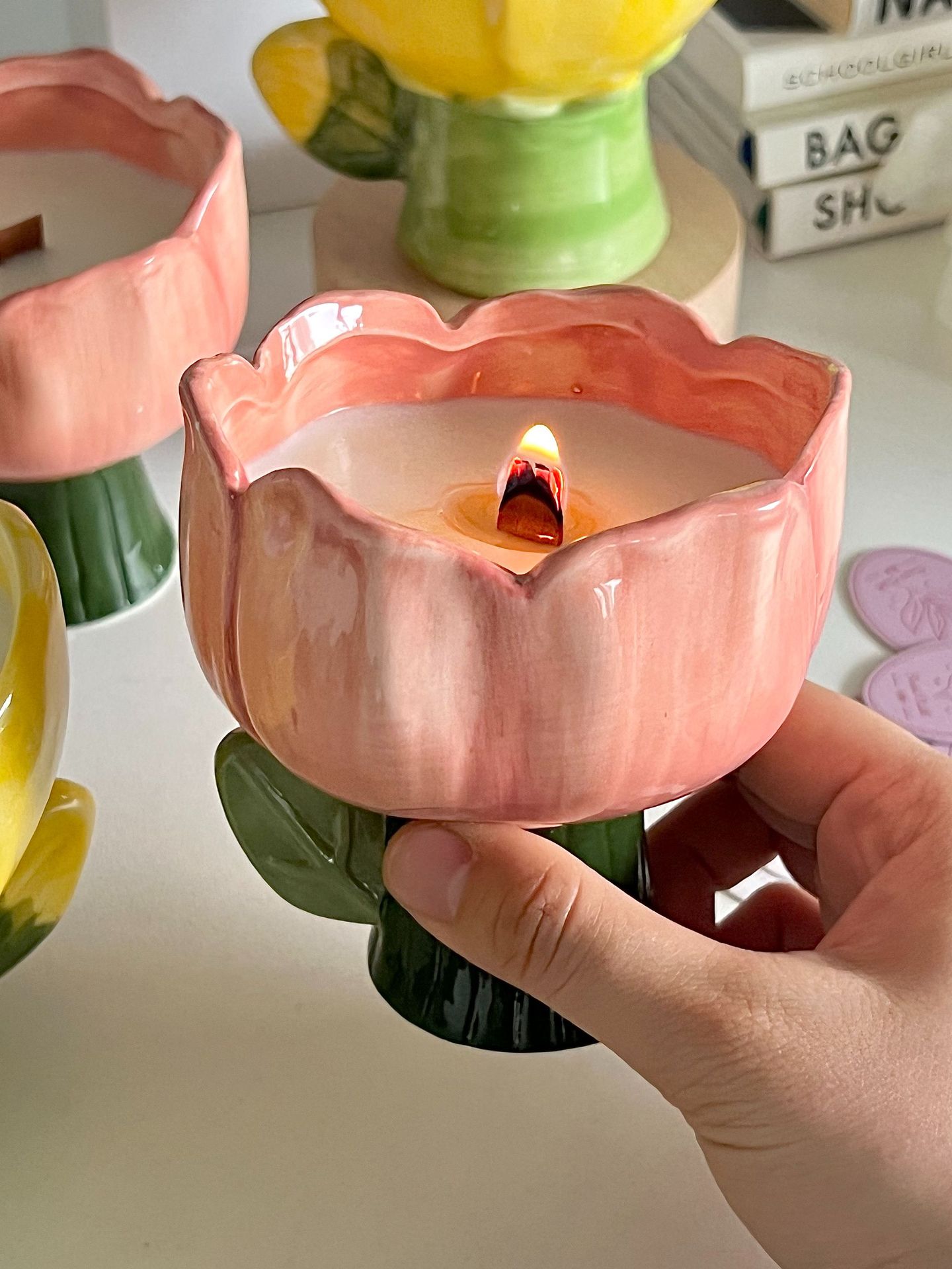 郁金香陶瓷低温香薰蜡烛可爱女生日送礼卧室内持久熏香氛礼盒装饰