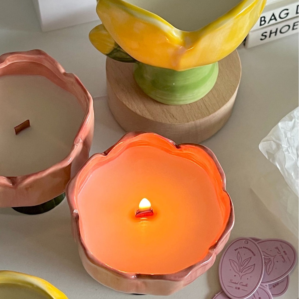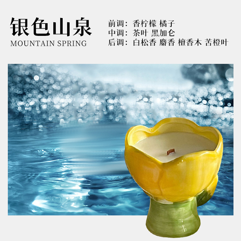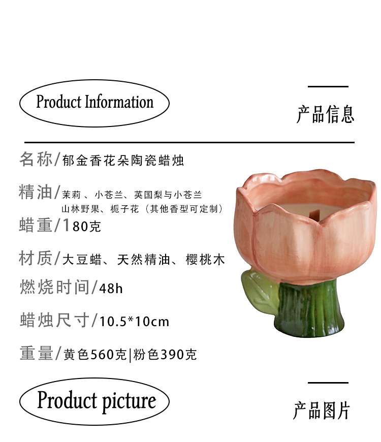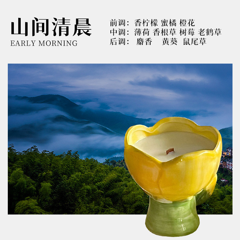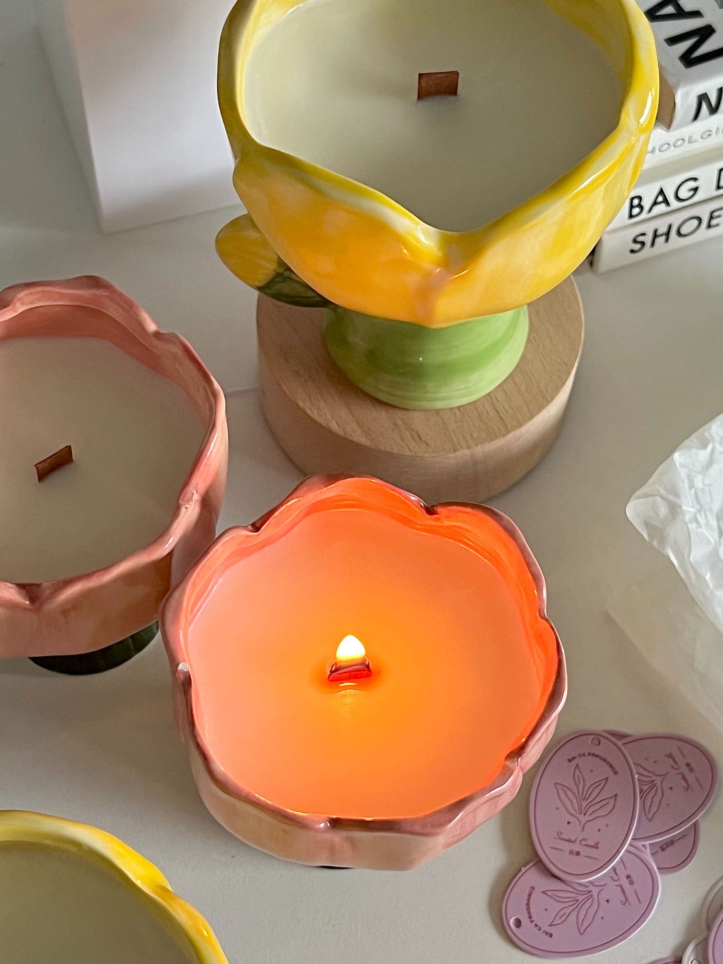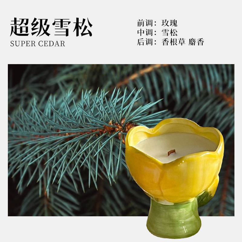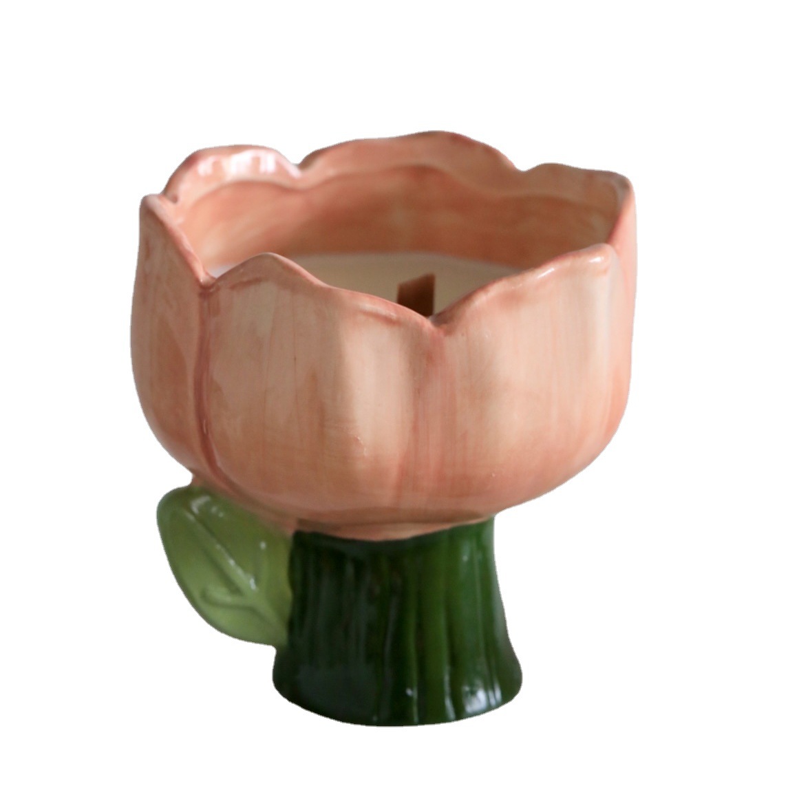 郁金香陶瓷低温香薰蜡烛可爱女生日送礼卧室内持久熏香氛礼盒装饰