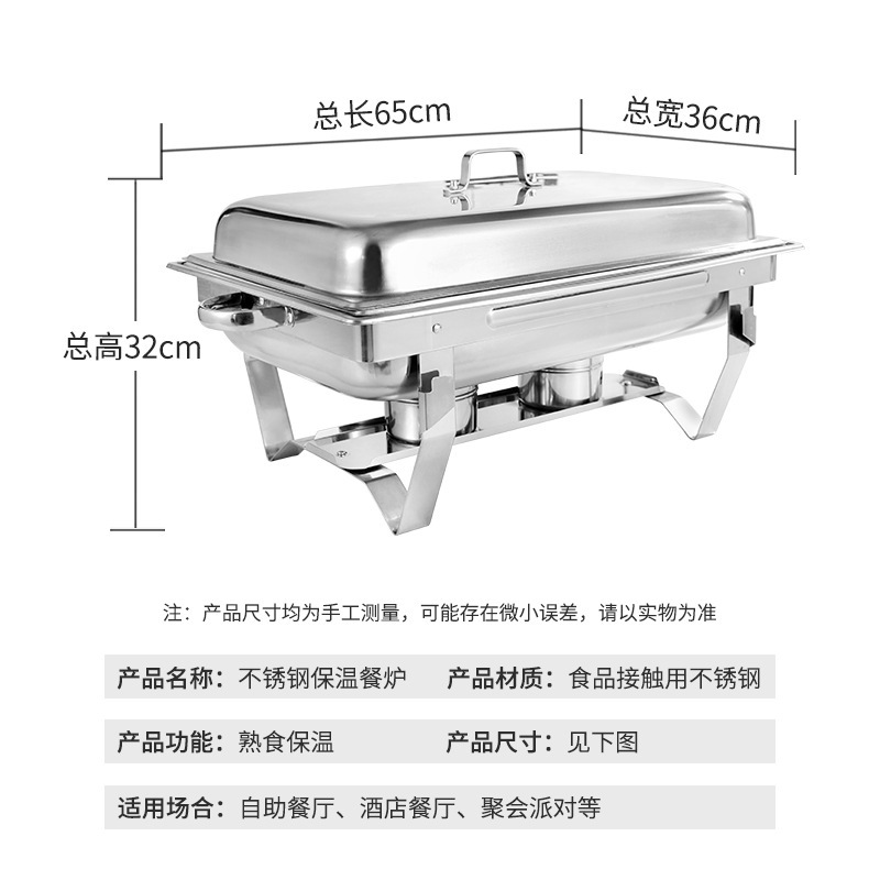 不锈钢经济款长方形揭盖自助餐炉酒精加热餐炉布菲炉 酒店保温炉