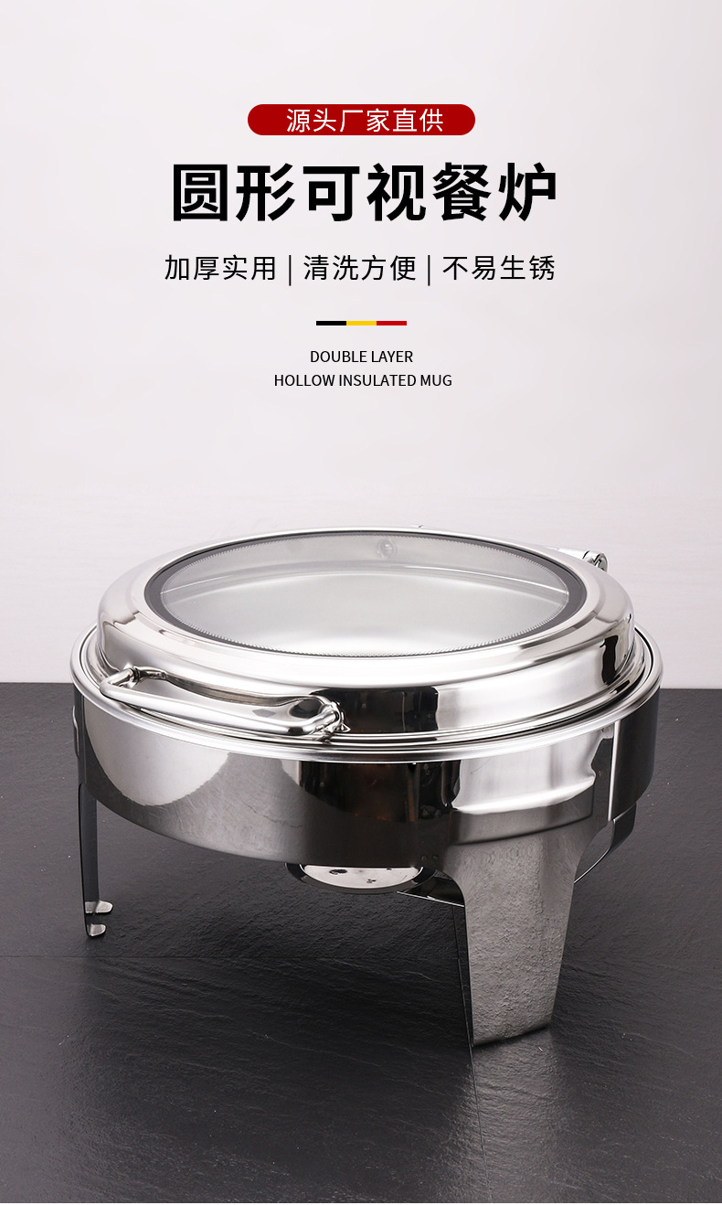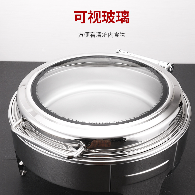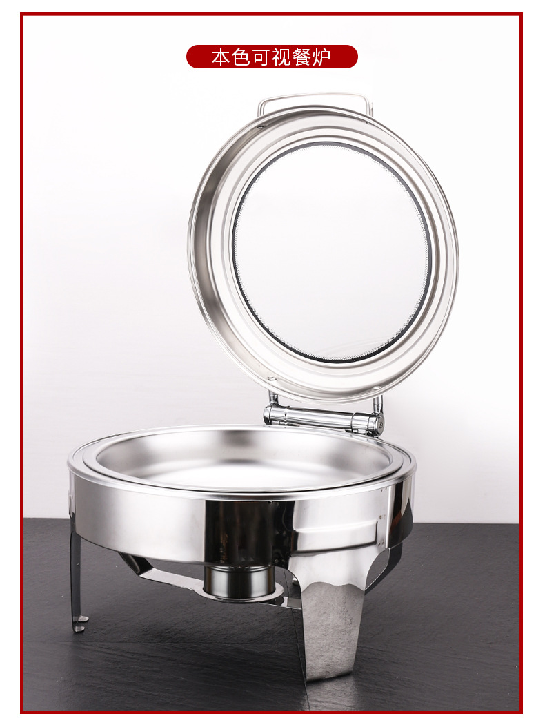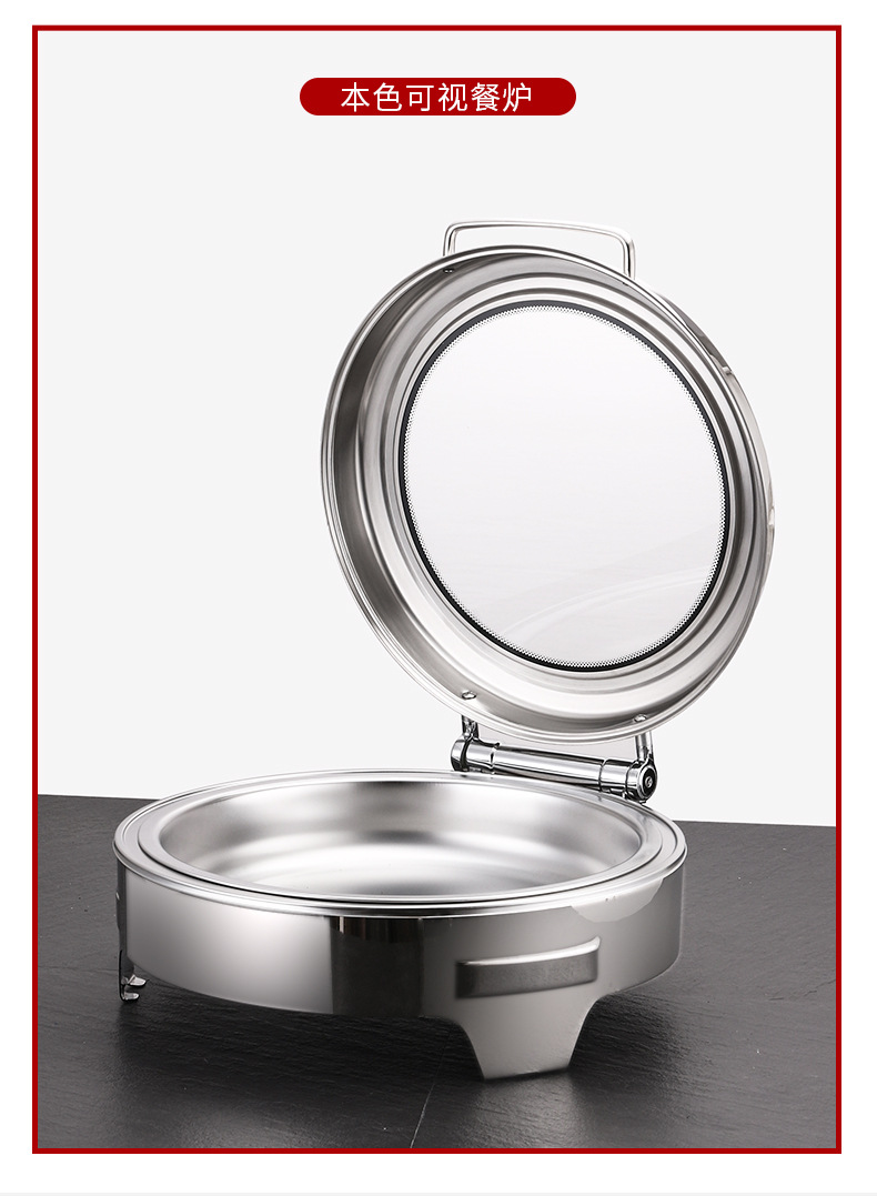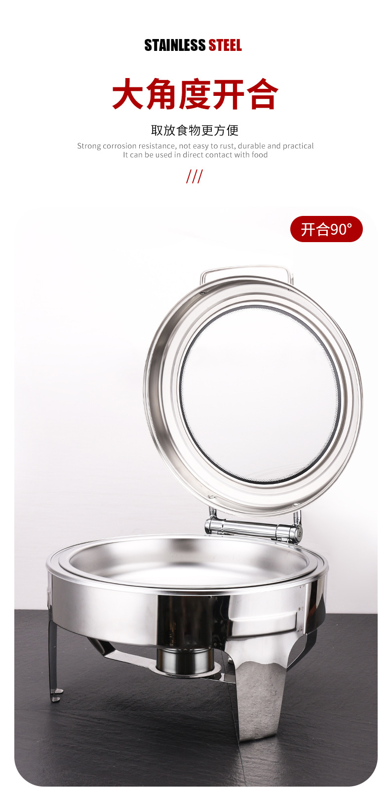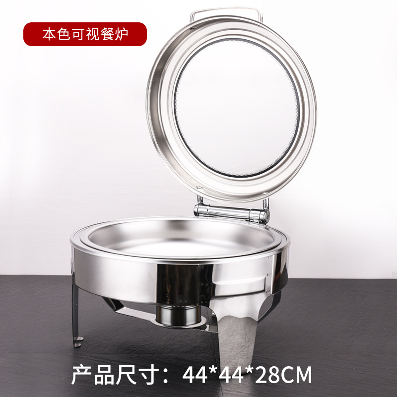 跨境圆形不锈钢自助餐炉酒店餐厅可视玻璃翻盖酒精加热早餐布菲炉