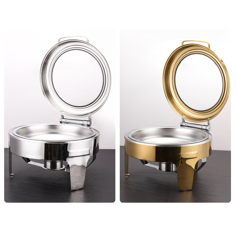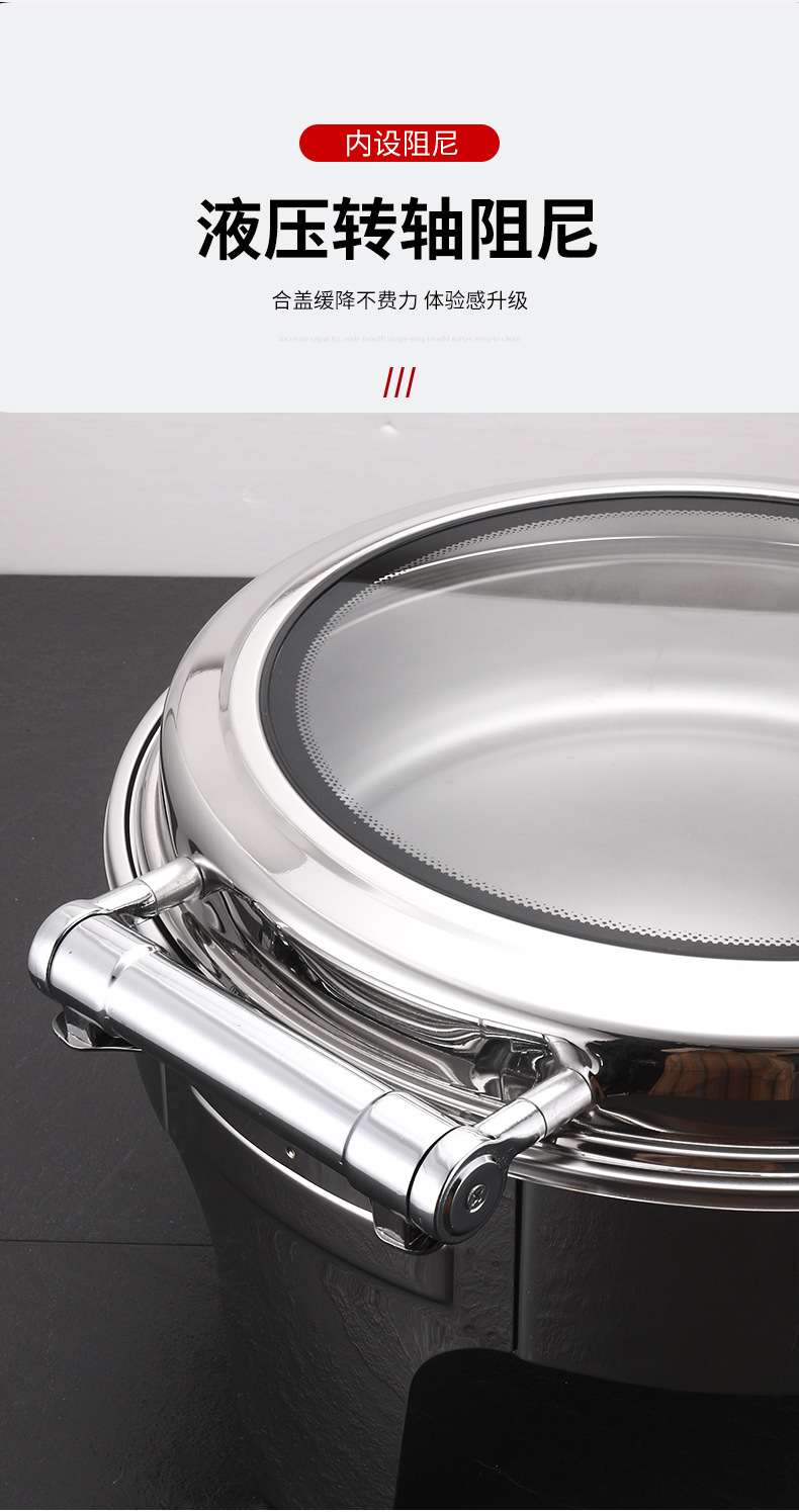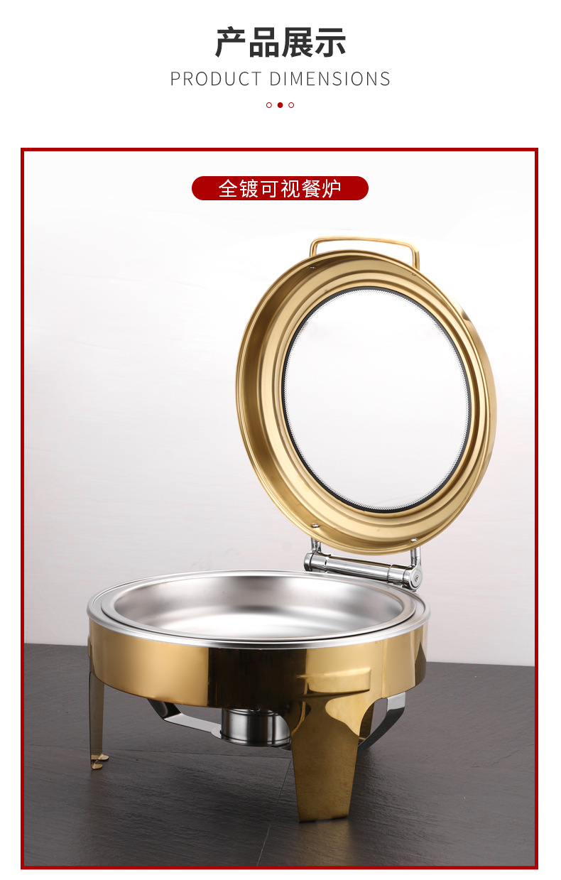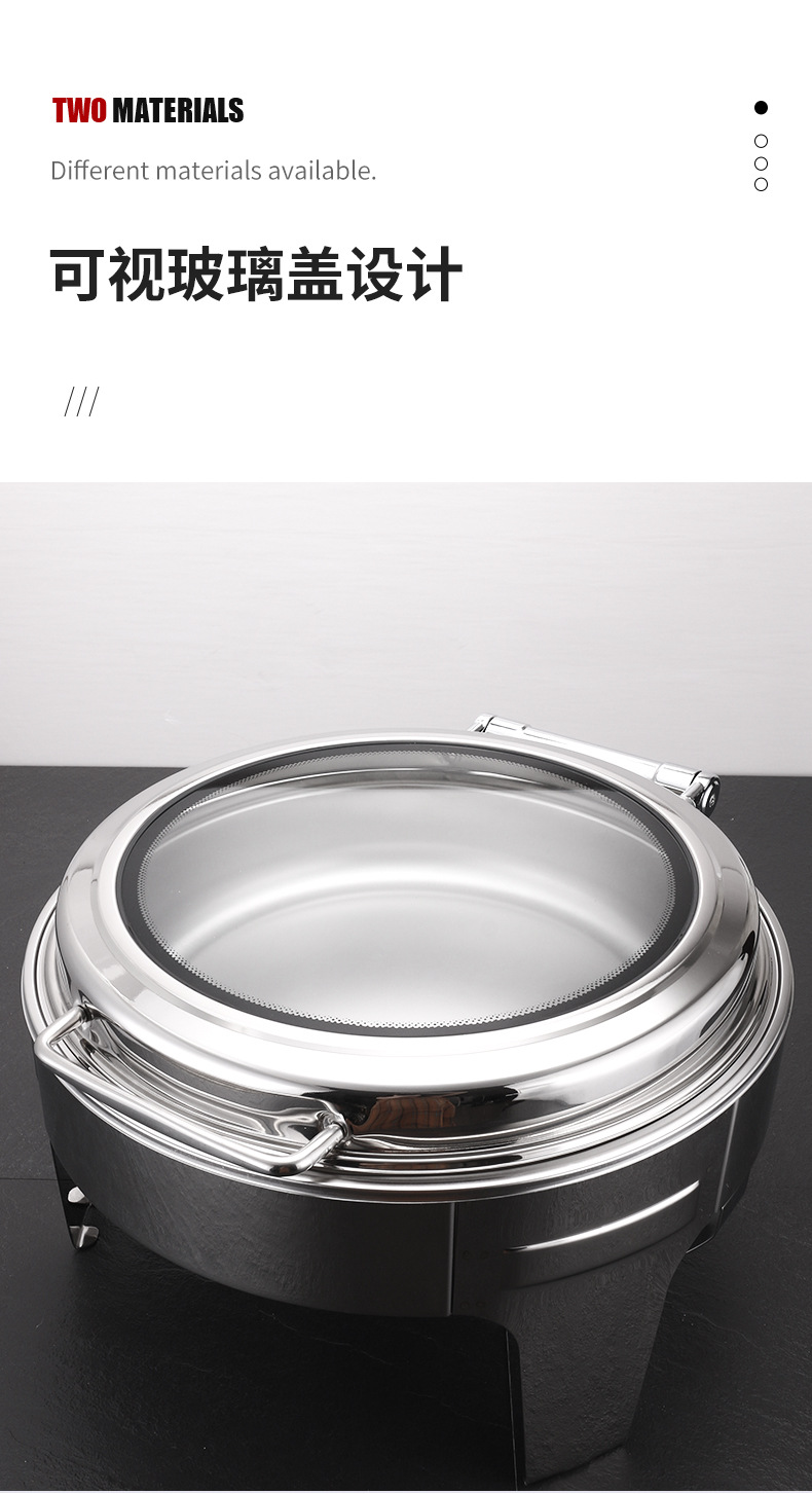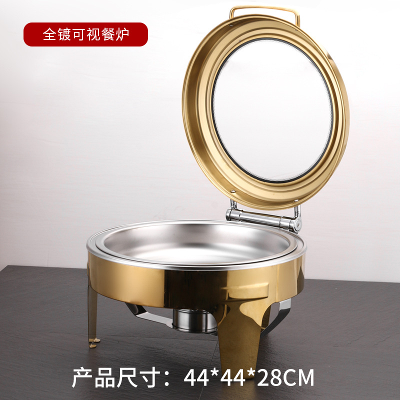 跨境圆形不锈钢自助餐炉酒店餐厅可视玻璃翻盖酒精加热早餐布菲炉