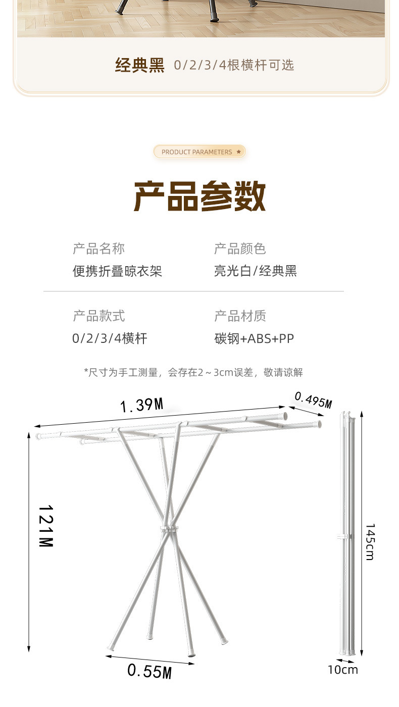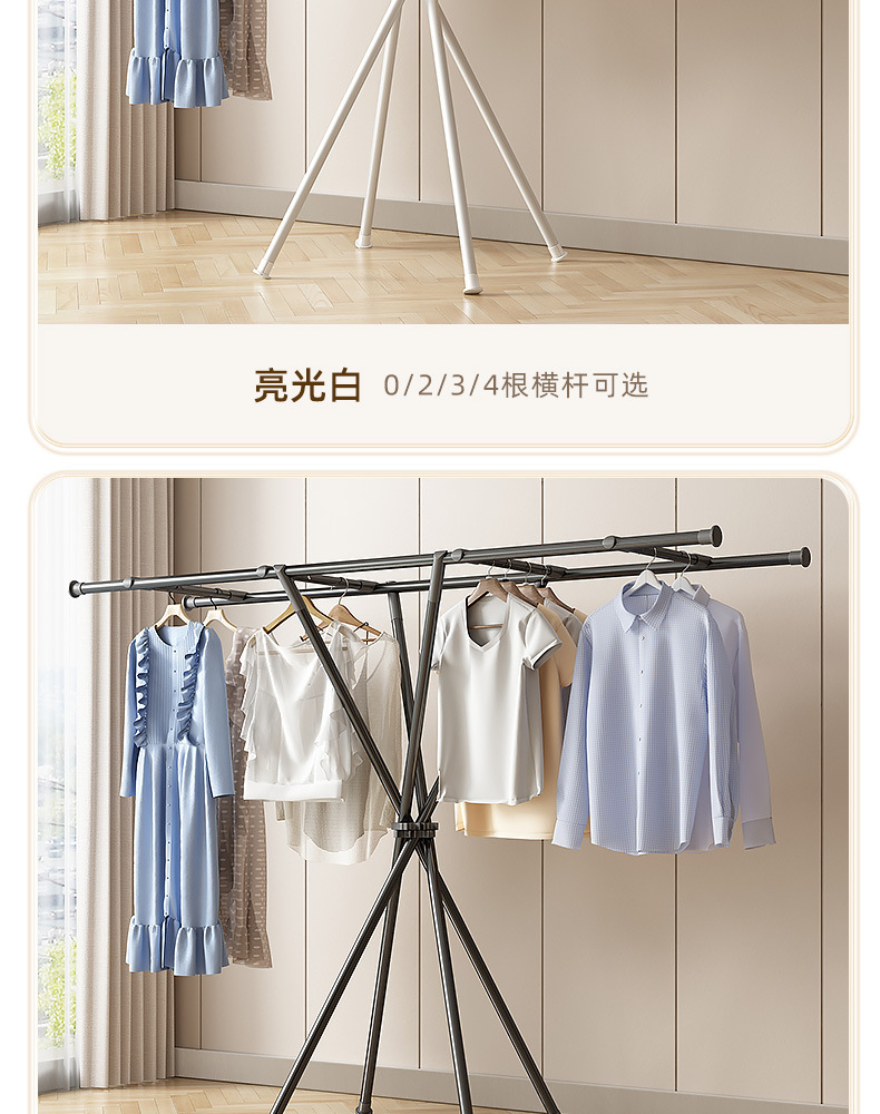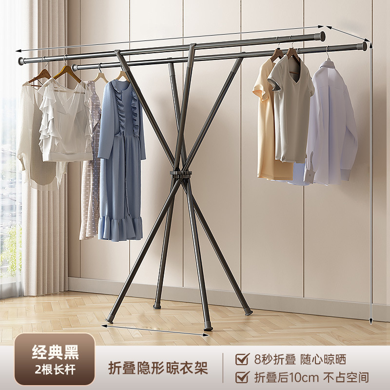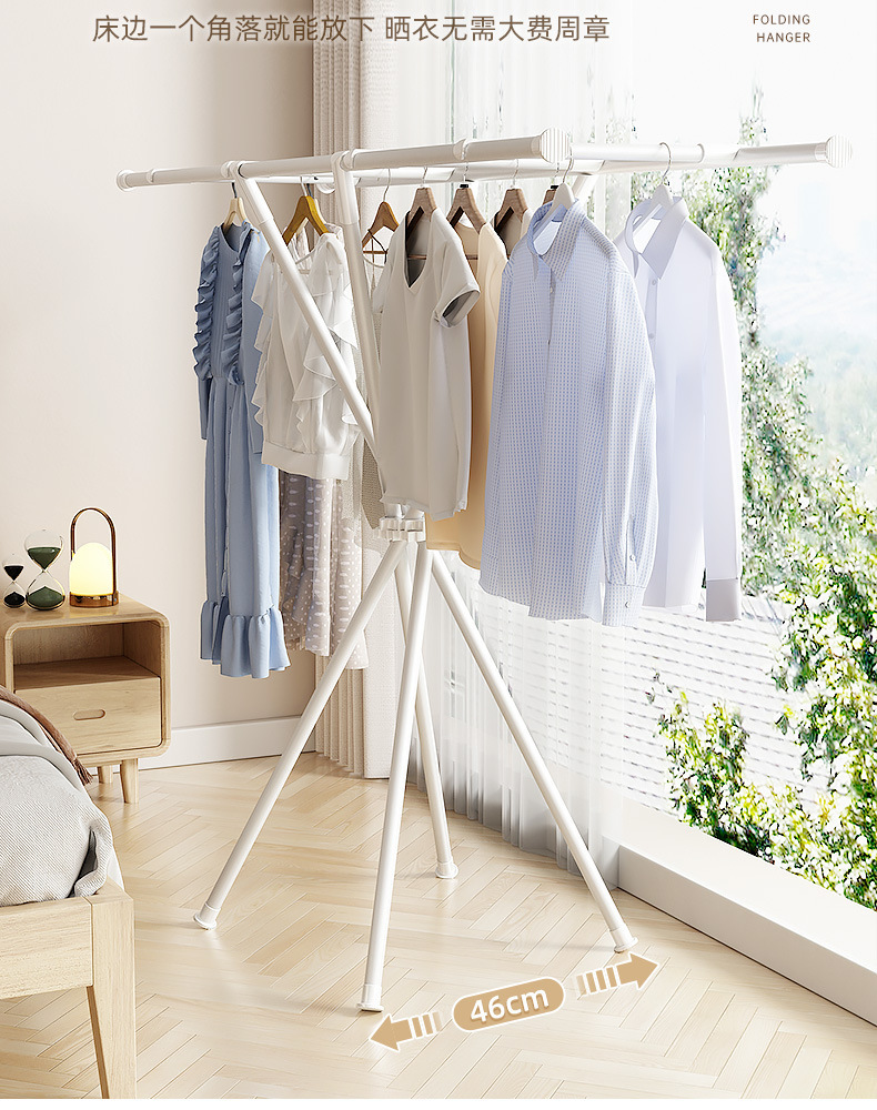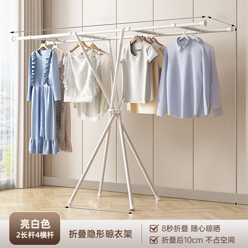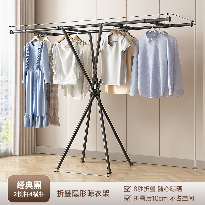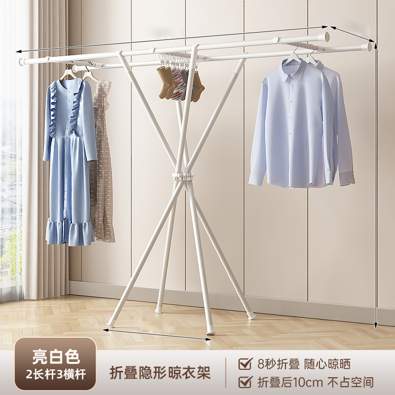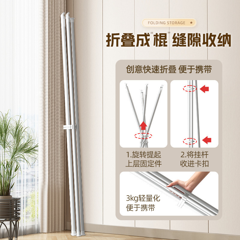 新款简易收缩便携晒衣服架子折叠晾衣架落地室内家用阳台晾衣杆
