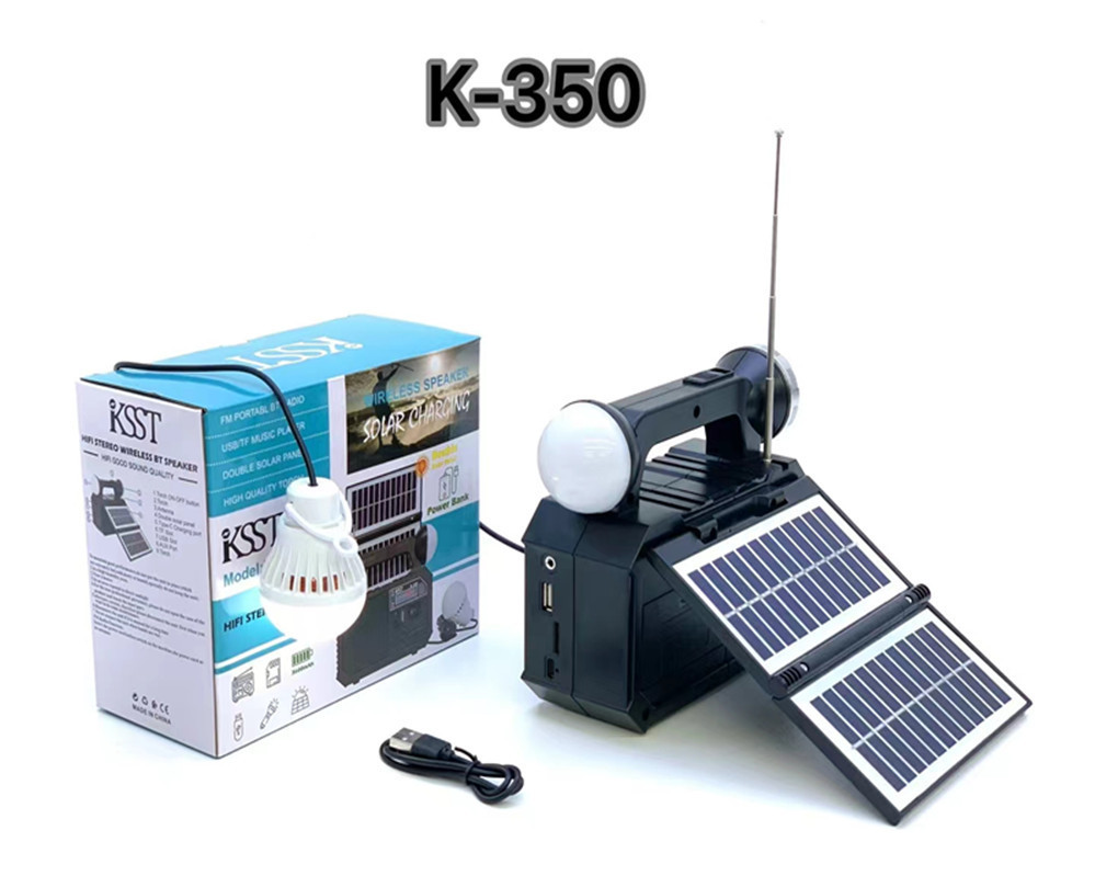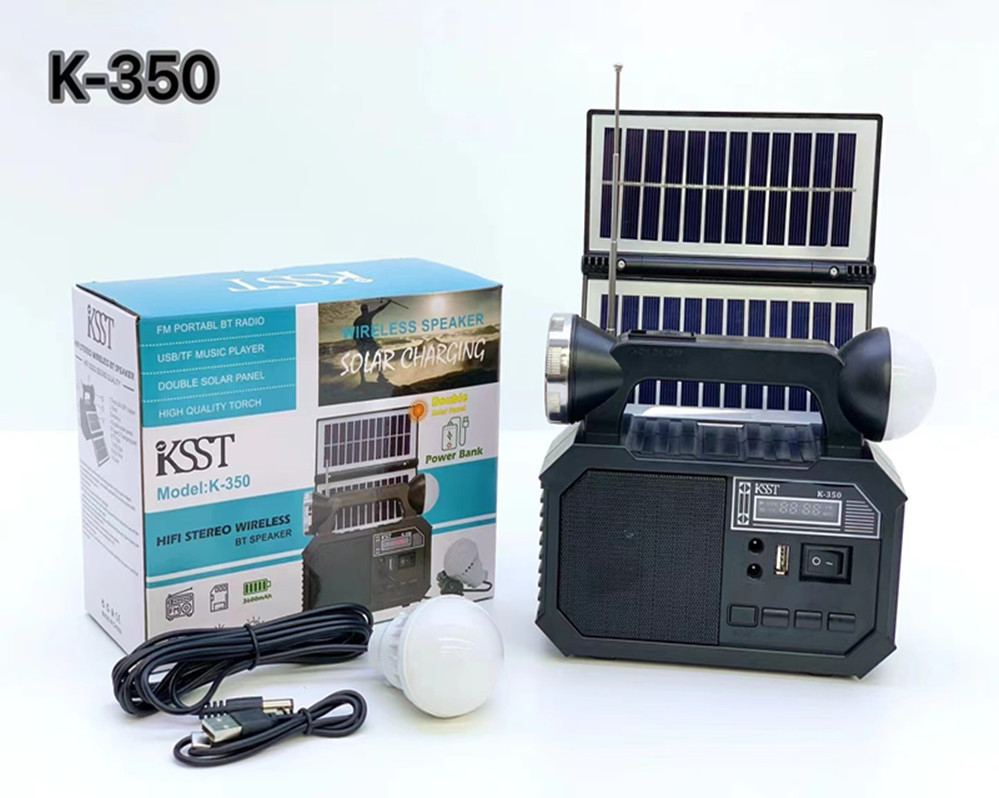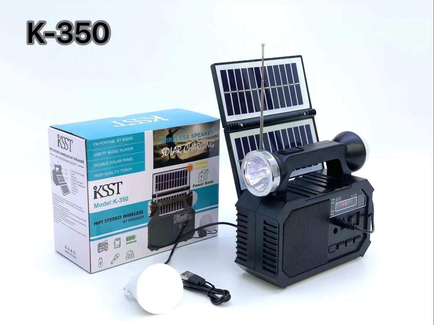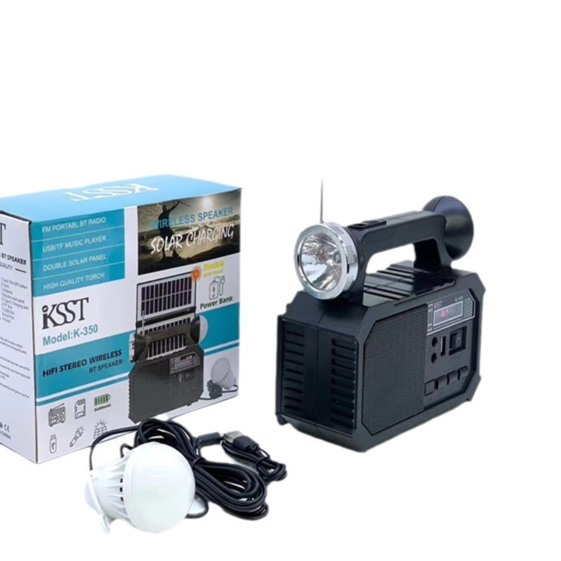 新品K350应急灯无线蓝牙音箱双太阳能手电筒户外音响FM波段收音机