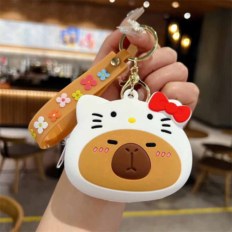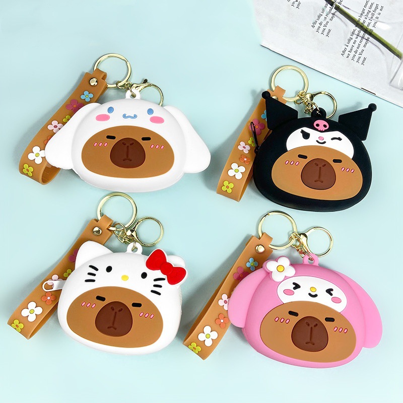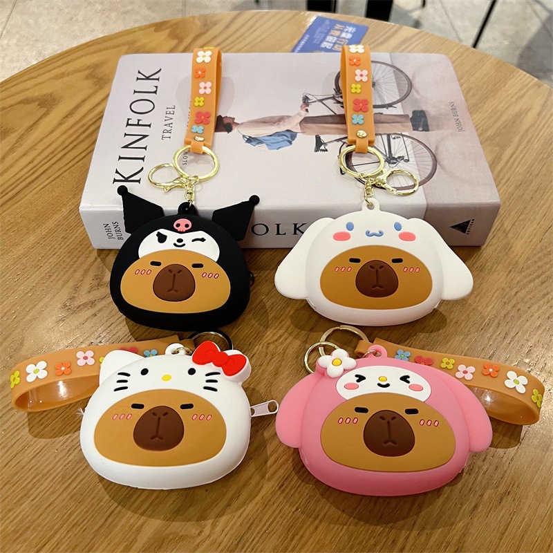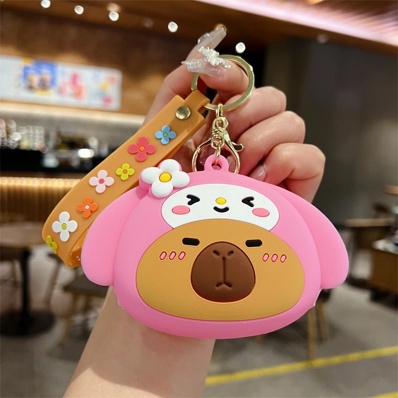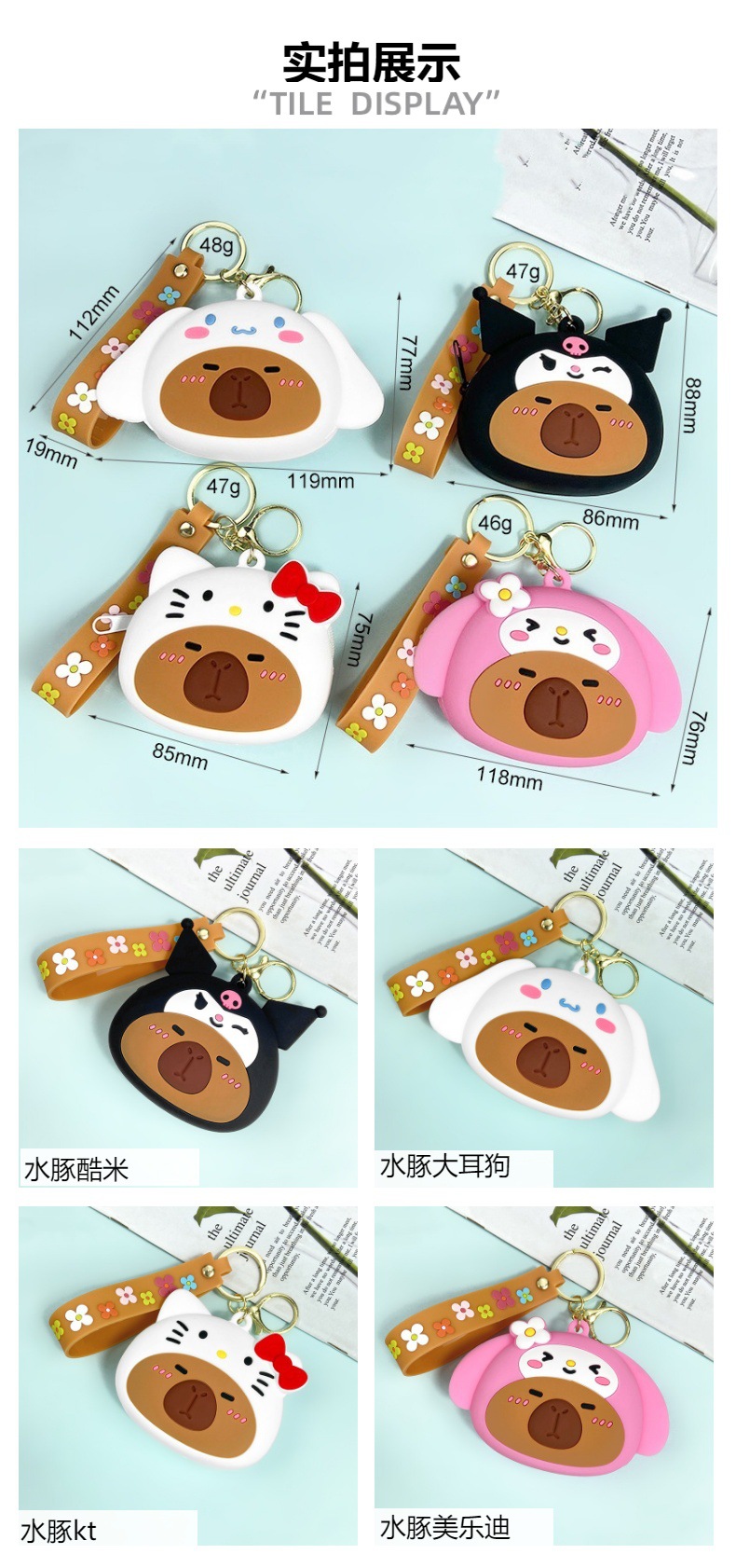创意水豚变装库洛米零钱包钥匙扣可爱卡皮巴拉钥匙包钥匙链批发