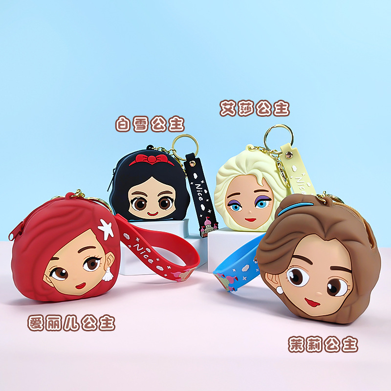 创意卡通公主零钱包钥匙扣可爱白雪公主艾莎钥匙包挂件男女小礼品