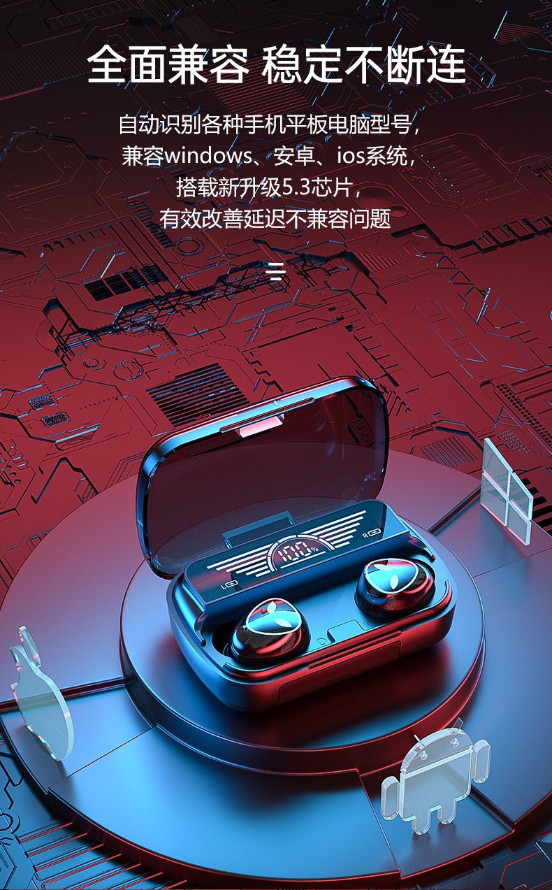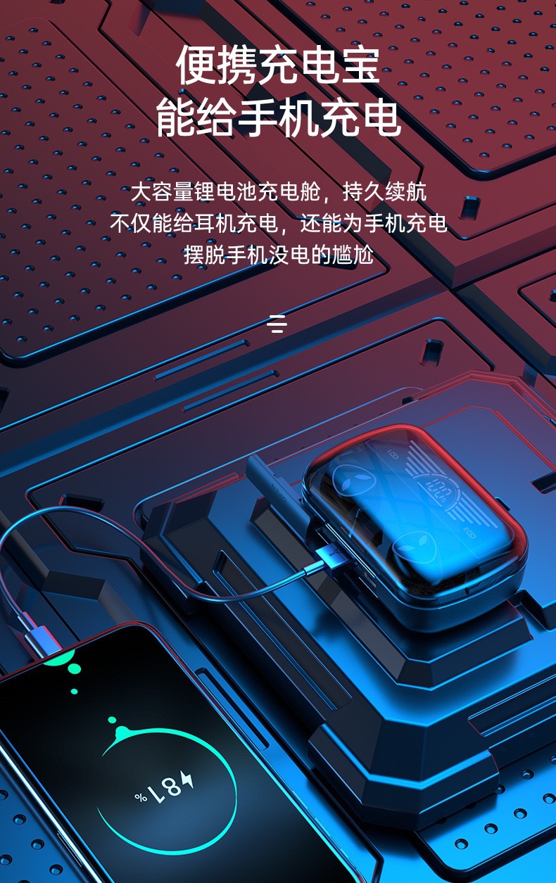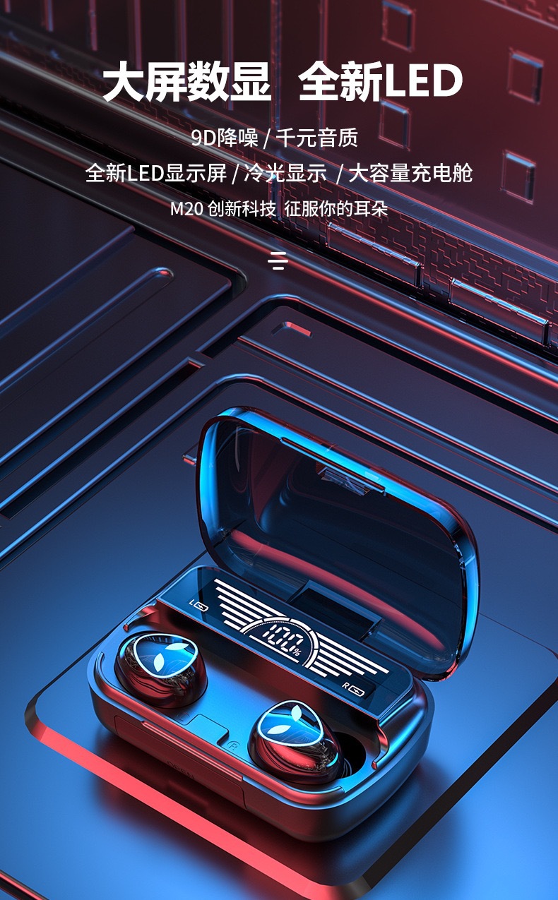 跨境私模M20无线蓝牙耳机电竞游戏蓝牙耳机高清数显便携式充电宝