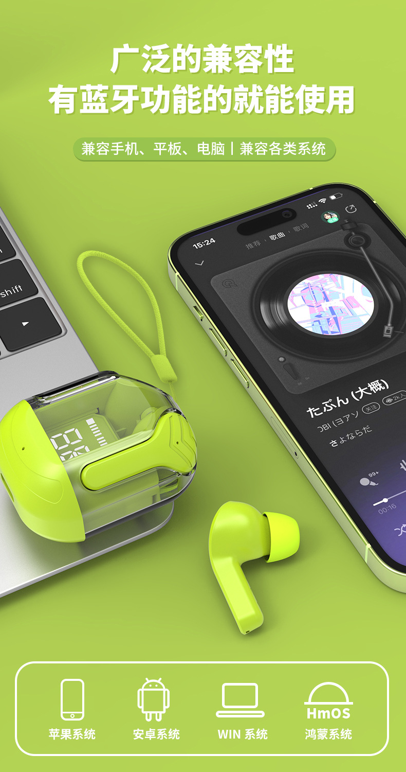 跨境专供air31蓝牙耳机入耳式数显通话长续航透明太空仓蓝牙5.3