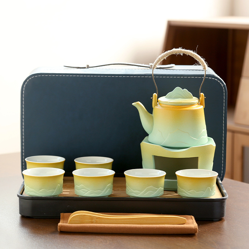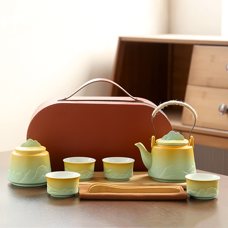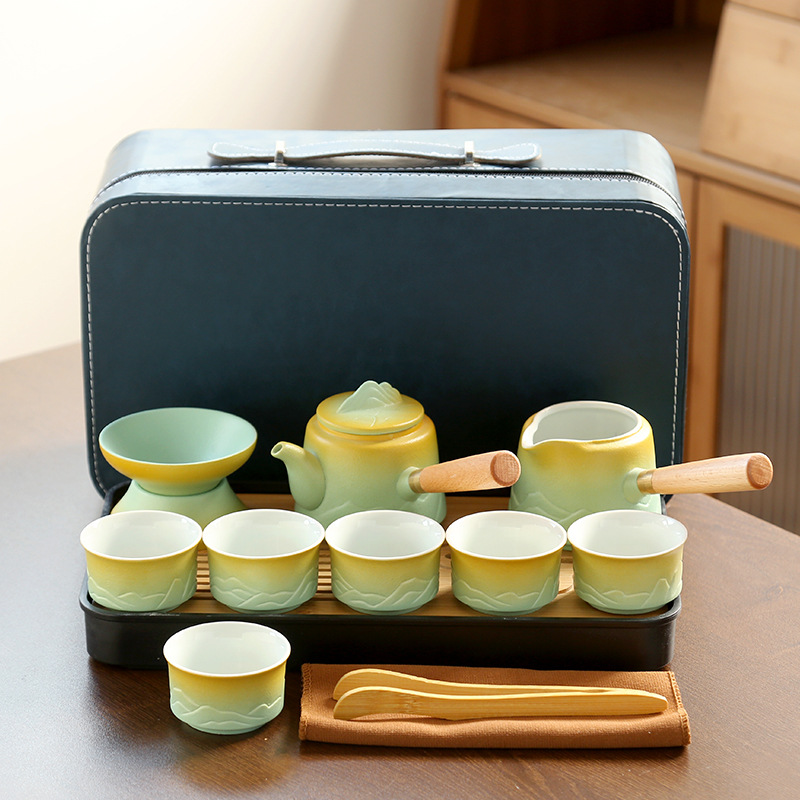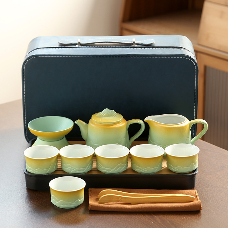 便携式陶瓷旅行茶具千里江山套装简约户外泡茶壶商务礼品伴手礼