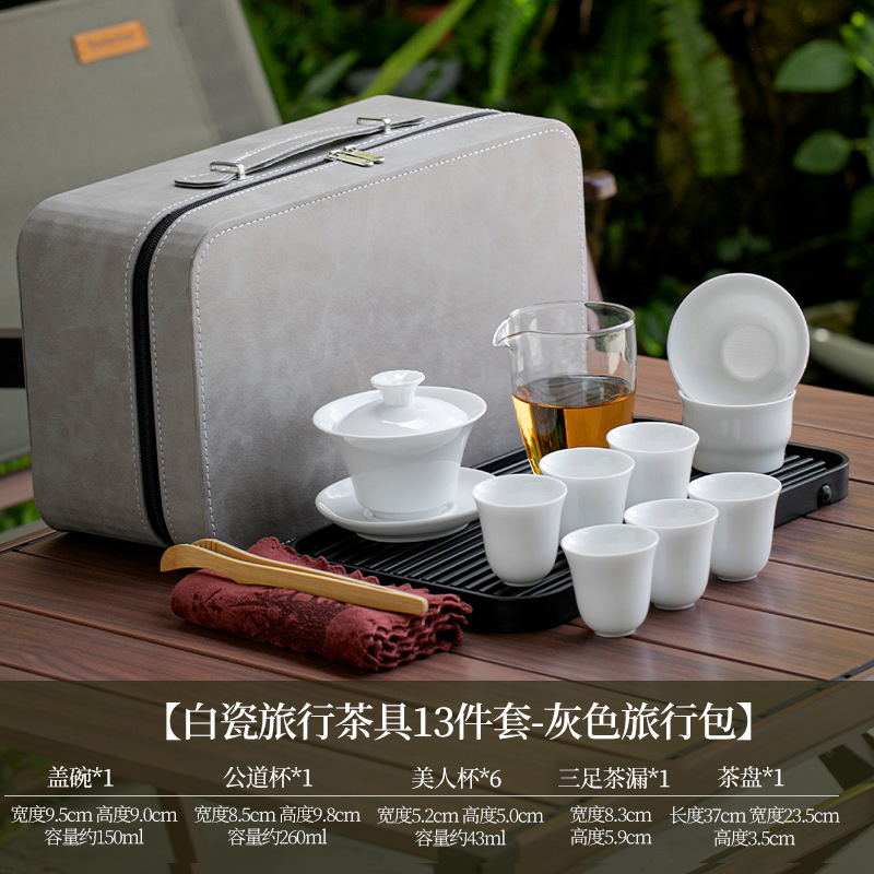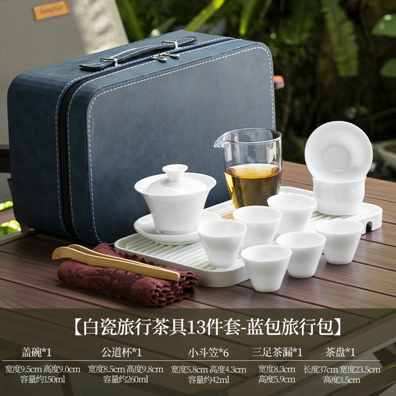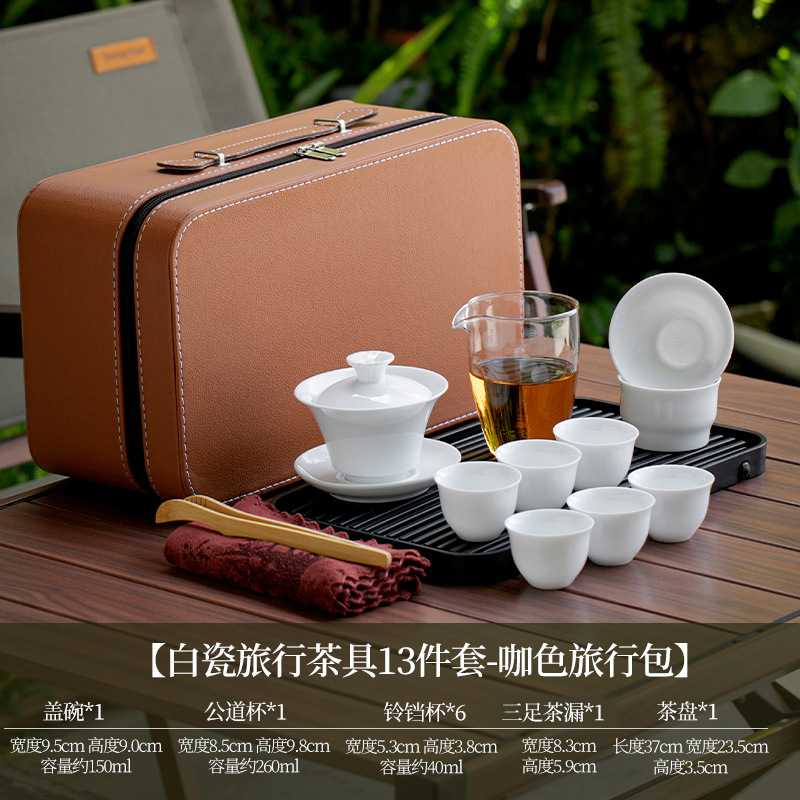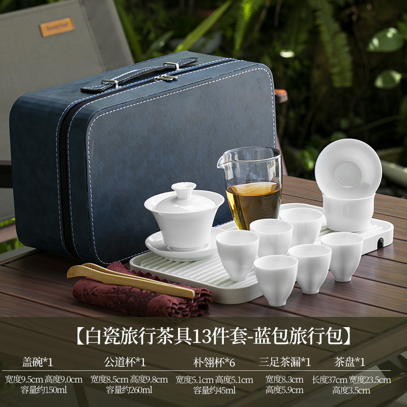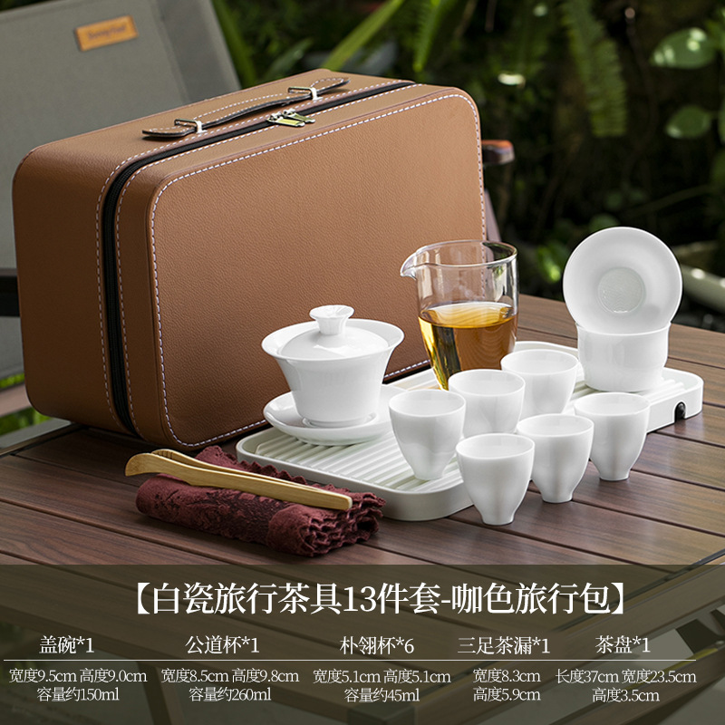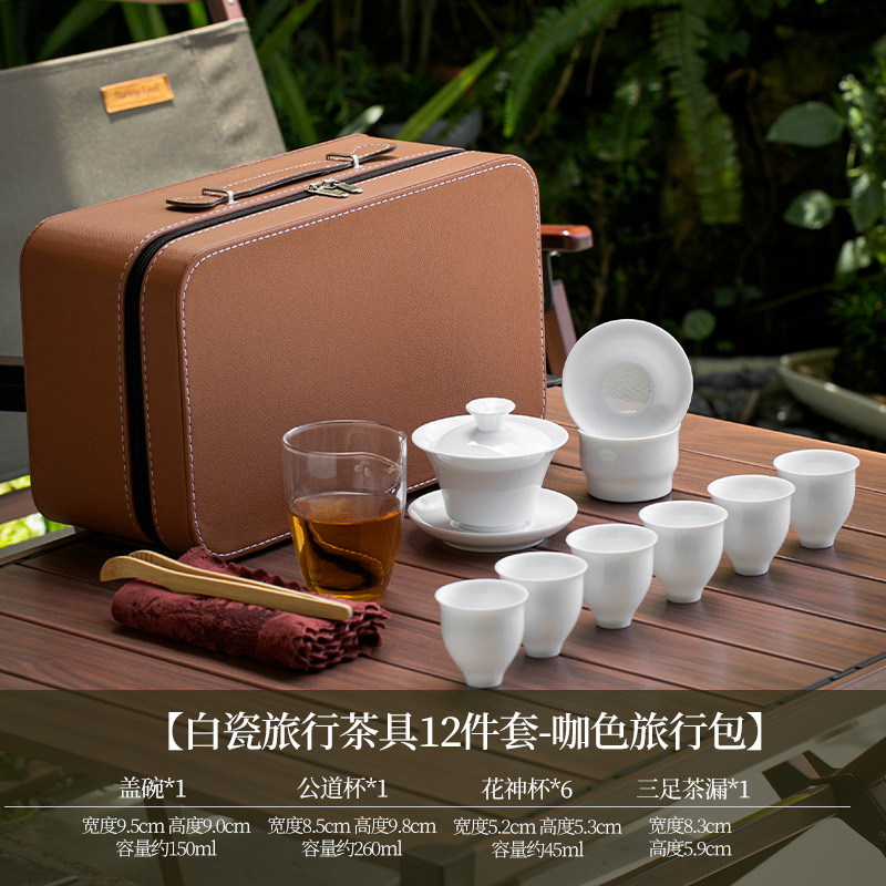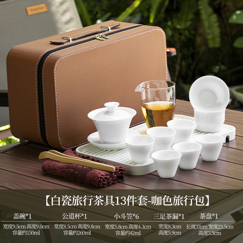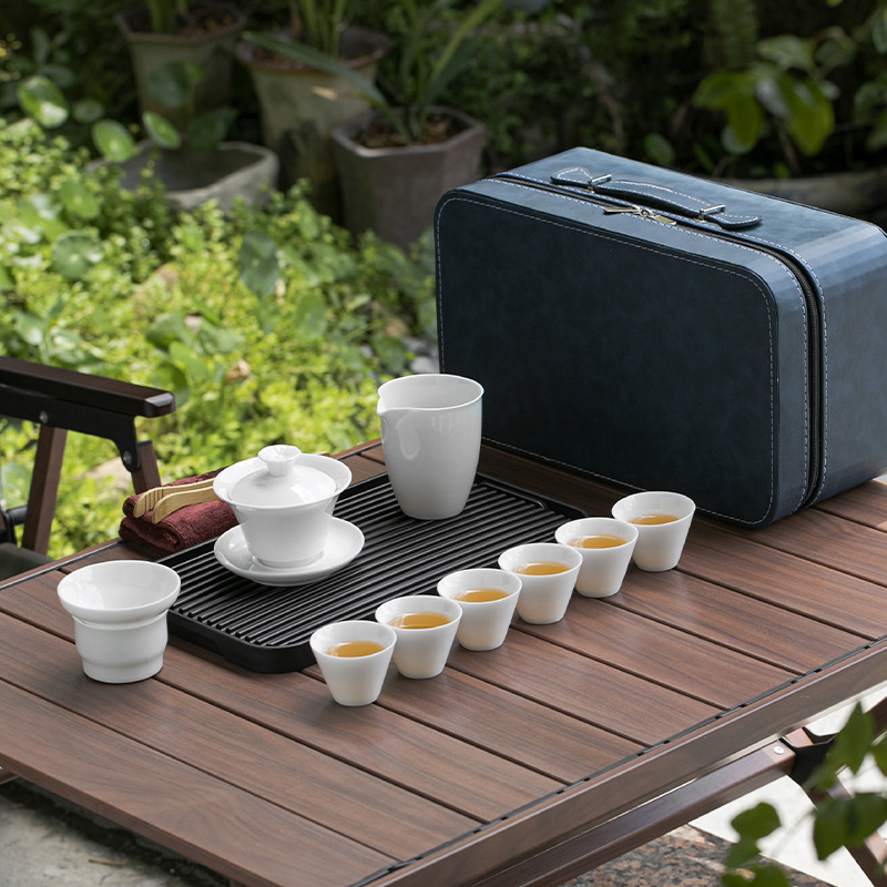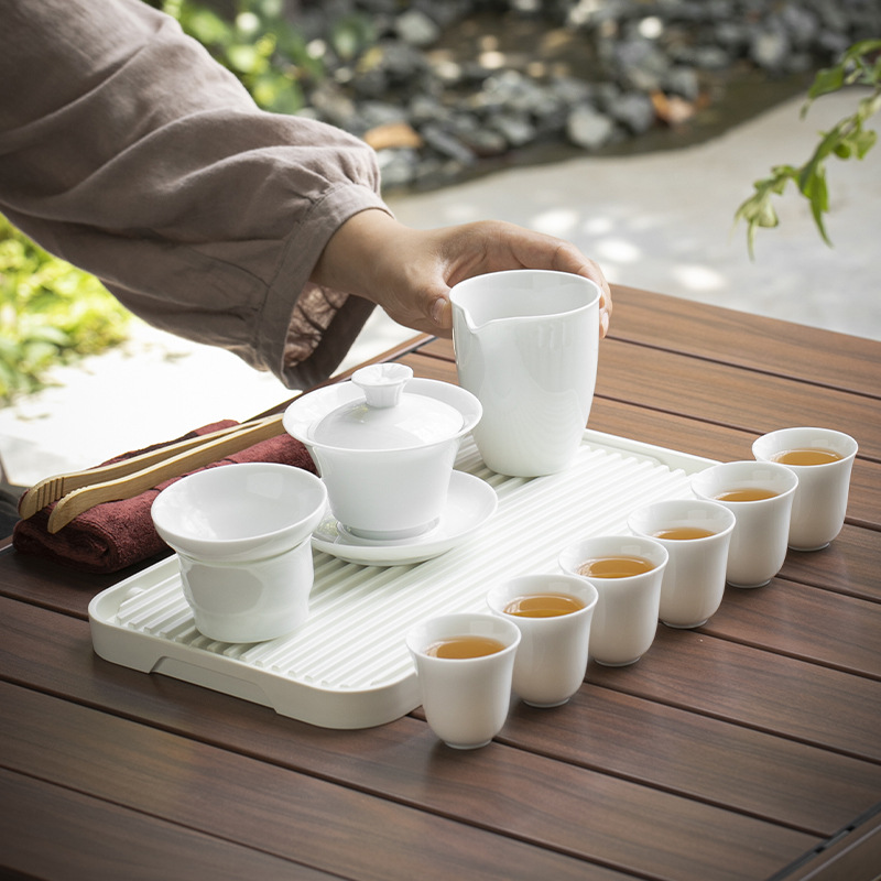 功夫茶具套装家用德化白瓷旅行小茶具储排水茶盘陶瓷盖碗泡茶整套
