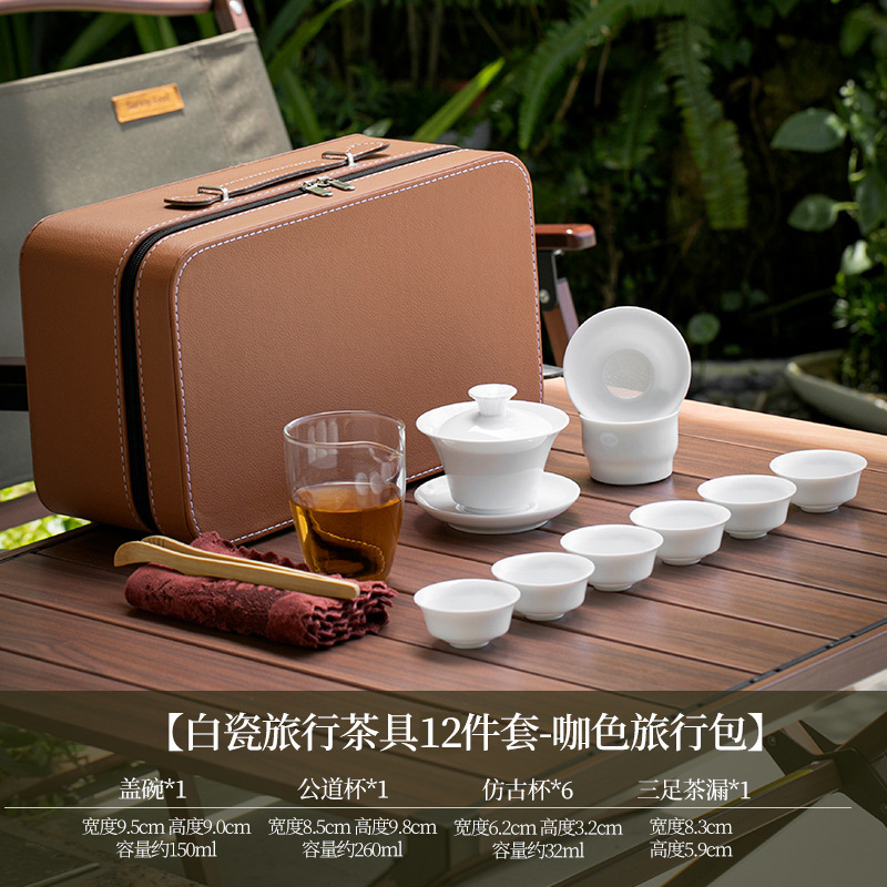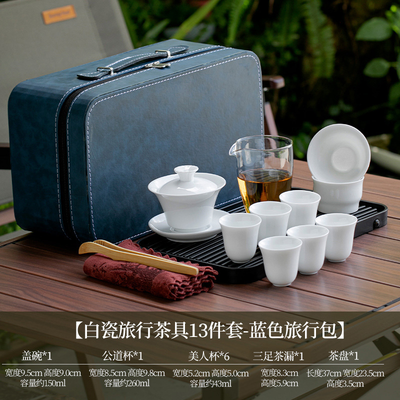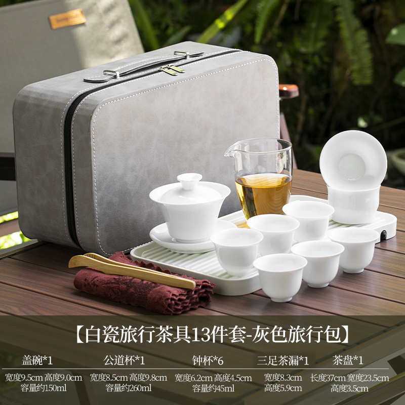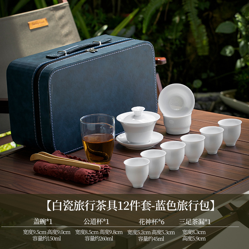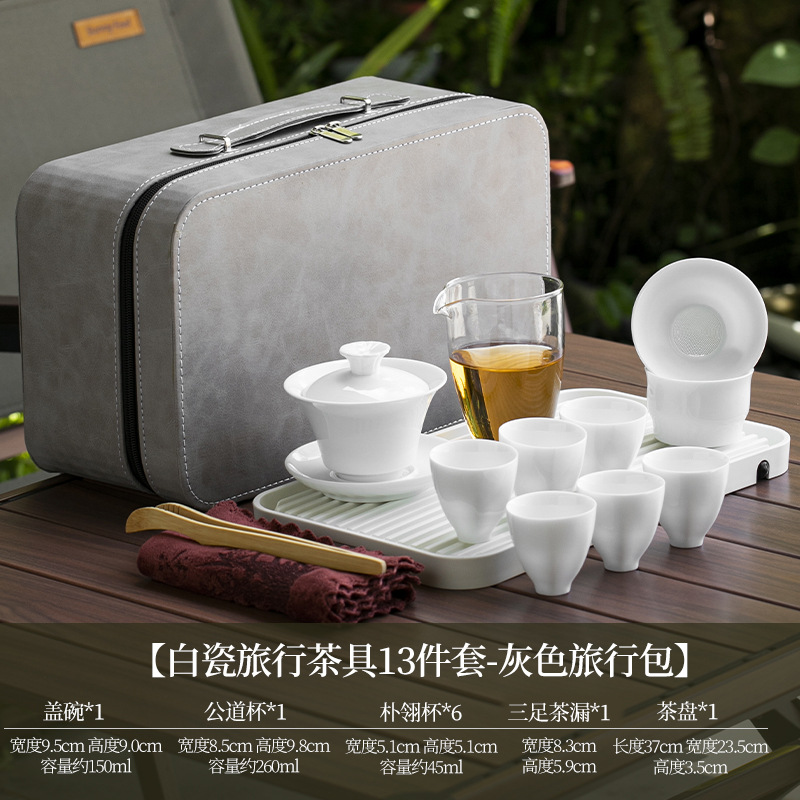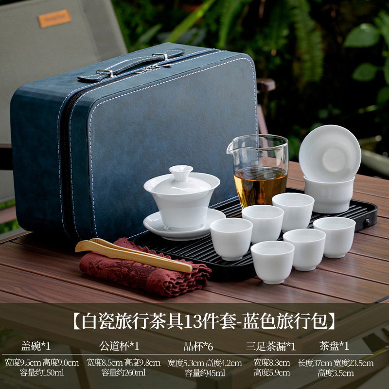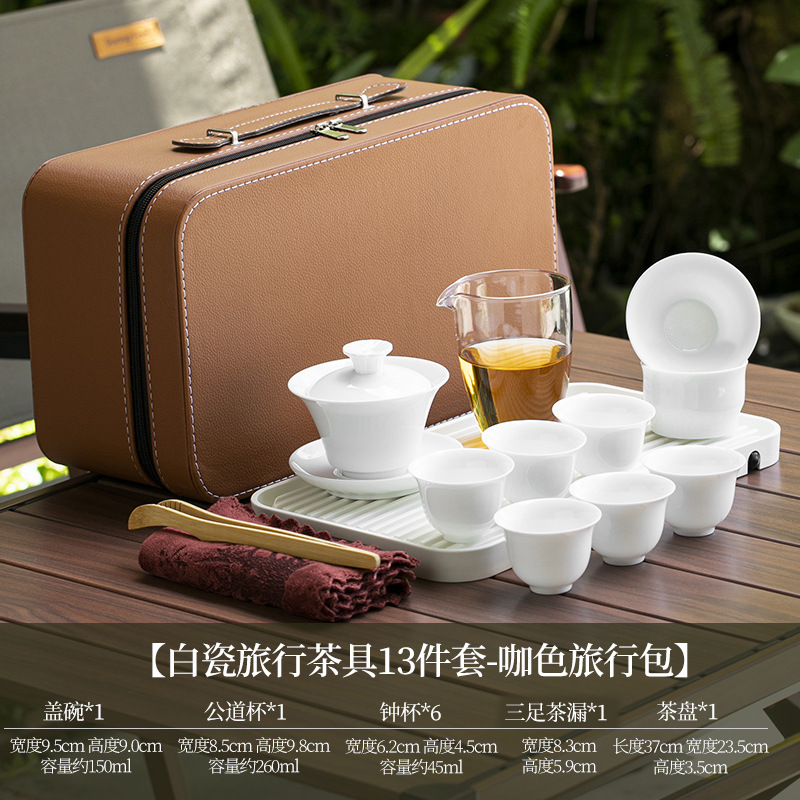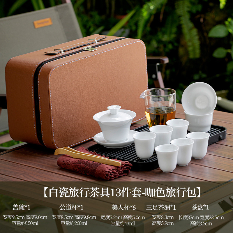 功夫茶具套装家用德化白瓷旅行小茶具储排水茶盘陶瓷盖碗泡茶整套