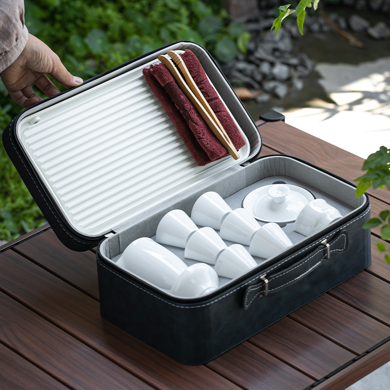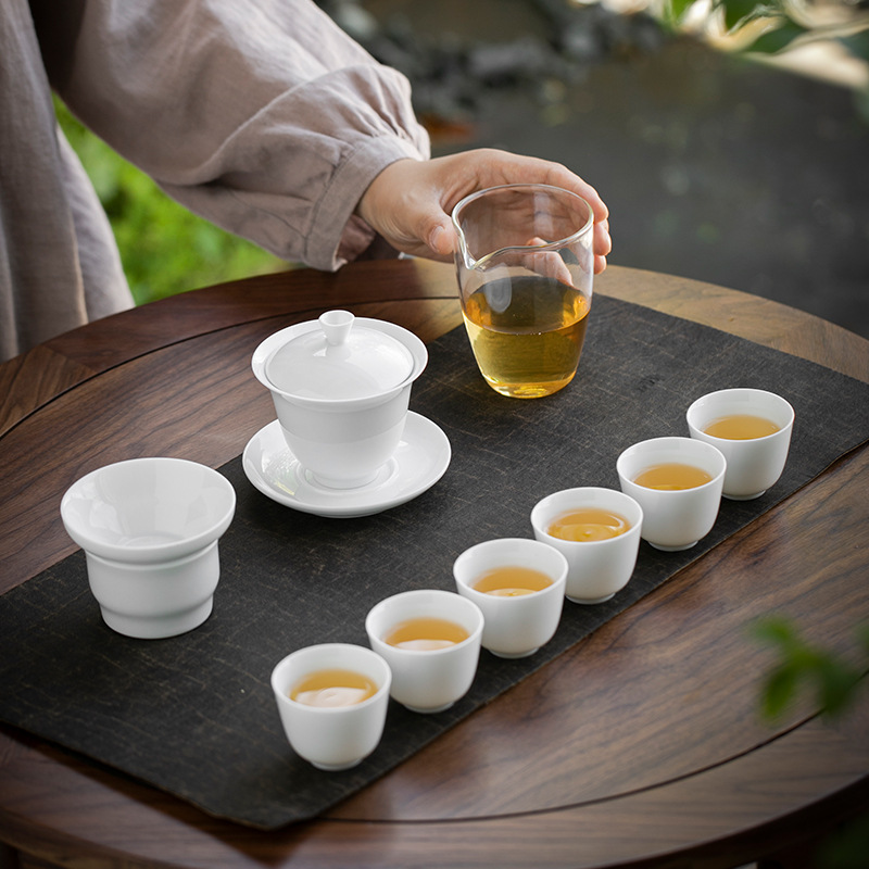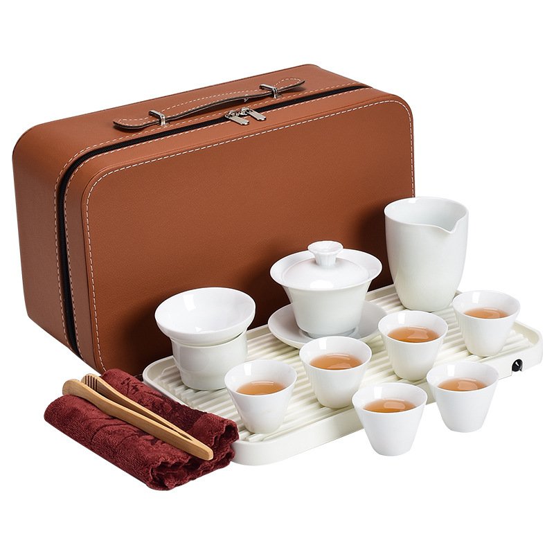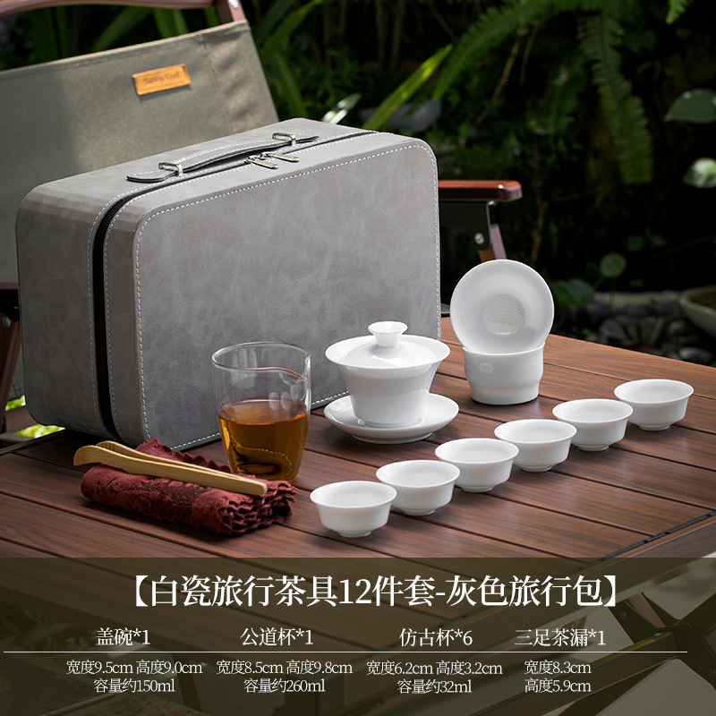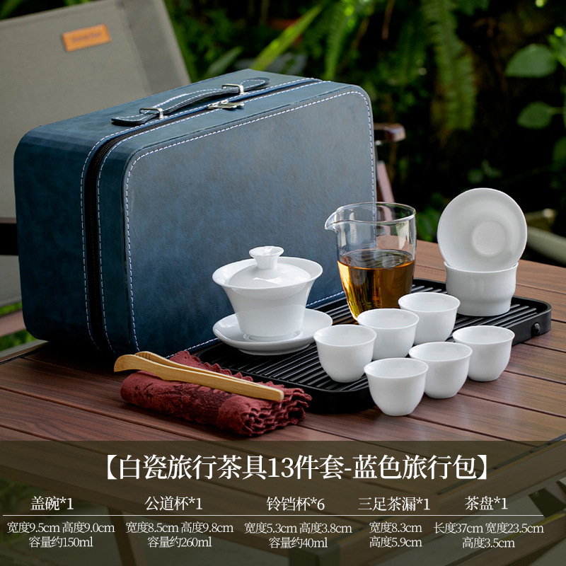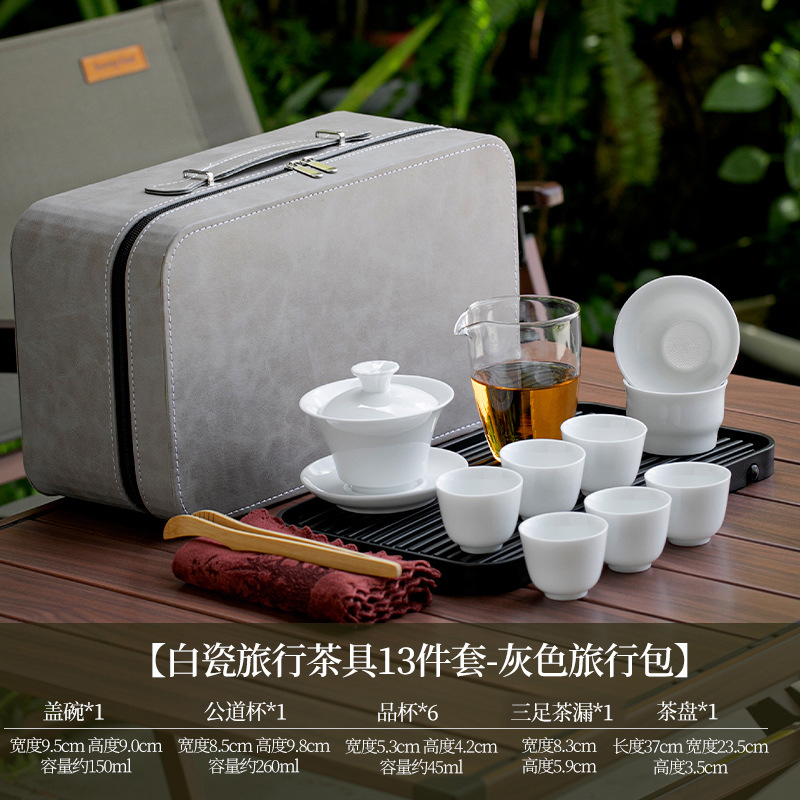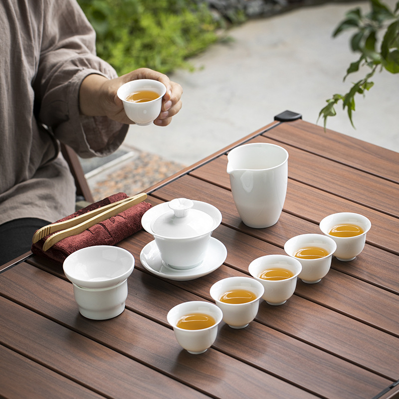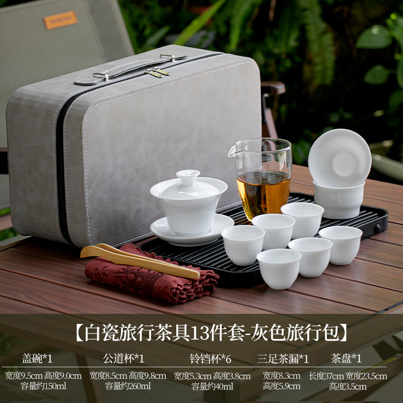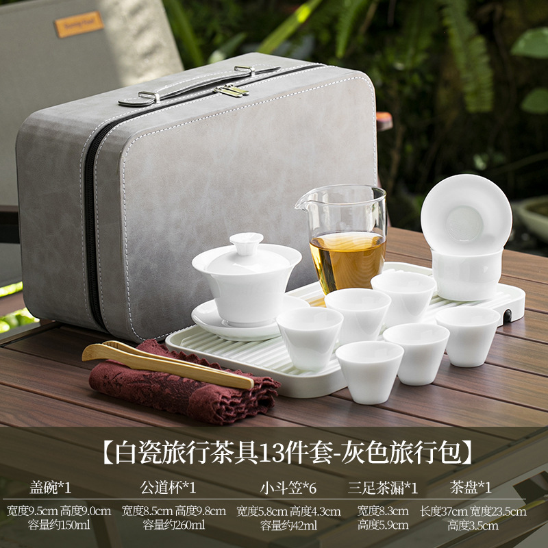 功夫茶具套装家用德化白瓷旅行小茶具储排水茶盘陶瓷盖碗泡茶整套