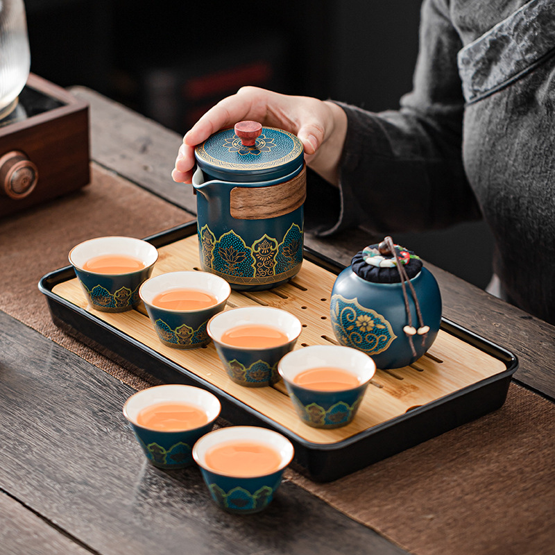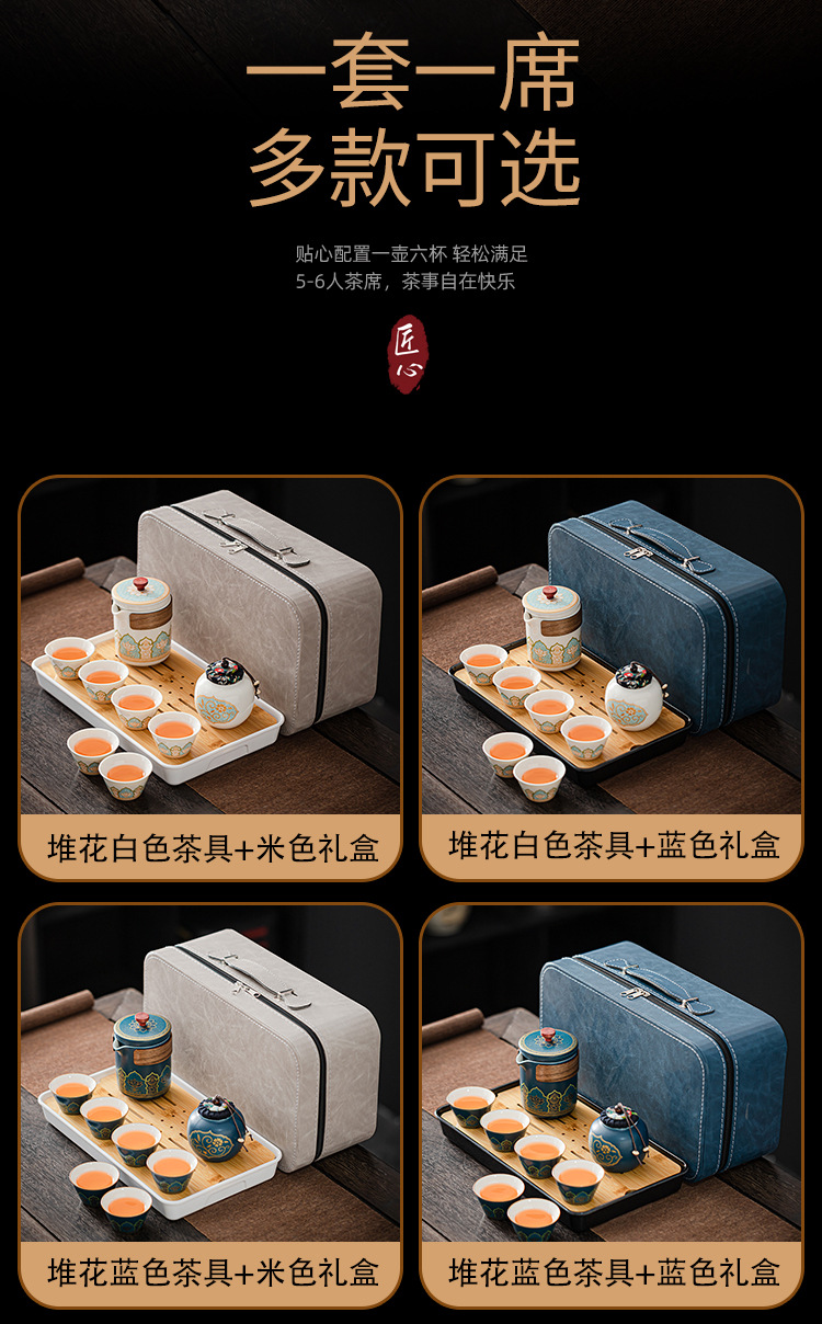 旅行茶具便携式功夫茶具套装户外泡茶壶快客杯节日商务礼品刻logo