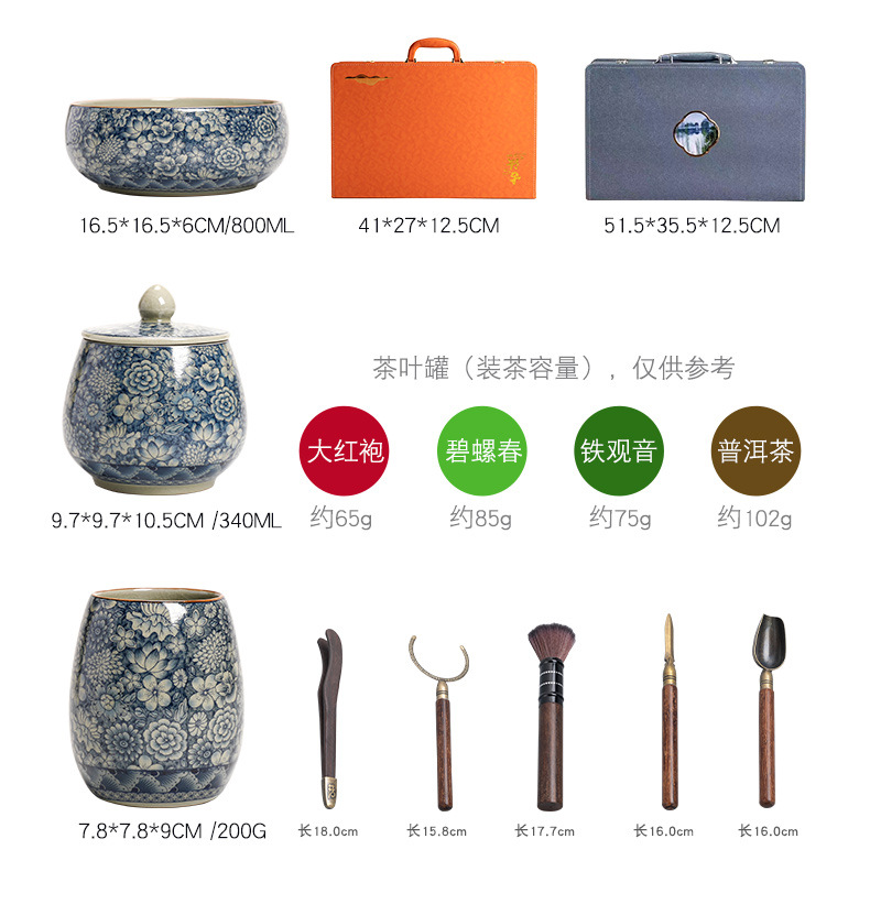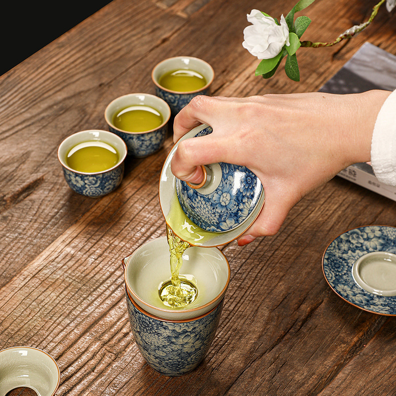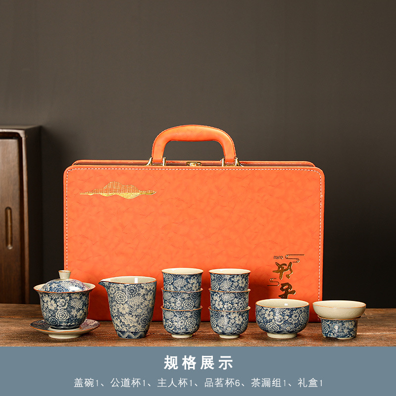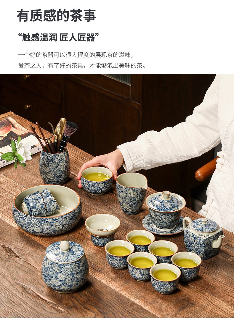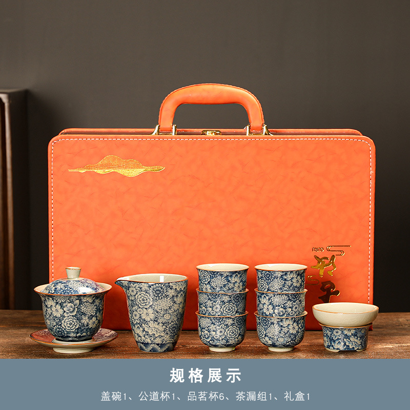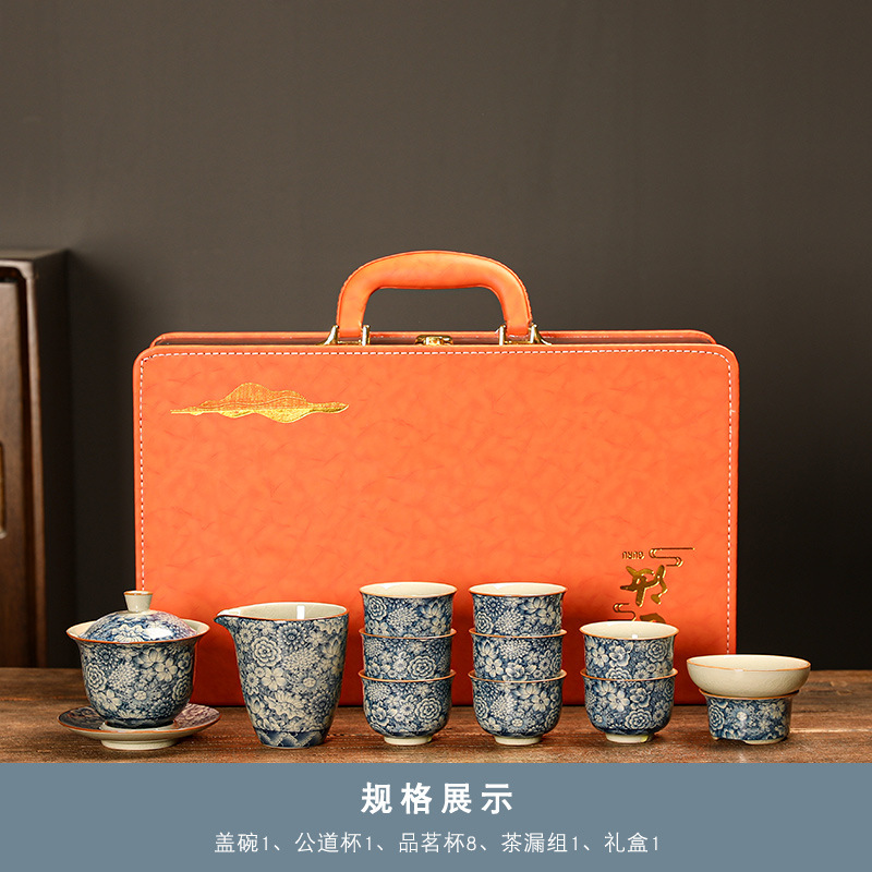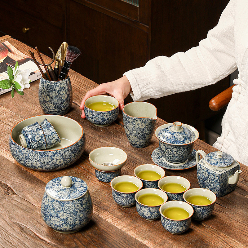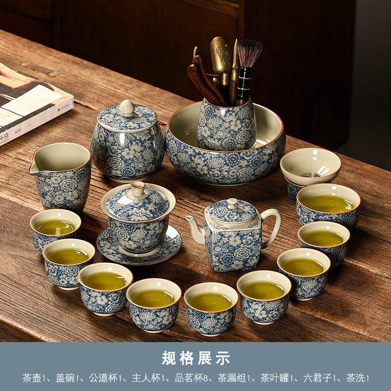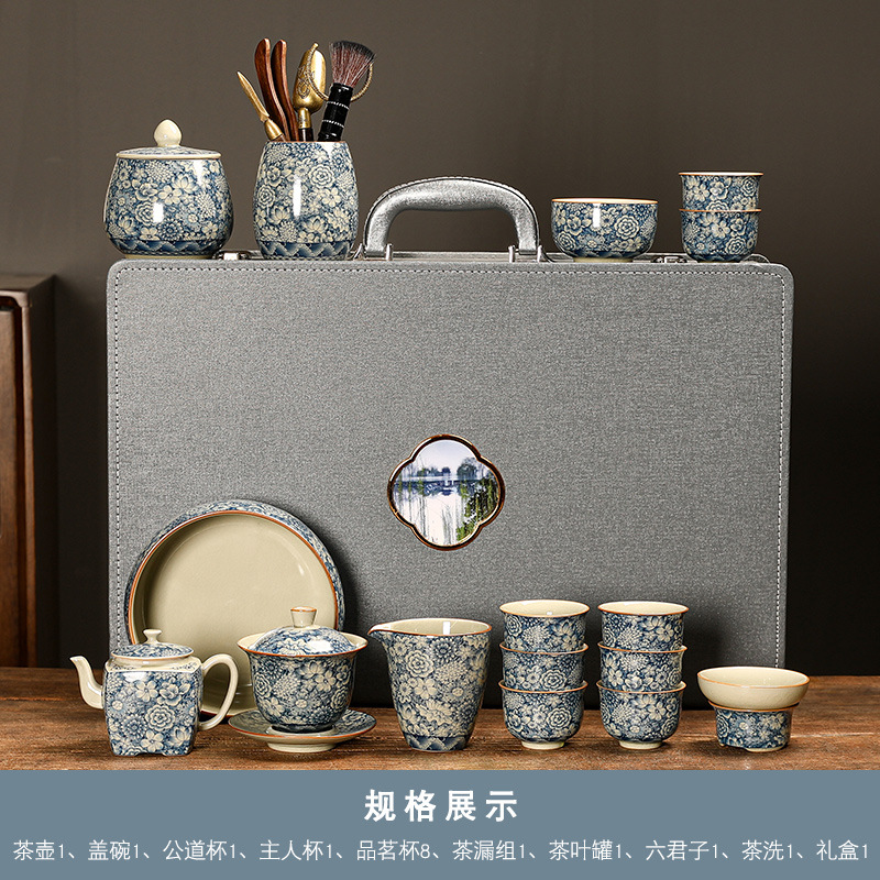 青花瓷茶具大套装家用中式茶杯茶壶盖碗茶洗办公室泡茶高档礼盒装