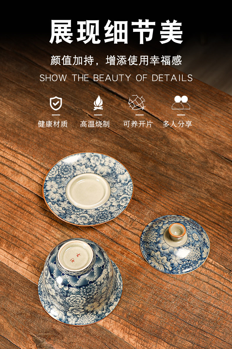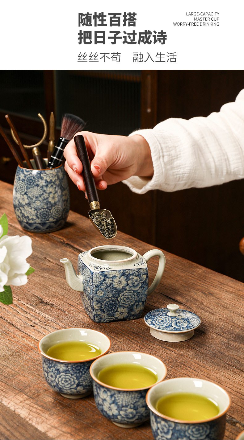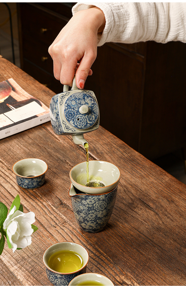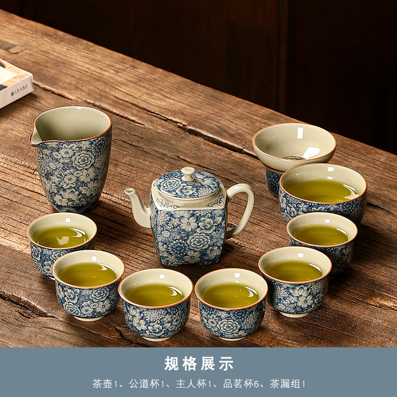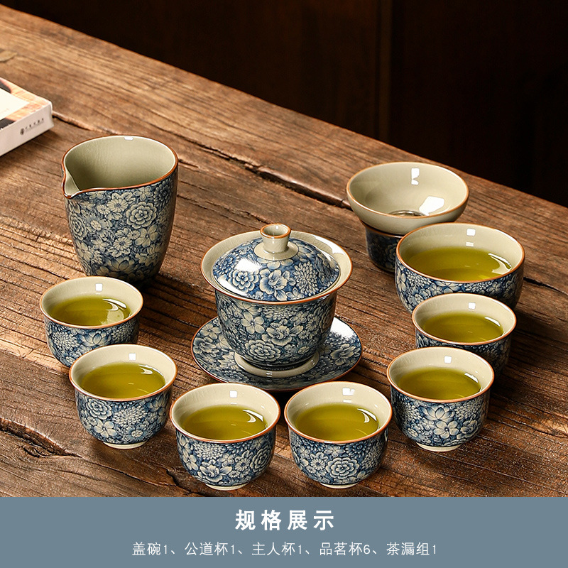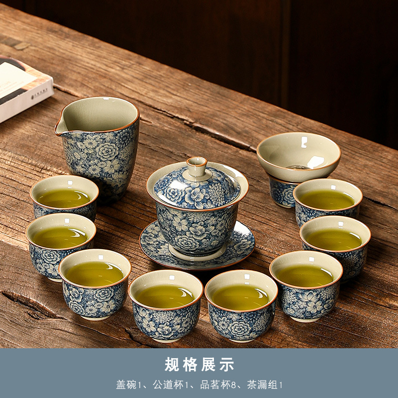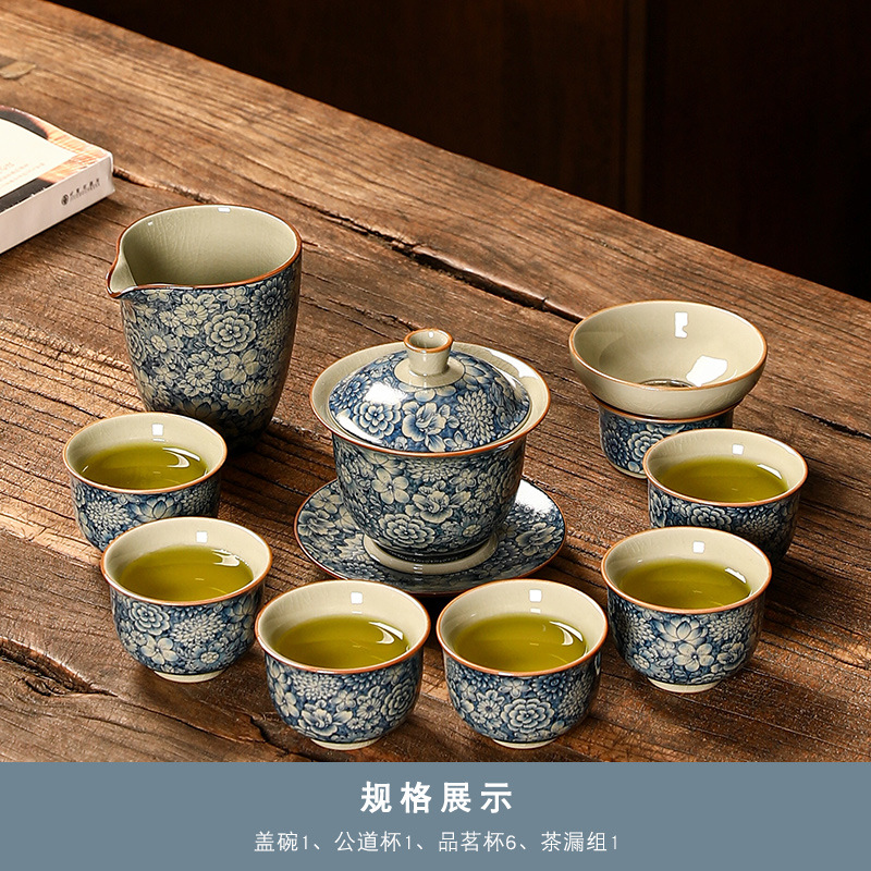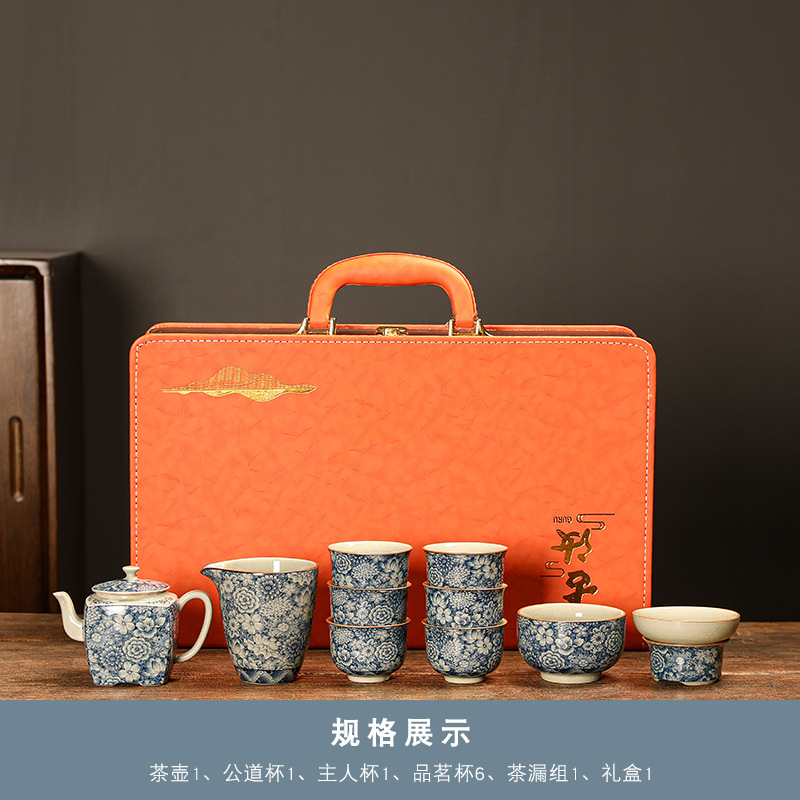 青花瓷茶具大套装家用中式茶杯茶壶盖碗茶洗办公室泡茶高档礼盒装