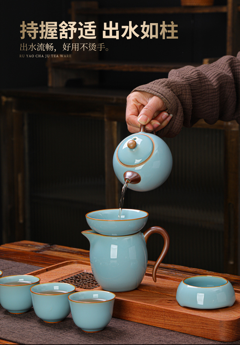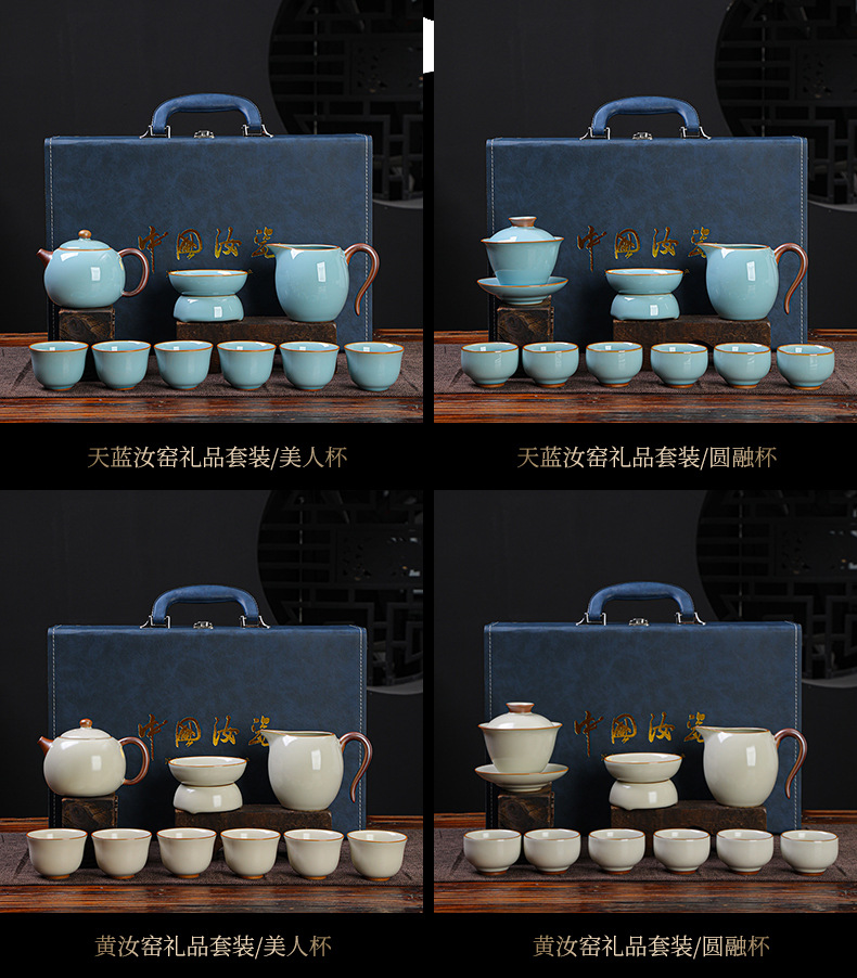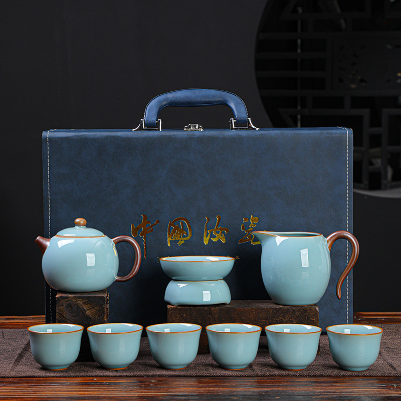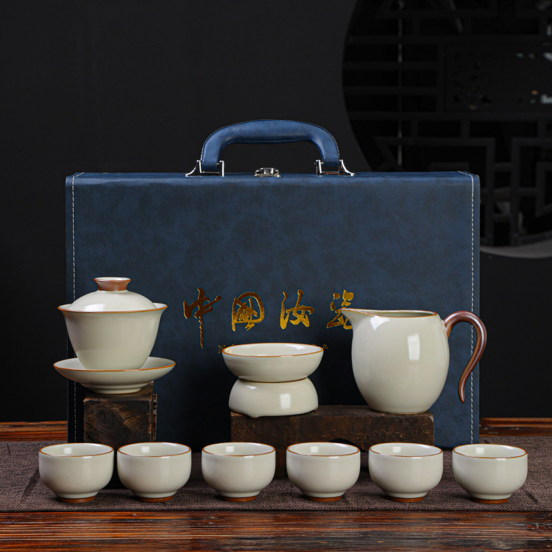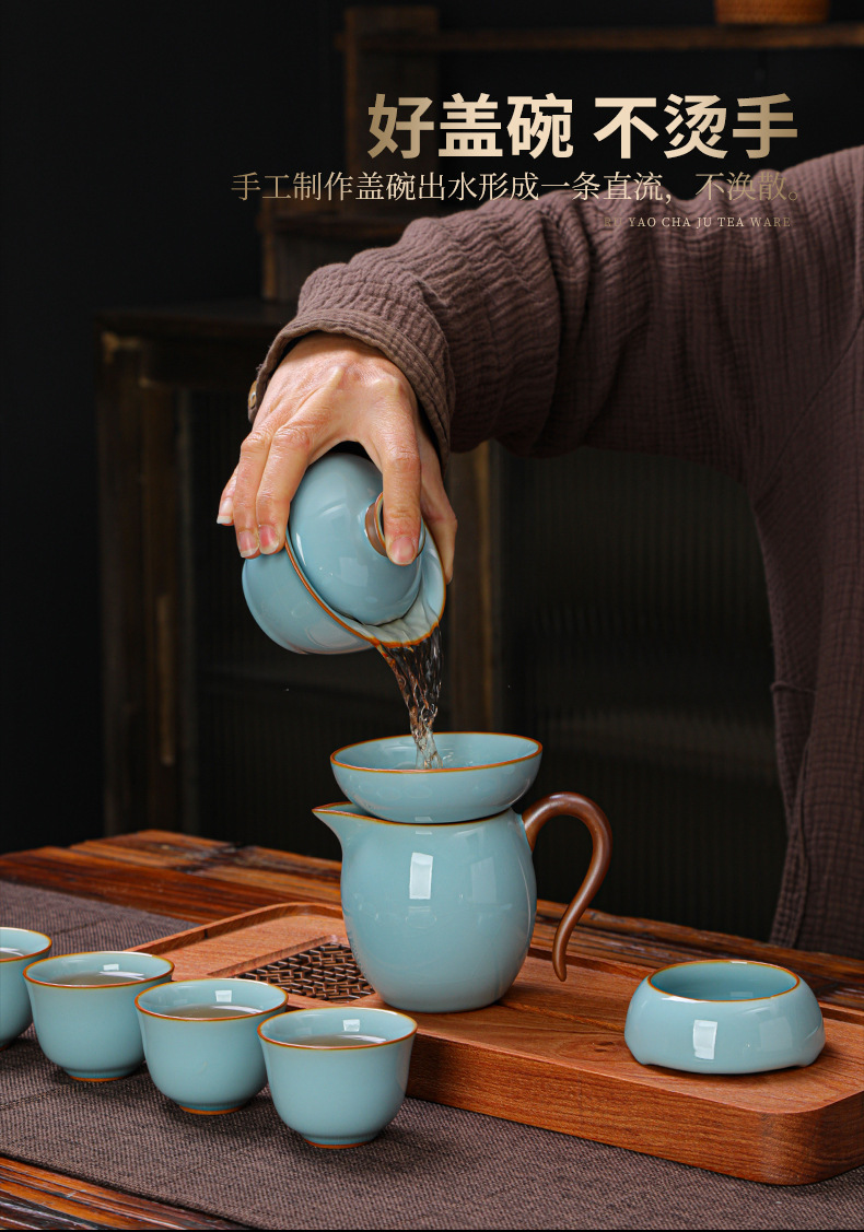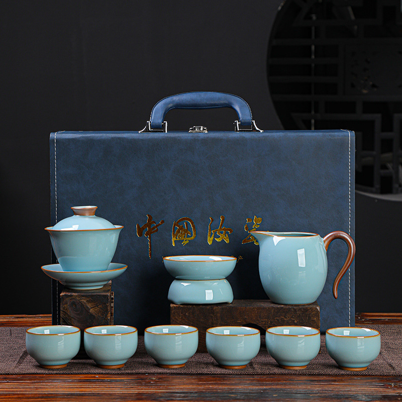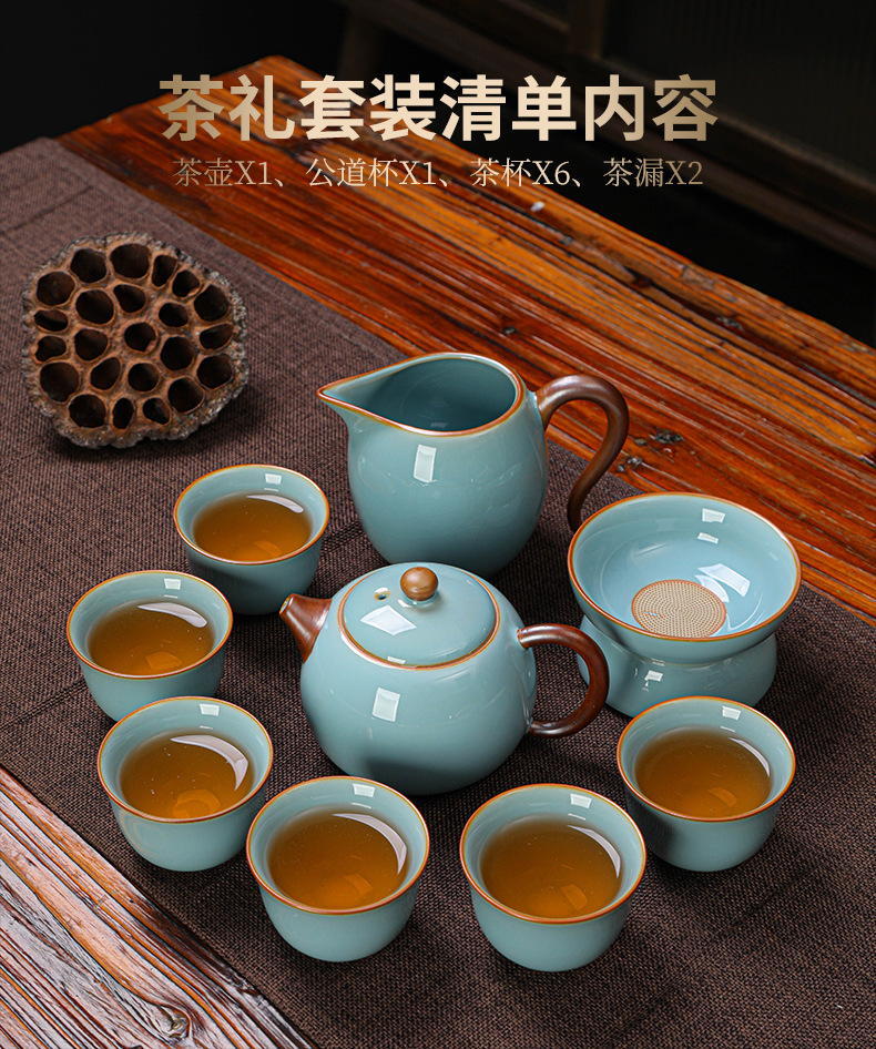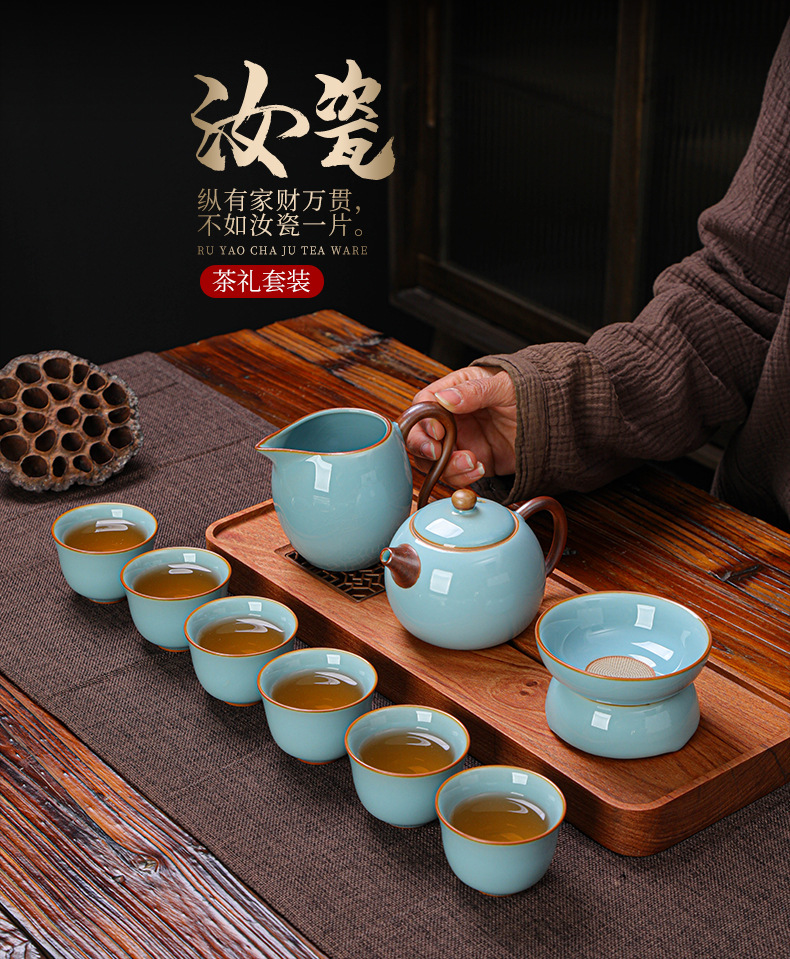 汝瓷茶具家用陶瓷功夫茶具套装开片可养整套茶壶茶盖碗茶伴手礼品