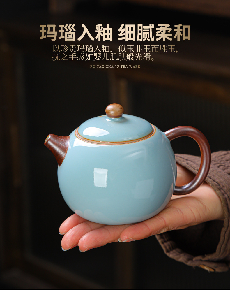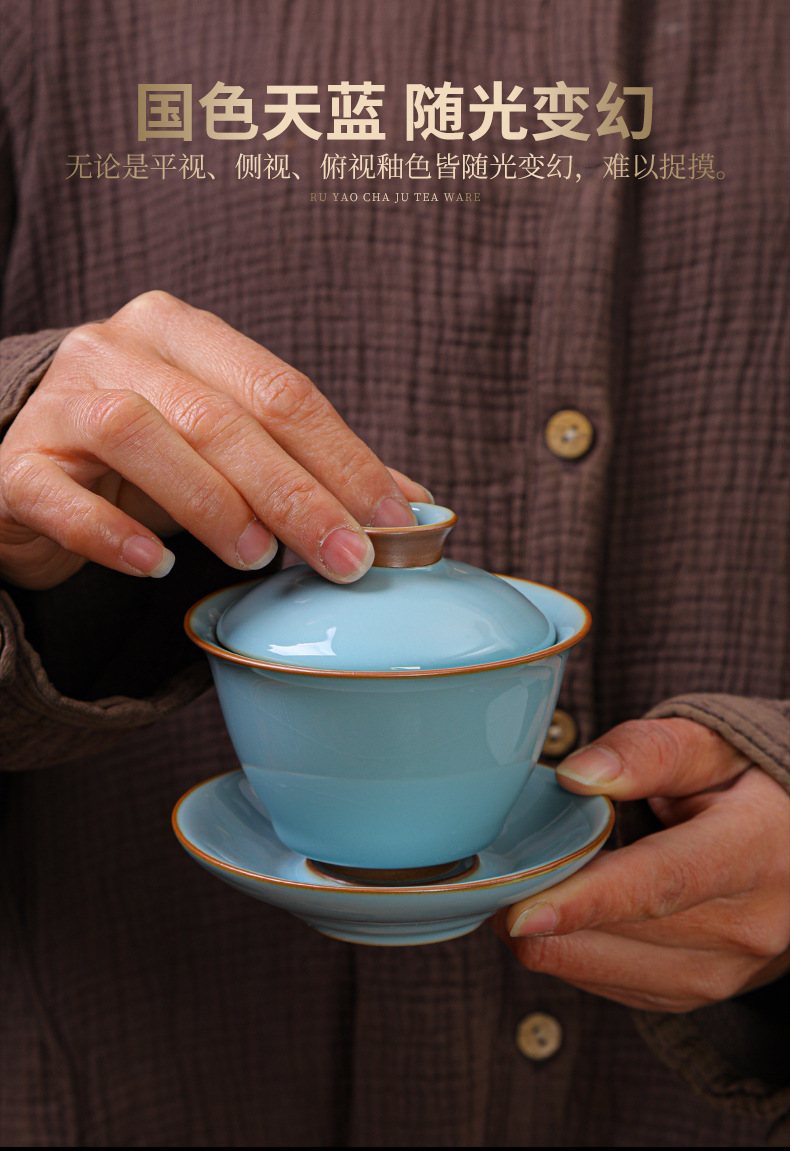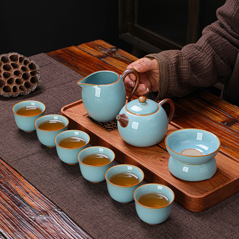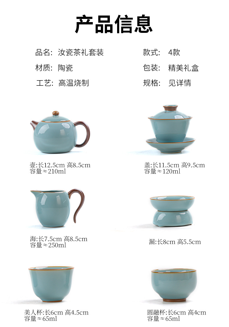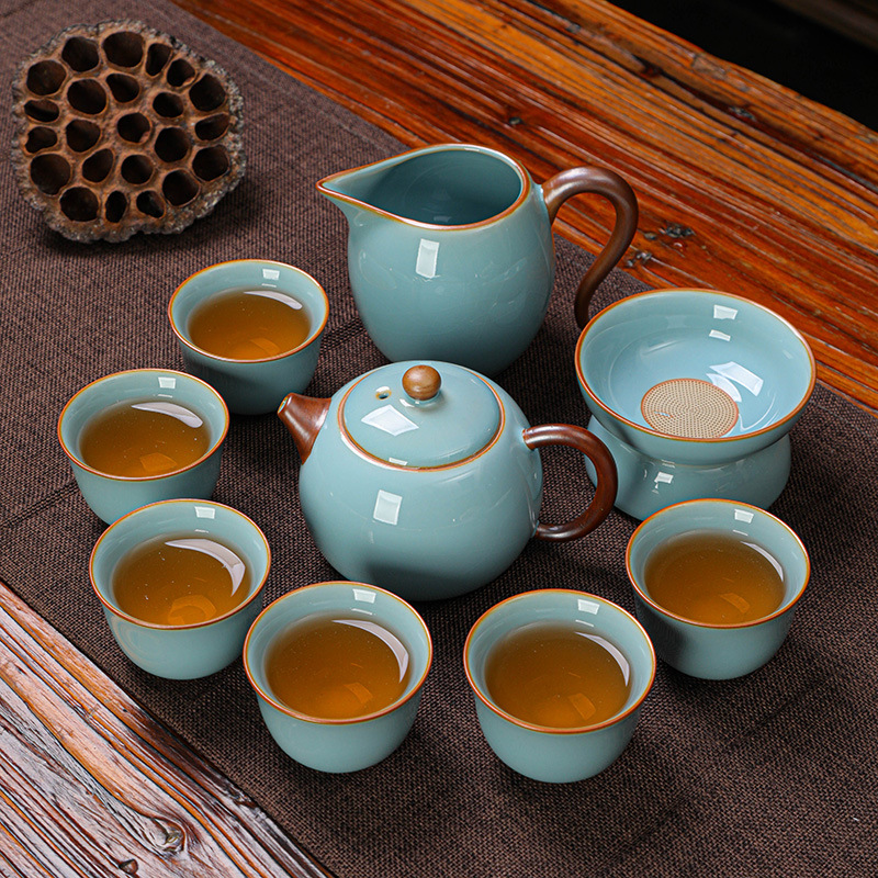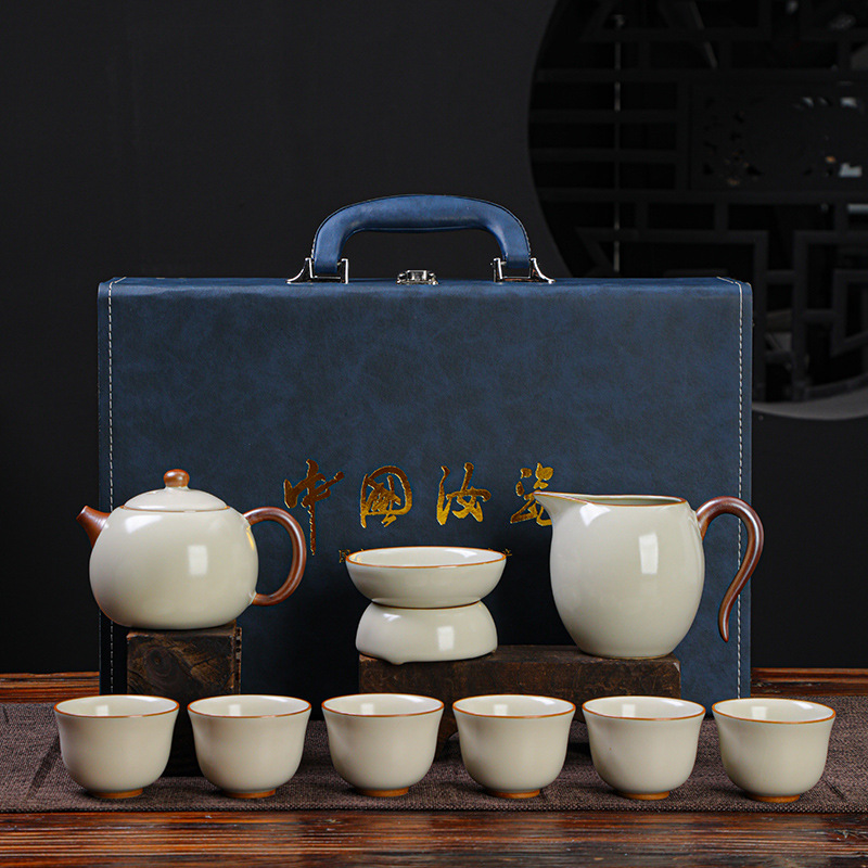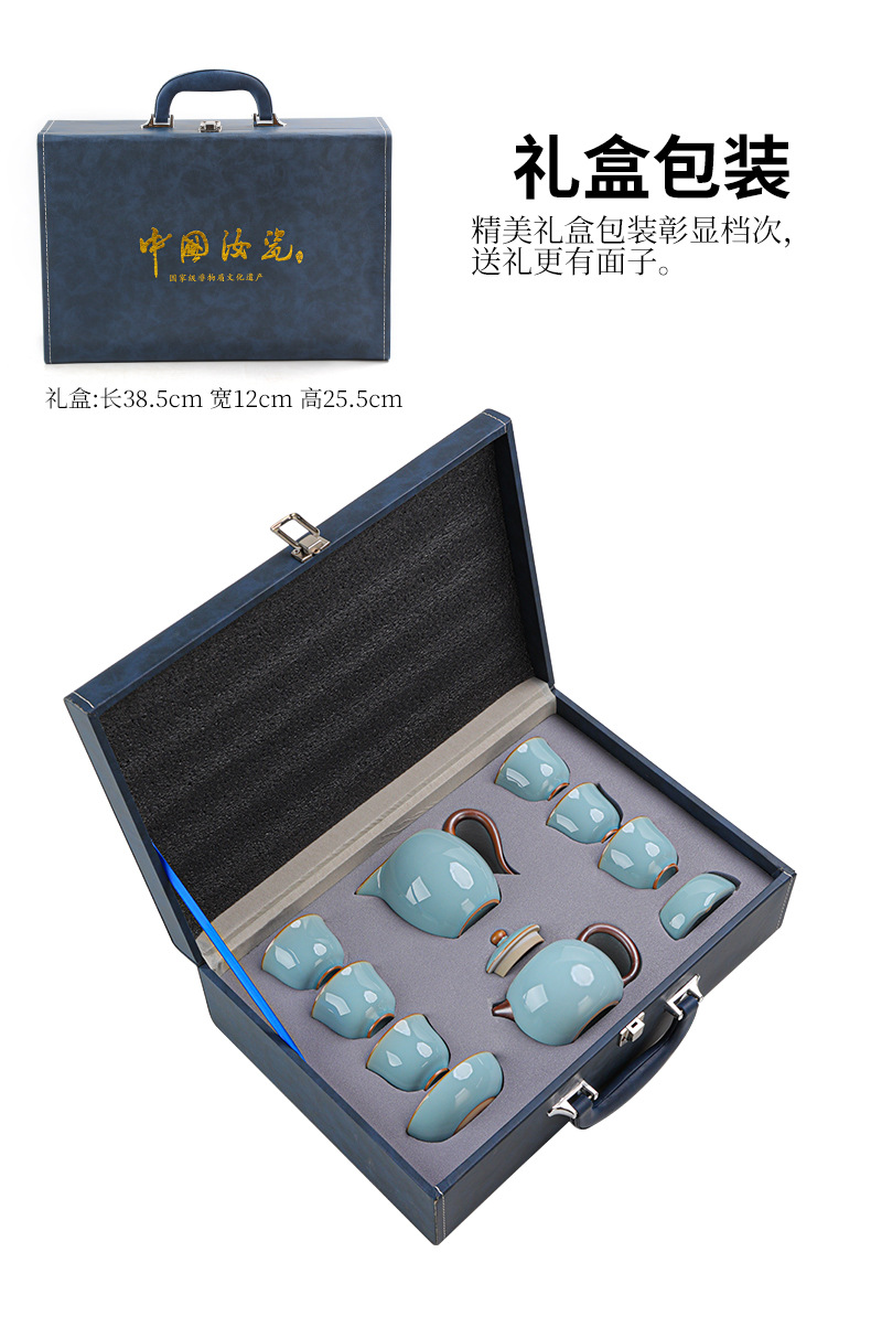 汝瓷茶具家用陶瓷功夫茶具套装开片可养整套茶壶茶盖碗茶伴手礼品
