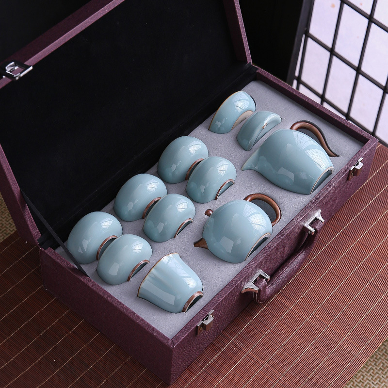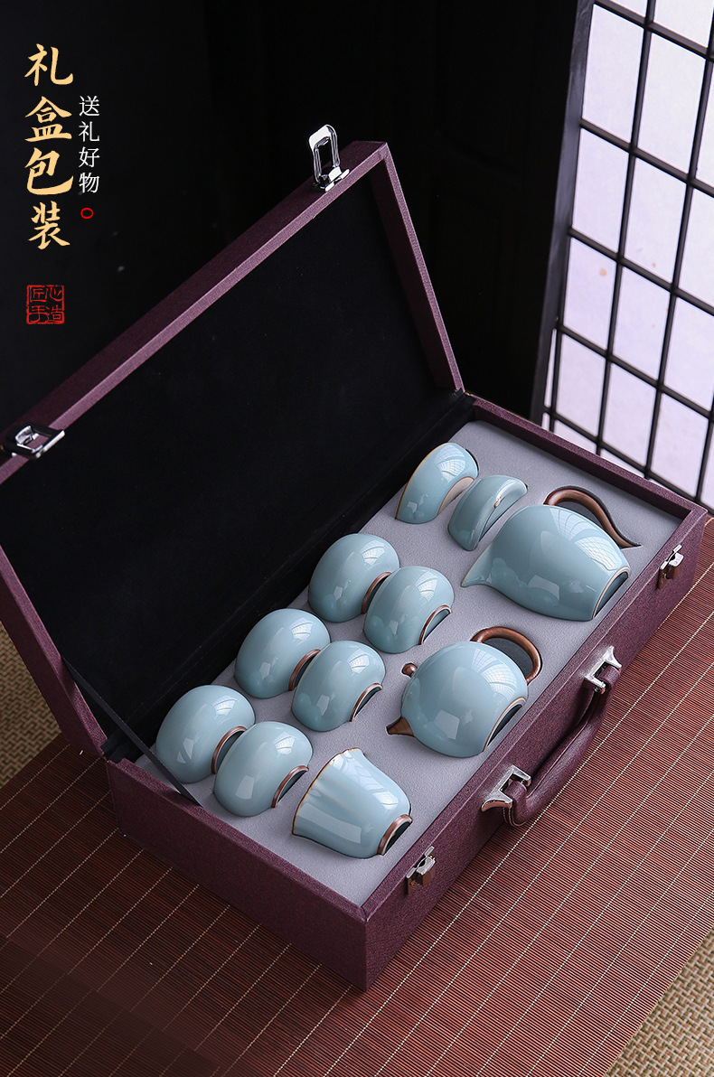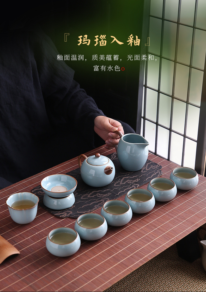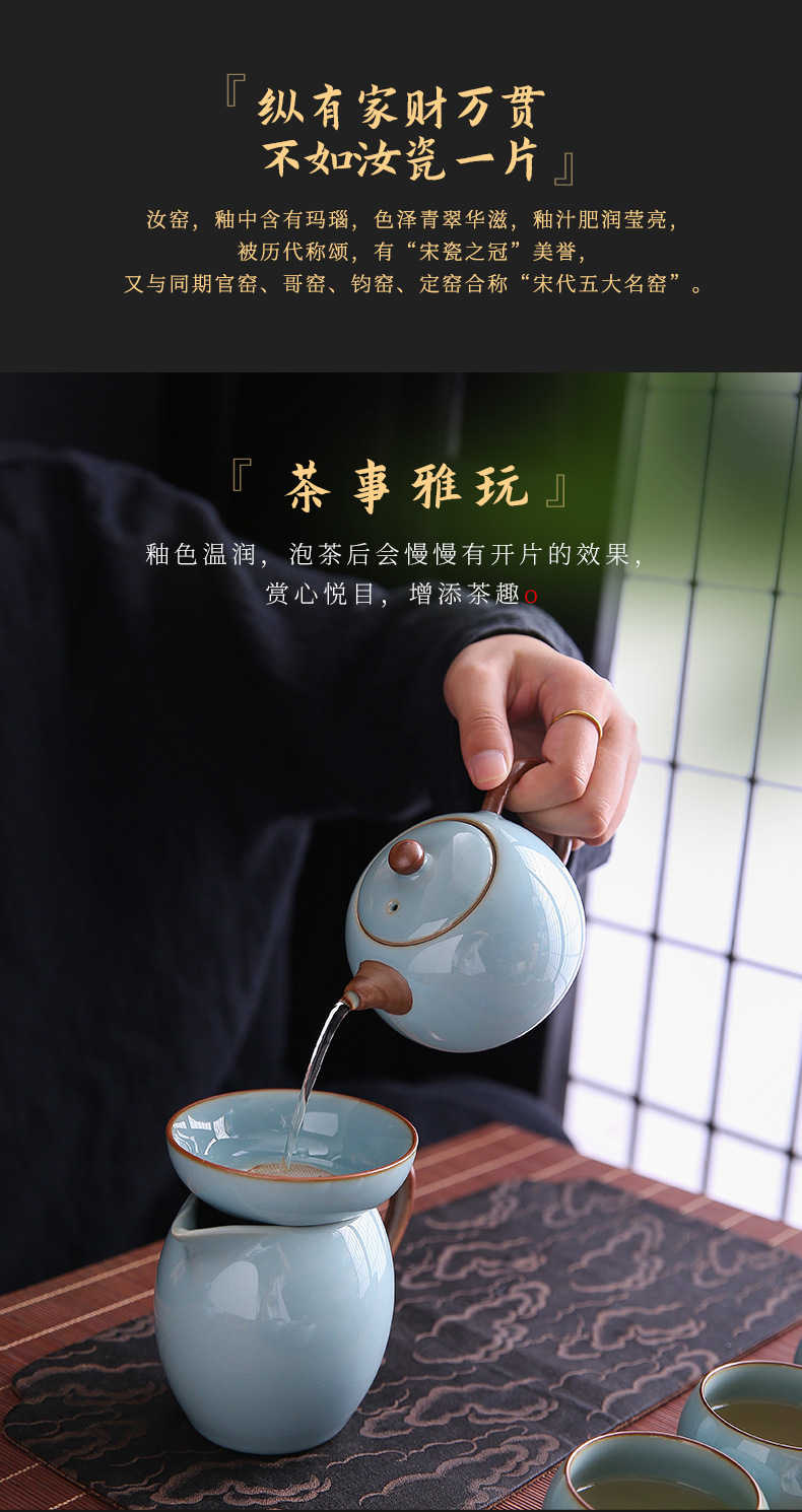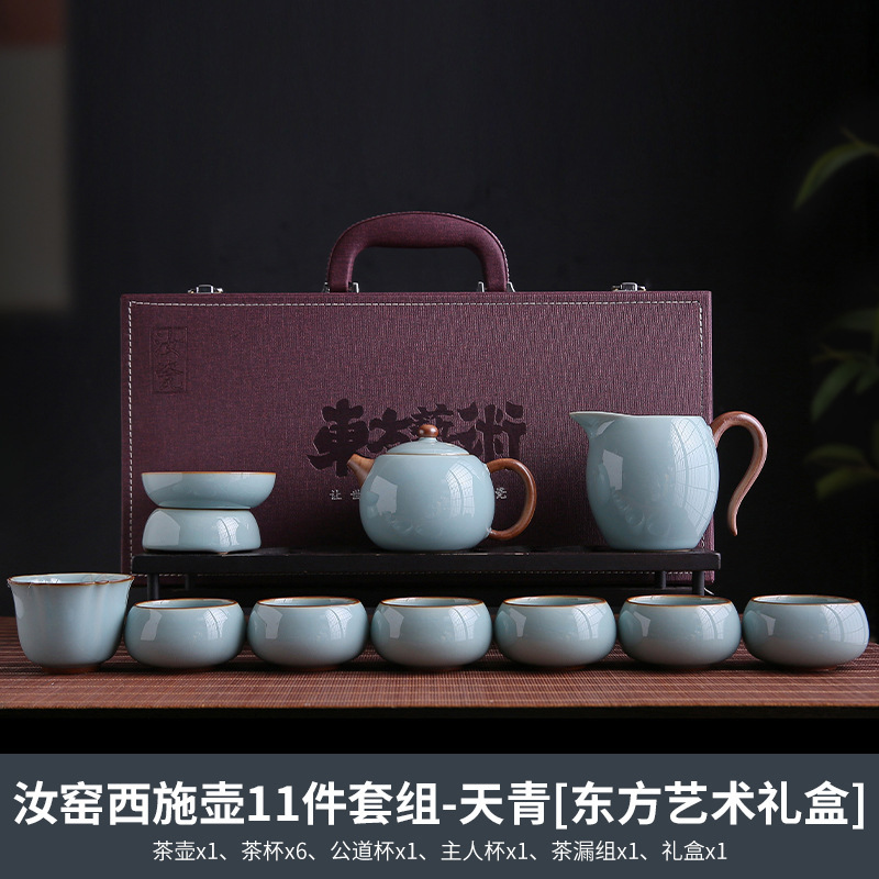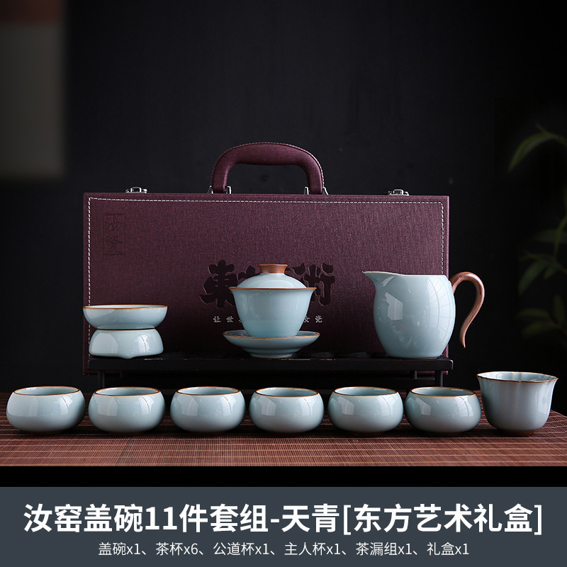 轻奢天青汝窑功夫茶具整套家用礼盒装家用送礼汝瓷套装盖碗西施壶