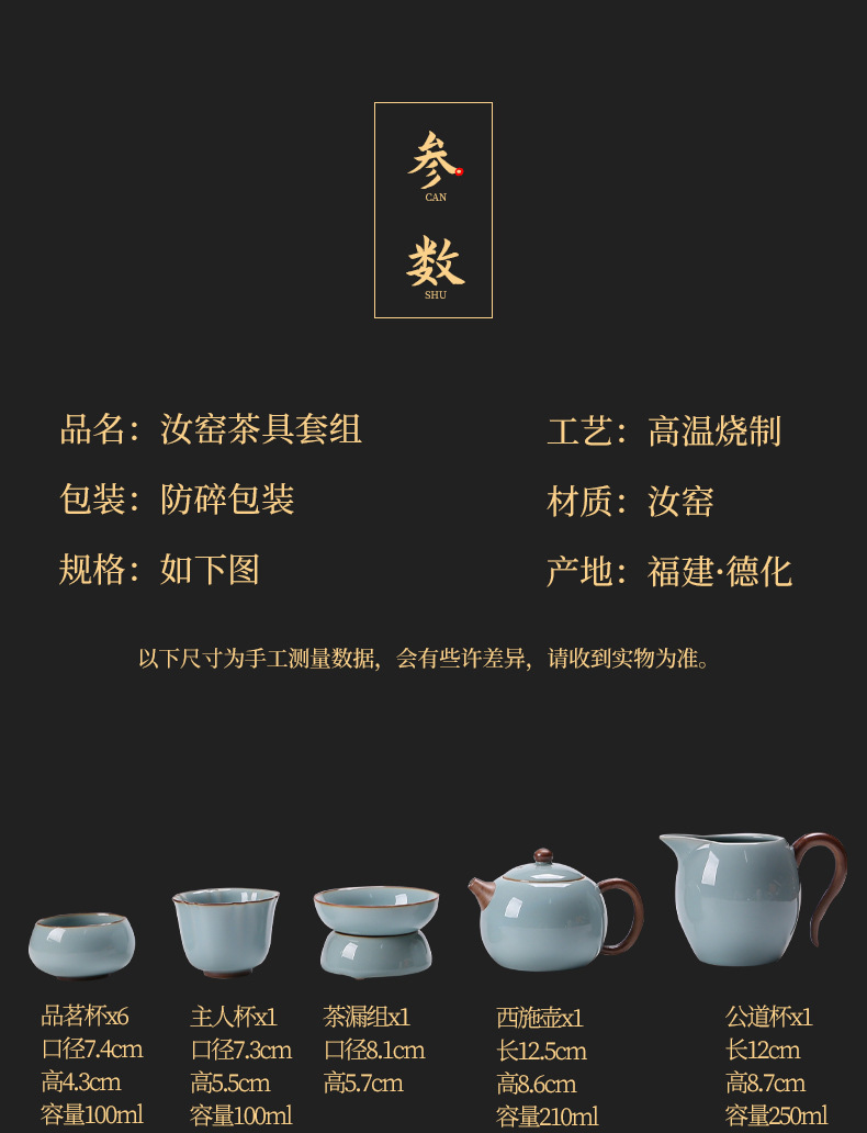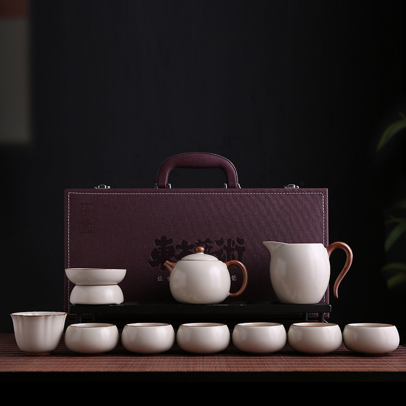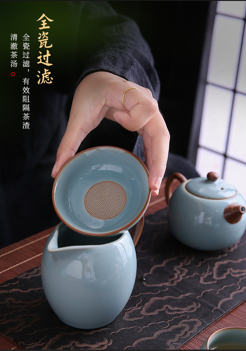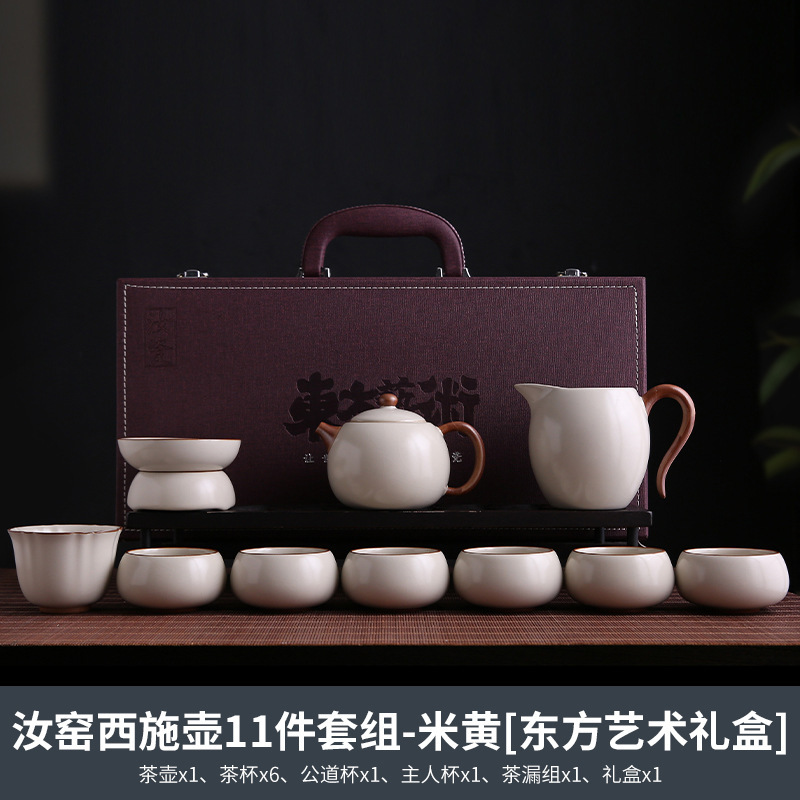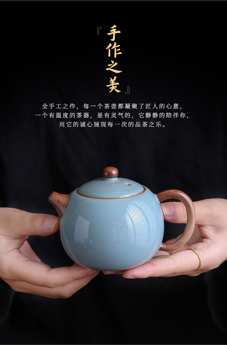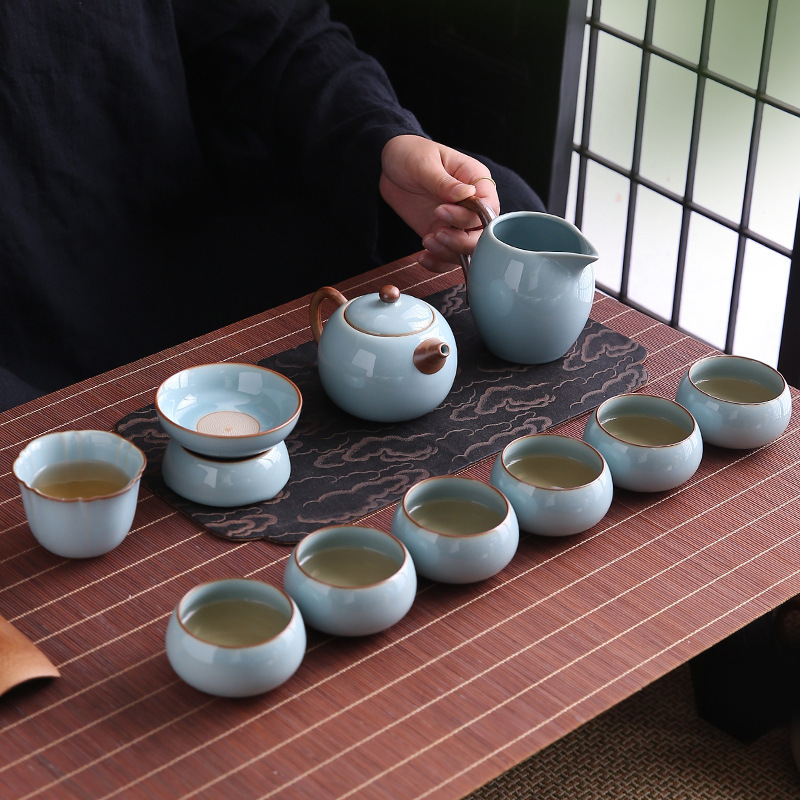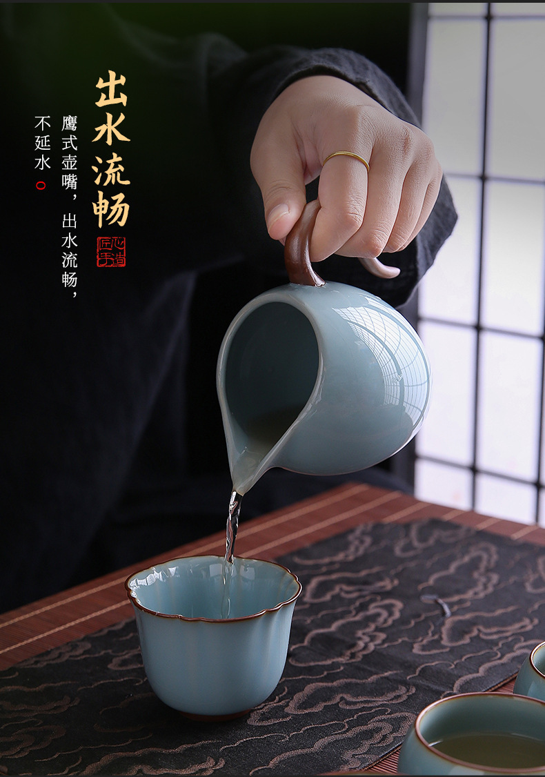 轻奢天青汝窑功夫茶具整套家用礼盒装家用送礼汝瓷套装盖碗西施壶