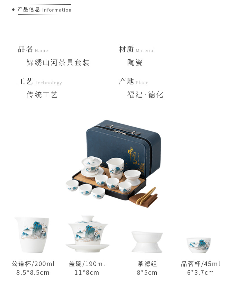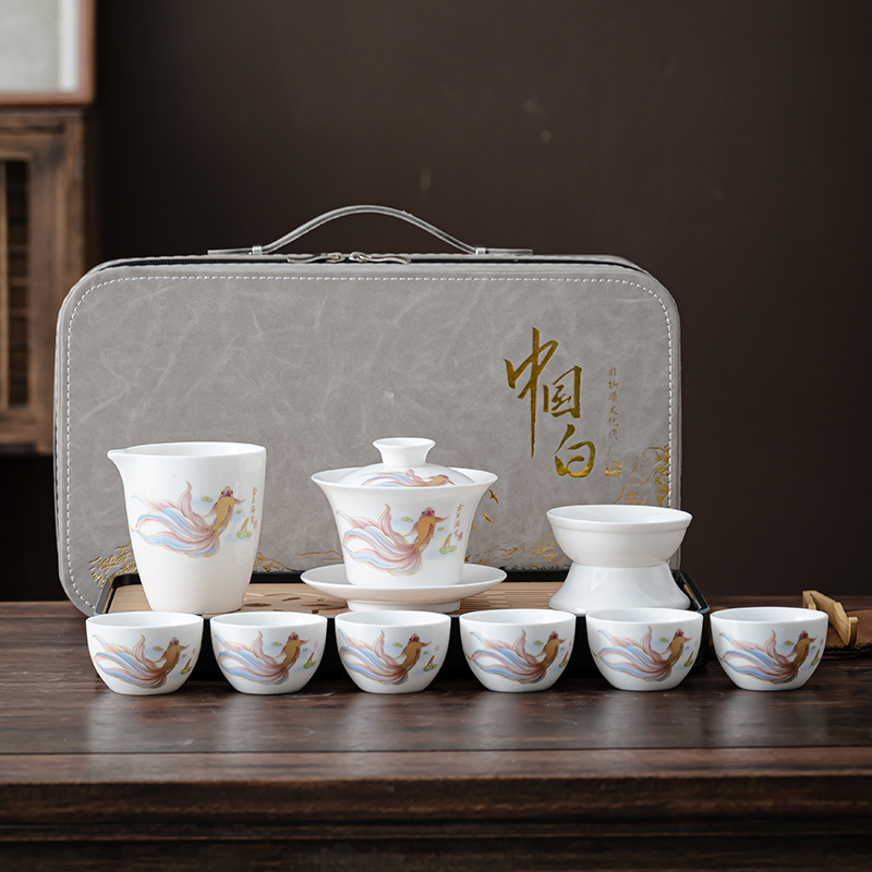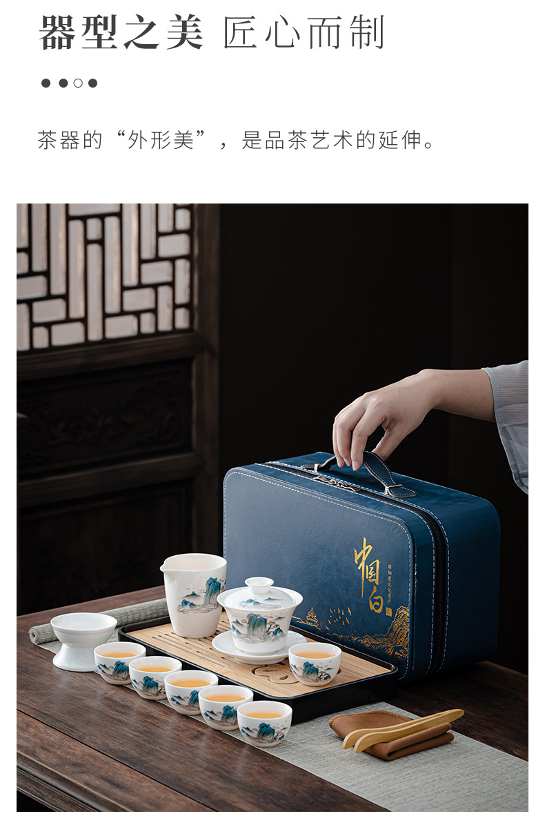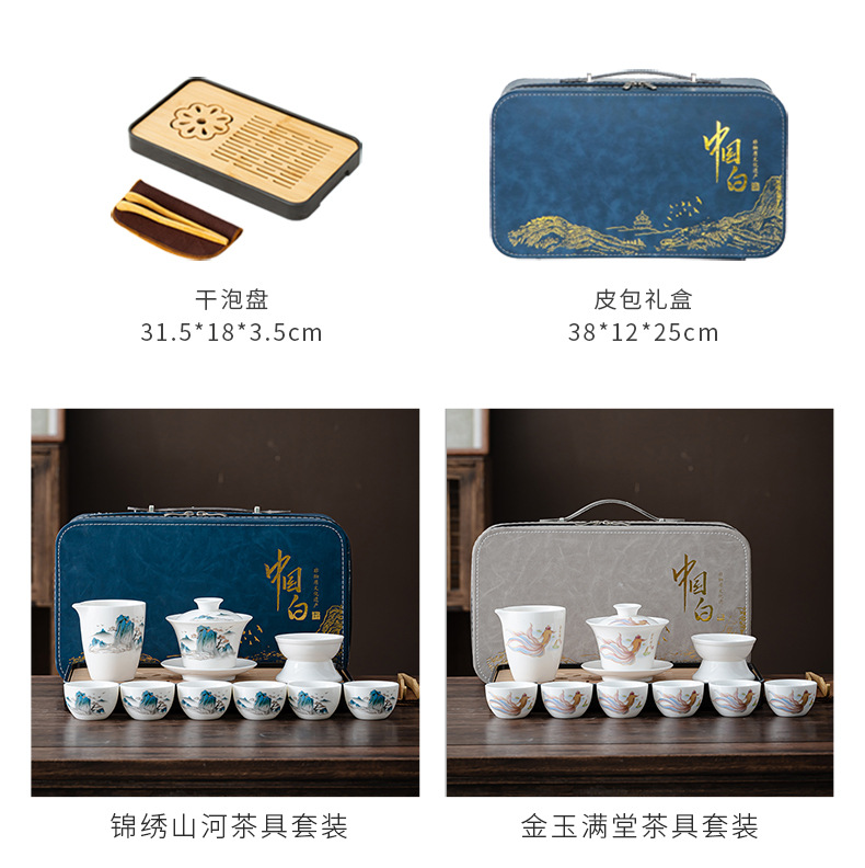 羊脂玉白瓷旅行功夫茶具套装便携式户外茶具家用盖碗茶杯商务礼品