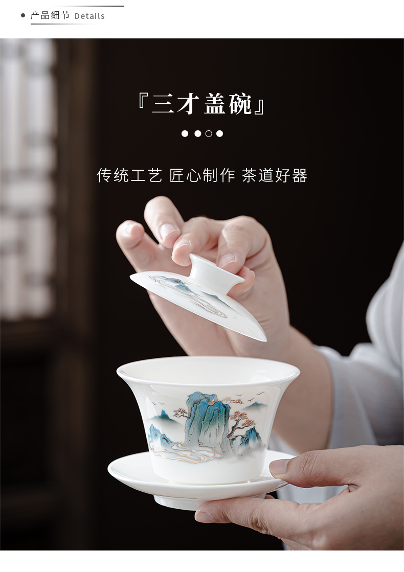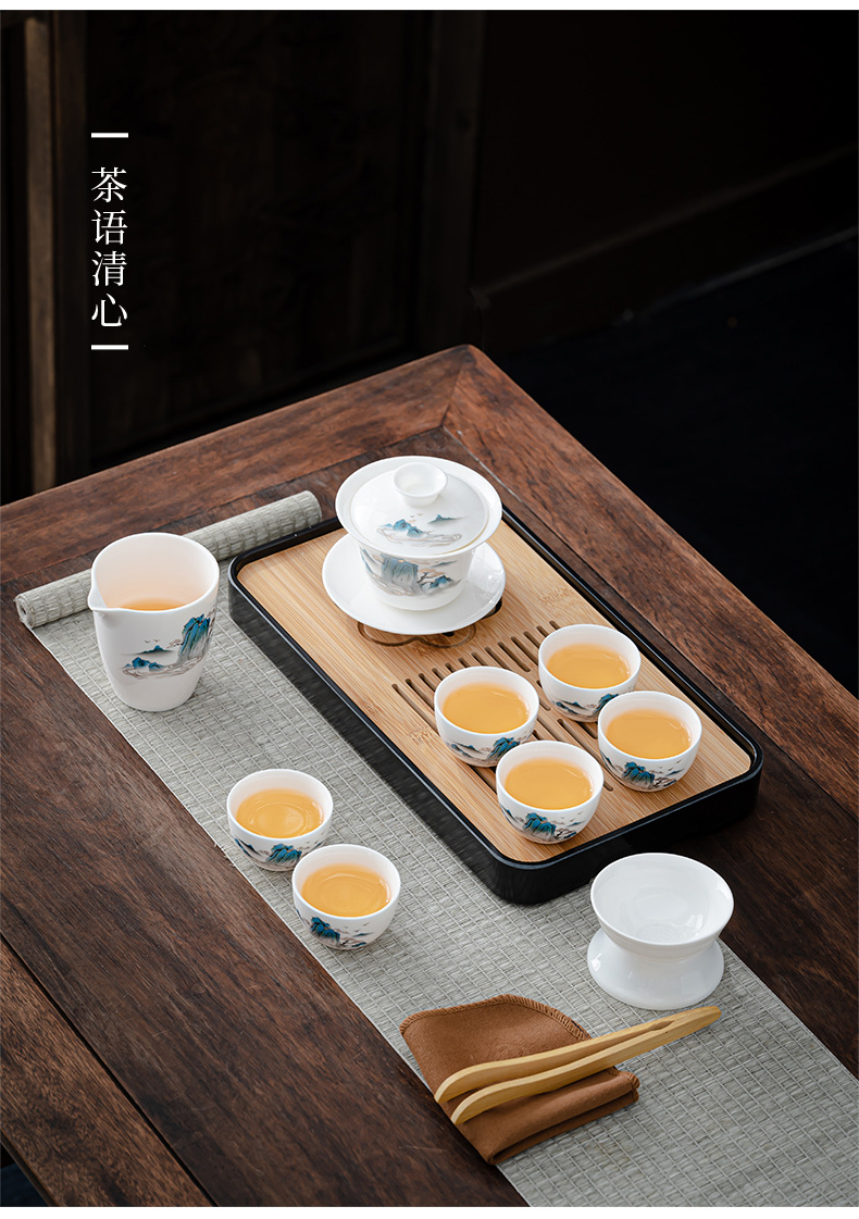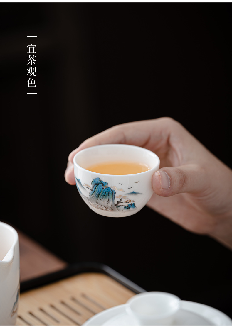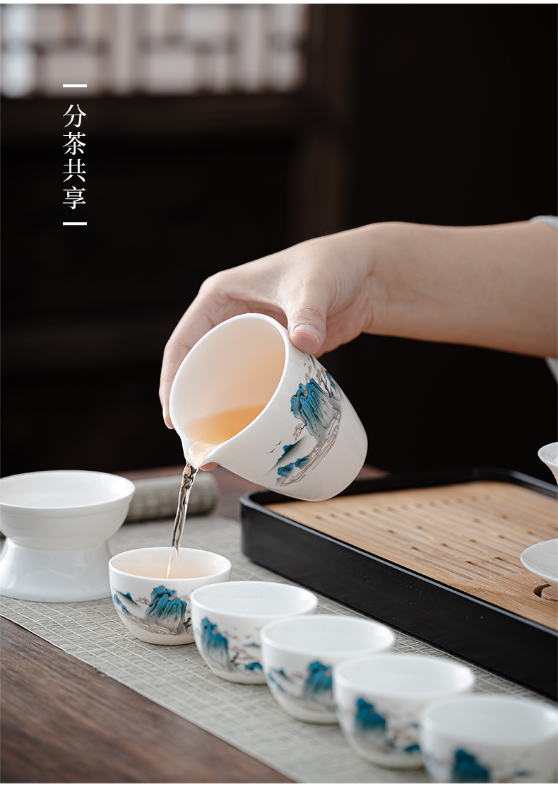 羊脂玉白瓷旅行功夫茶具套装便携式户外茶具家用盖碗茶杯商务礼品