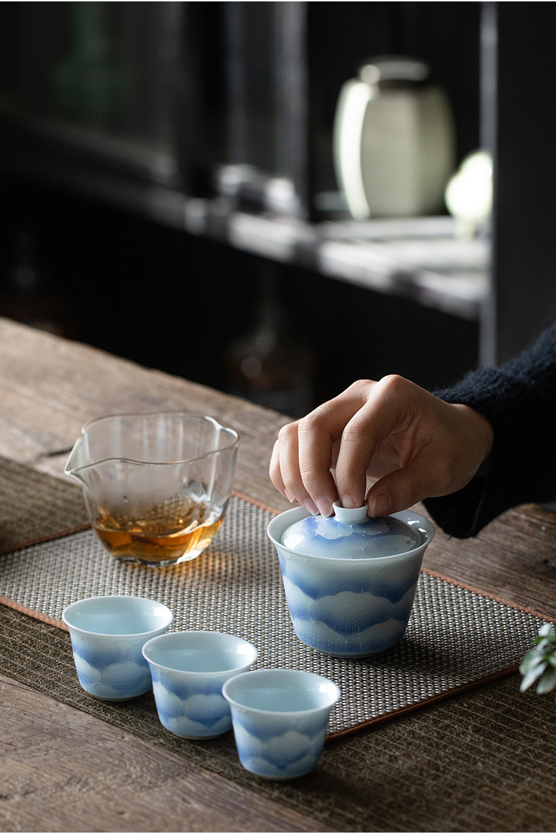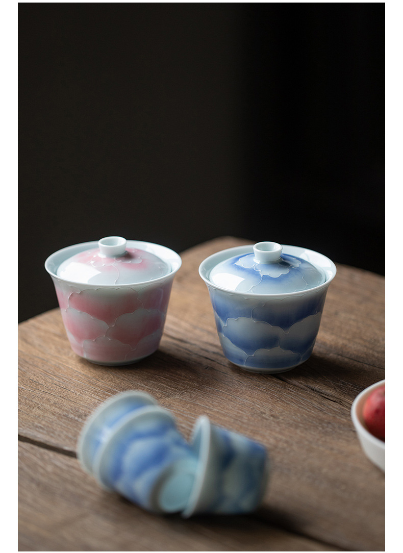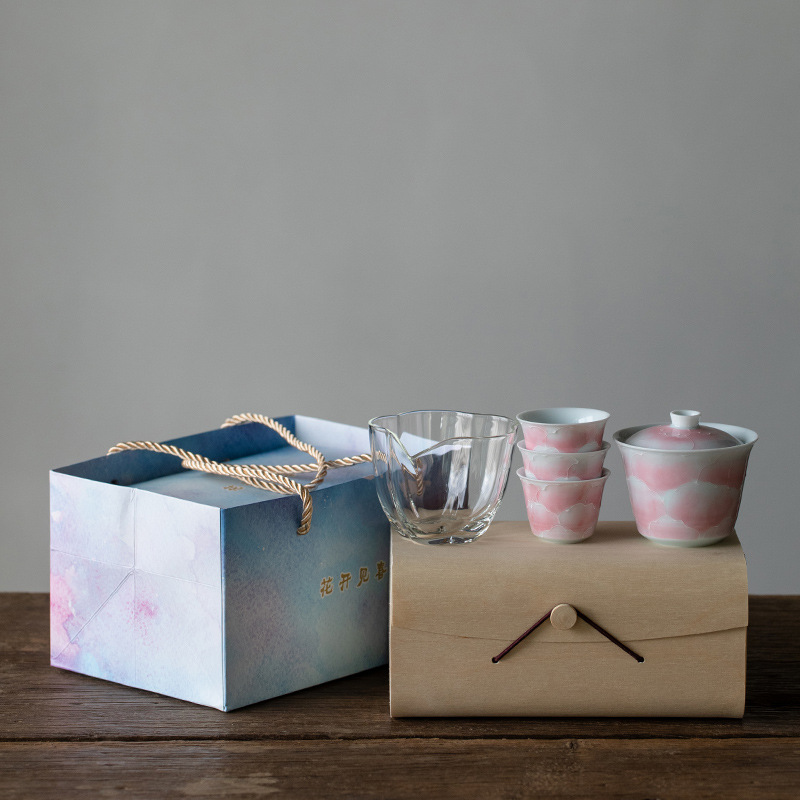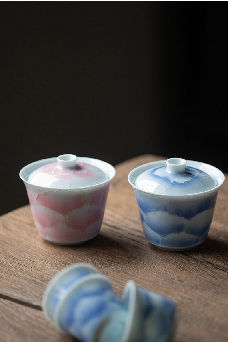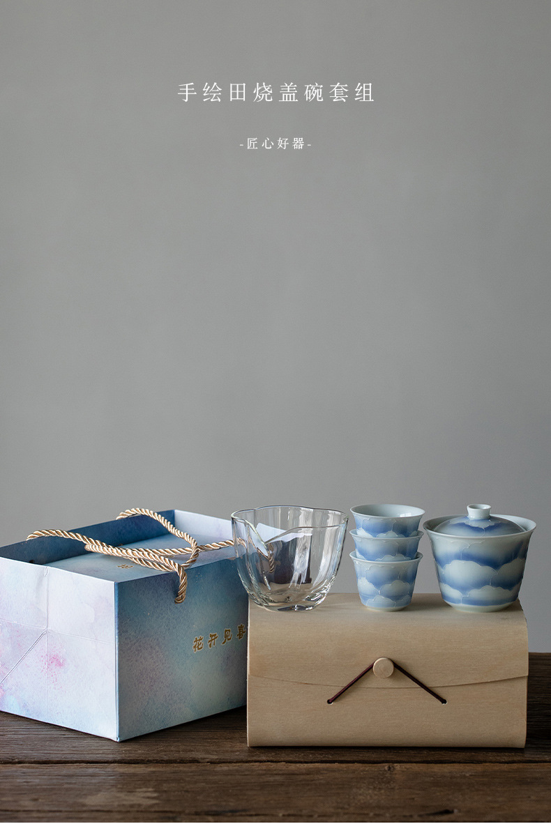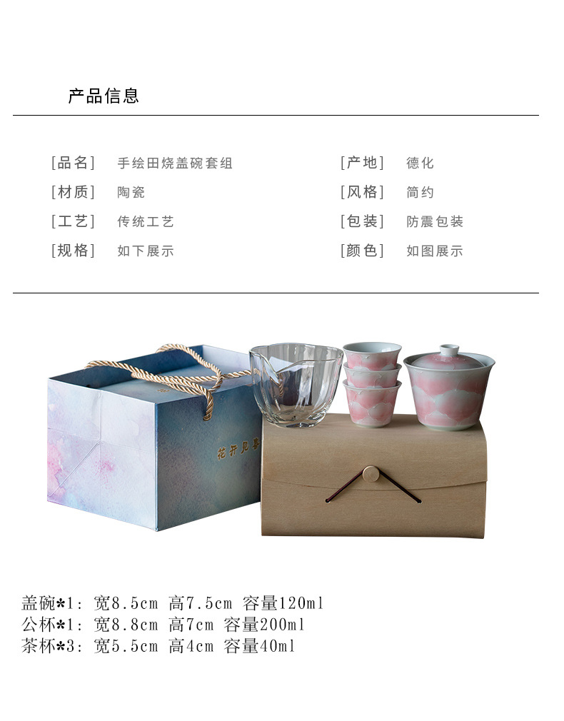 山鼎有田烧手绘粉彩旅行茶具套装一盖碗三杯小套组家用陶瓷伴手礼