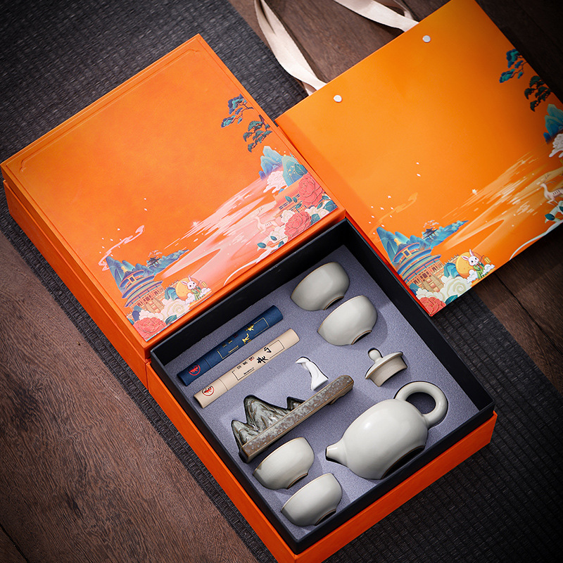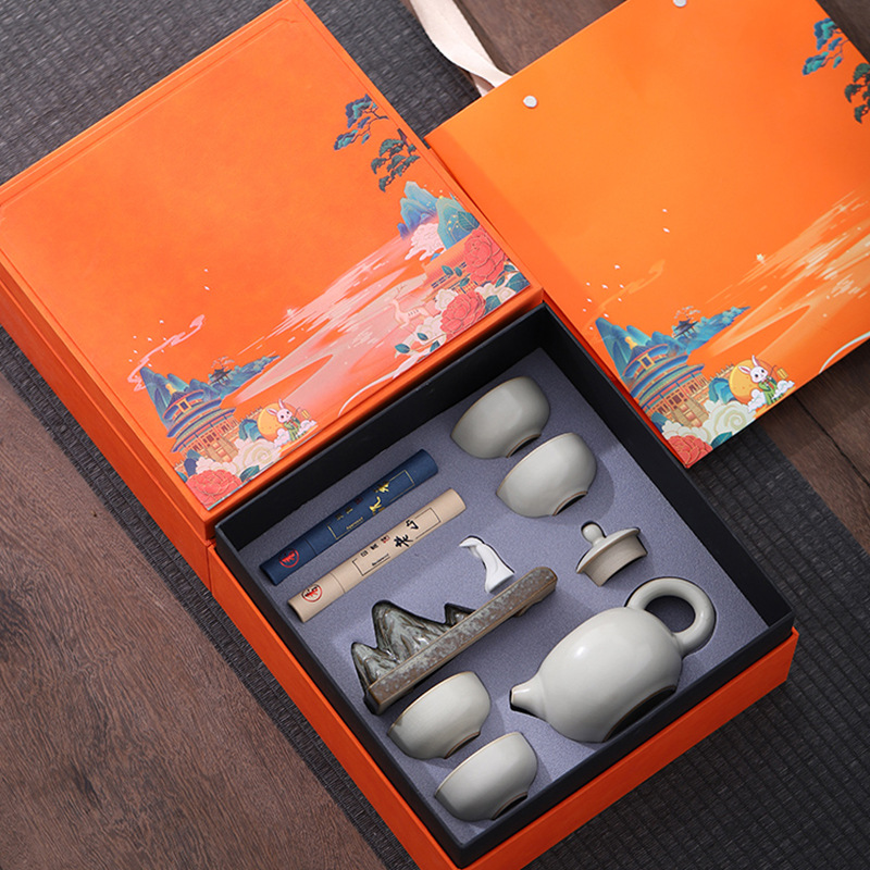 中秋节茶具套装商务伴手礼印制LOGO送客户公司活动礼品周年庆礼品