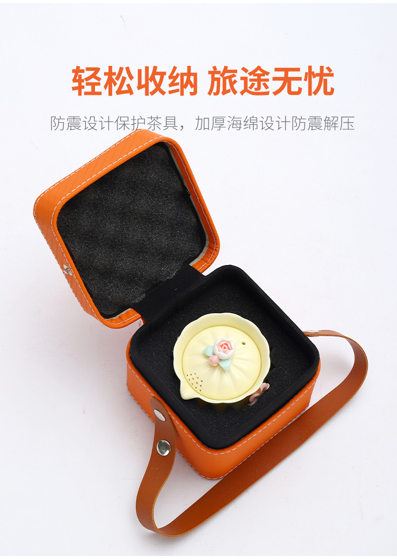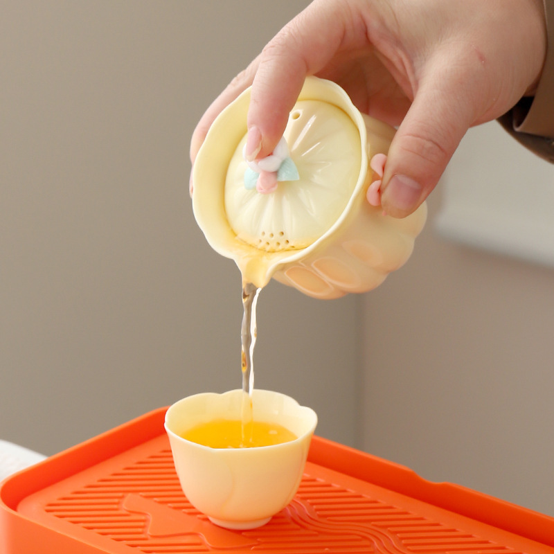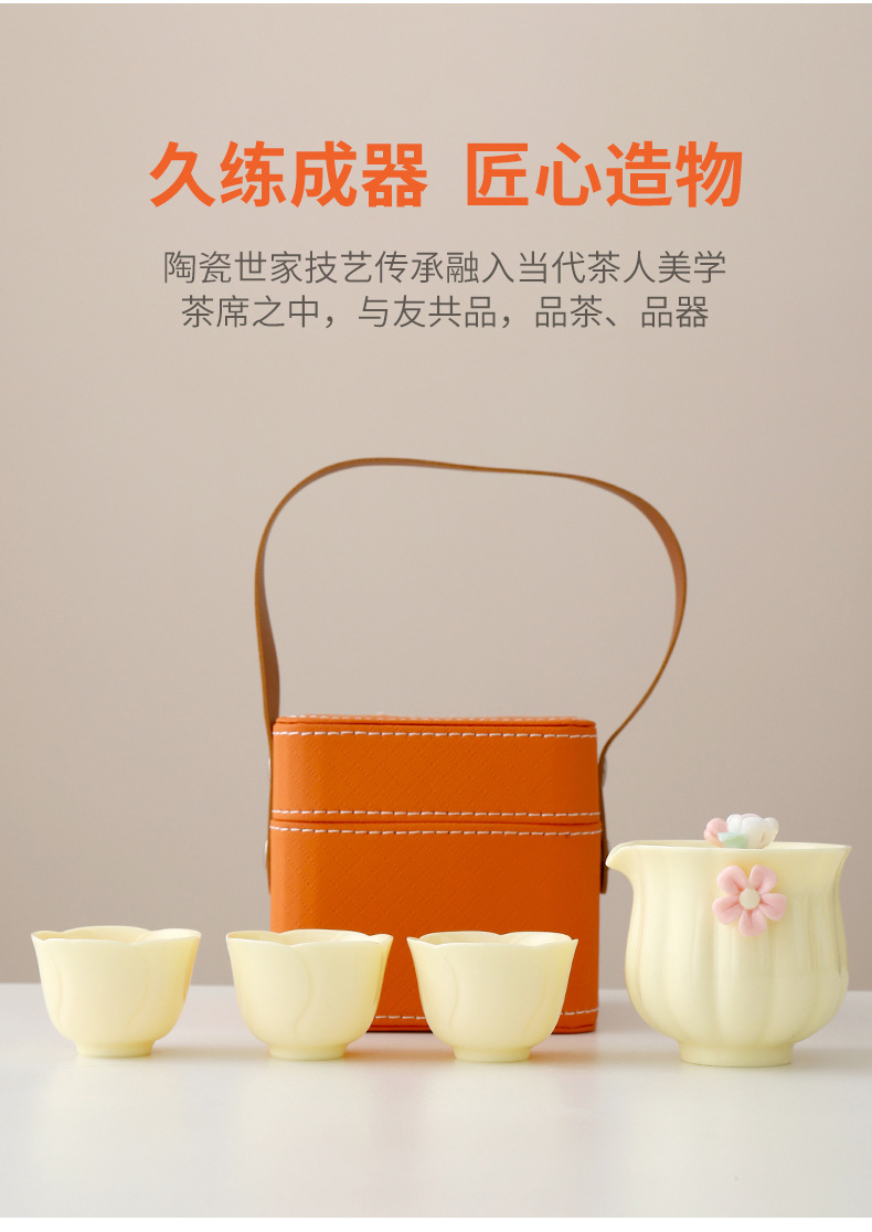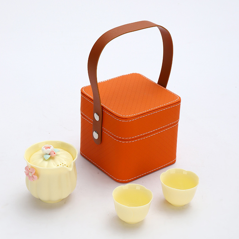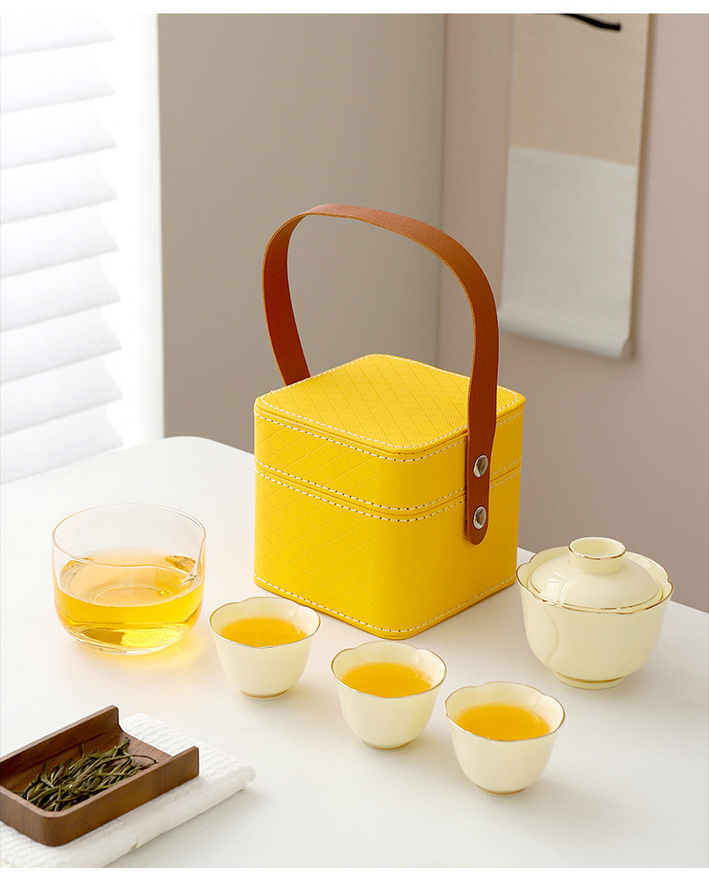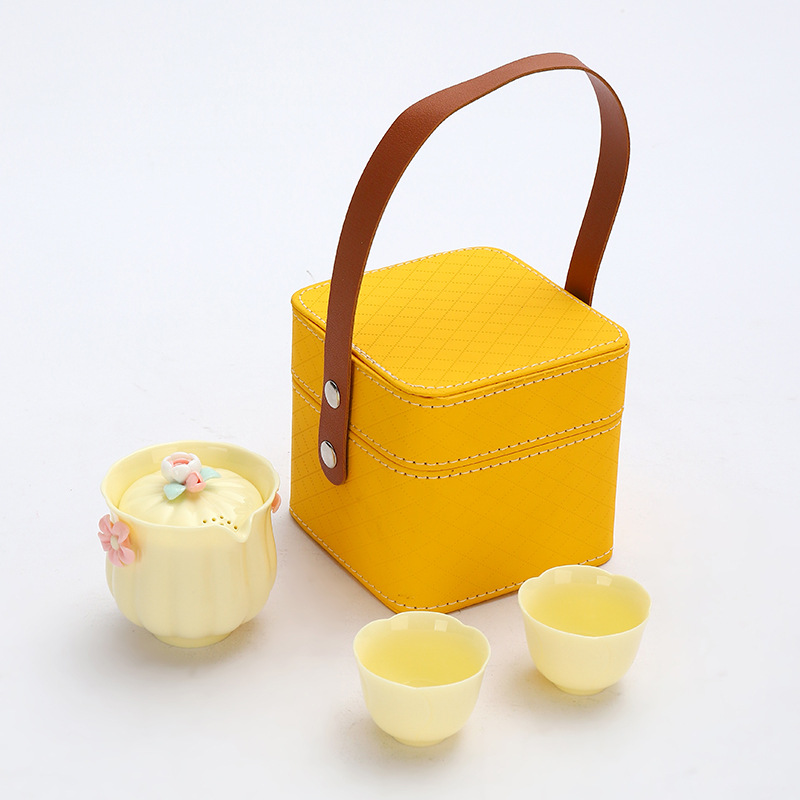 便携式户外收纳陶瓷快客杯宝石黄1壶4杯花语旅行小套装商务伴手礼