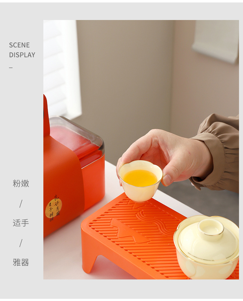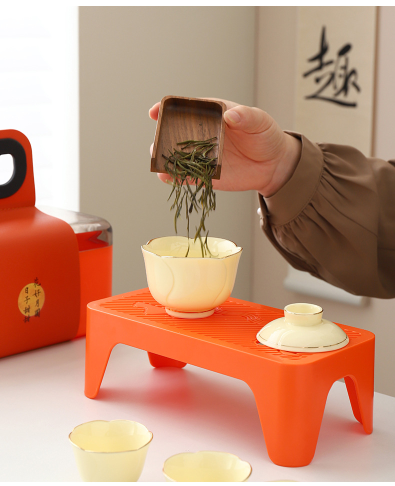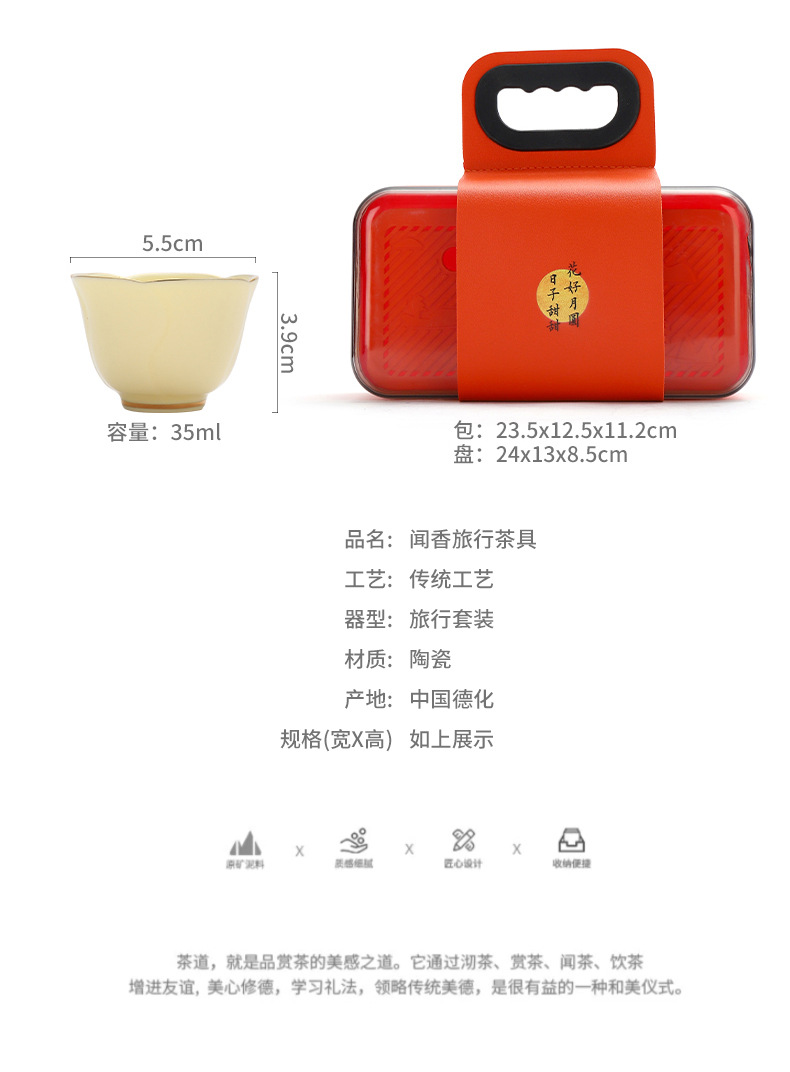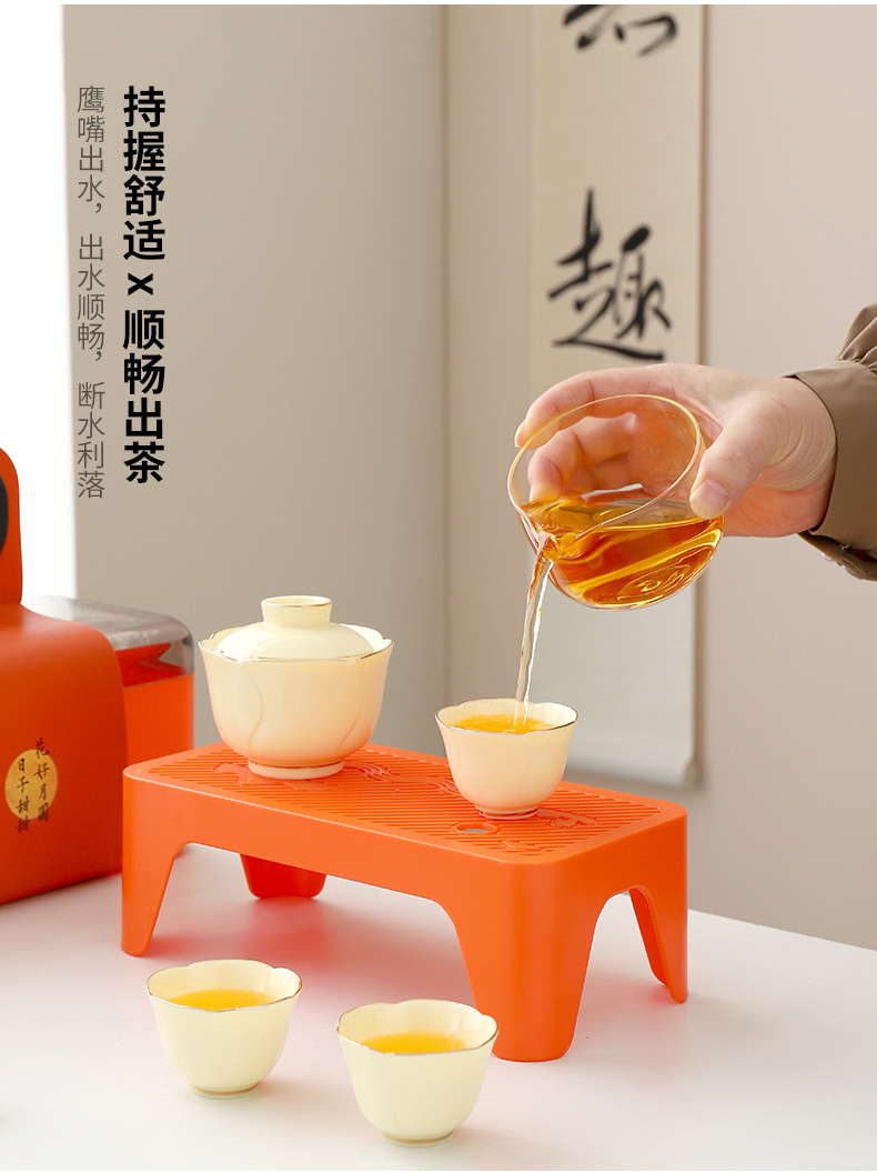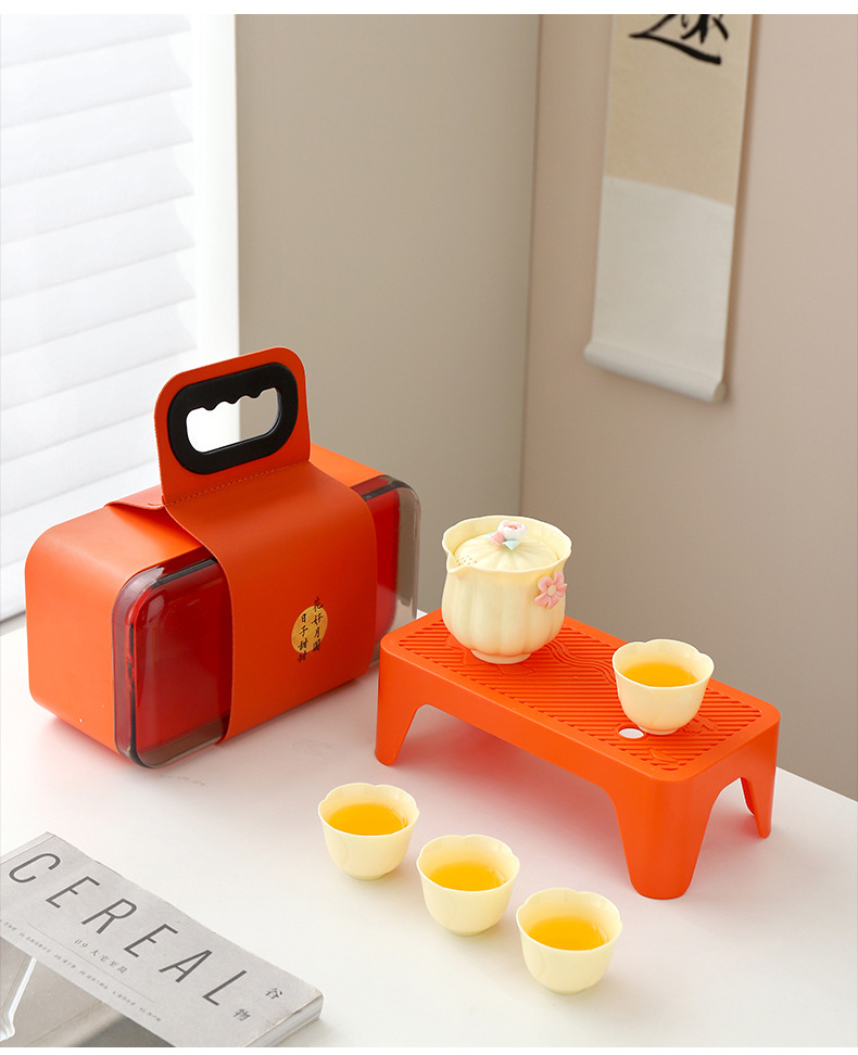 便携式户外收纳陶瓷快客杯宝石黄1壶4杯花语旅行小套装商务伴手礼