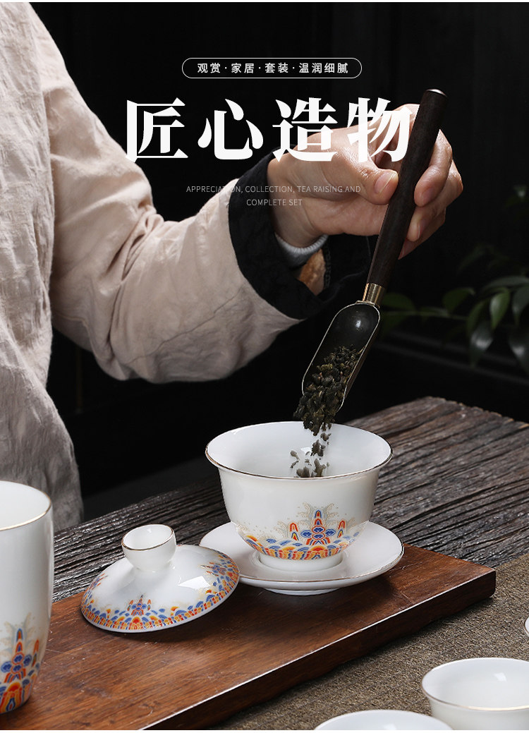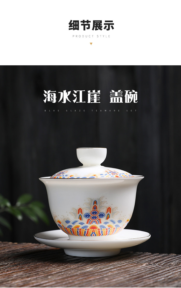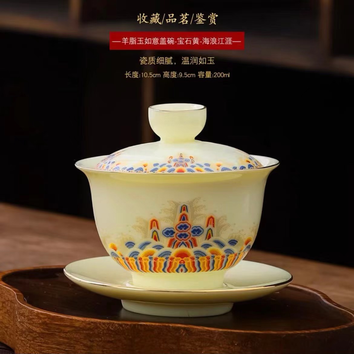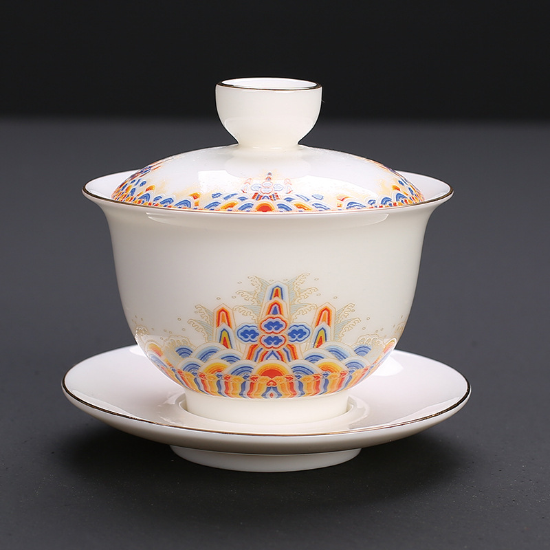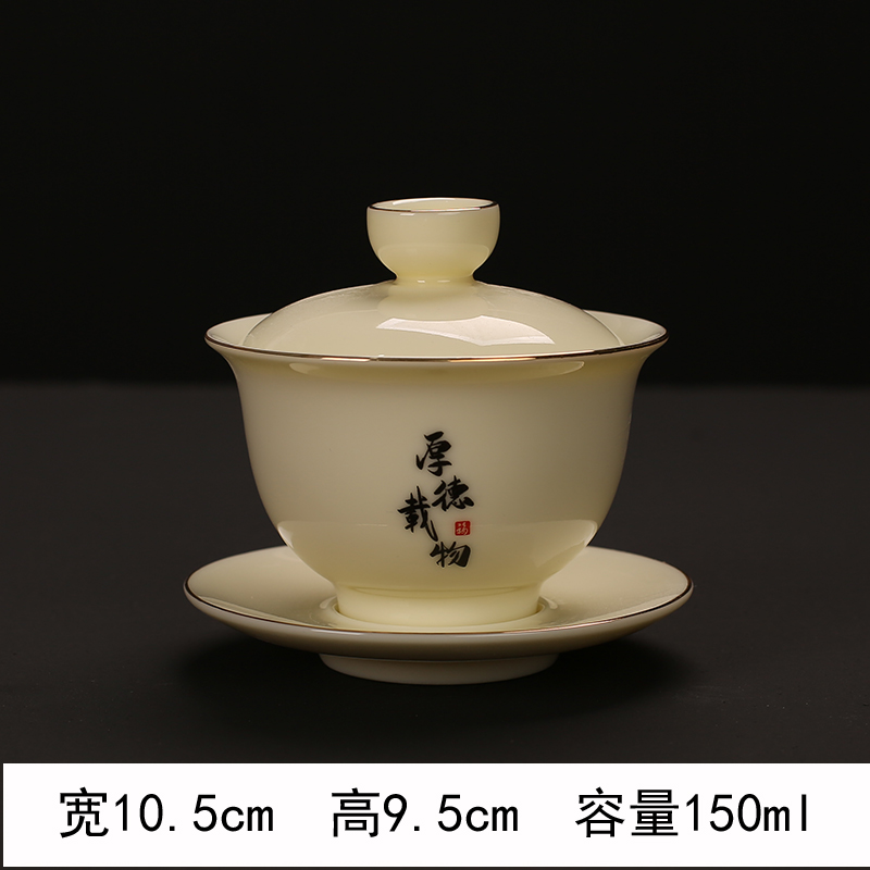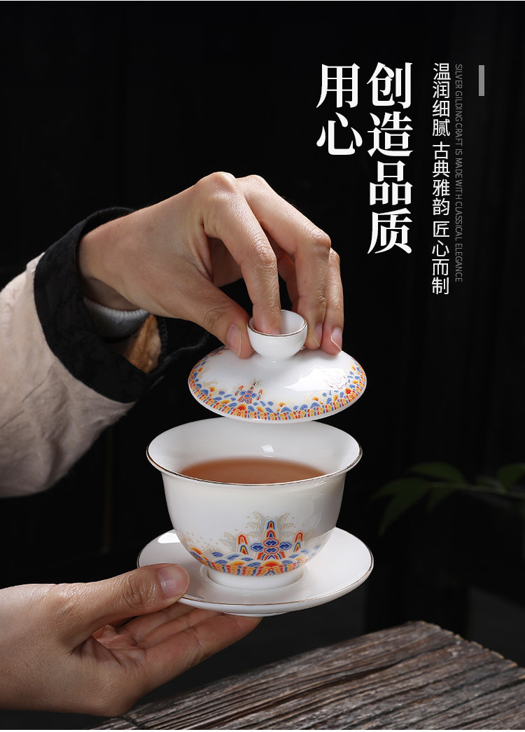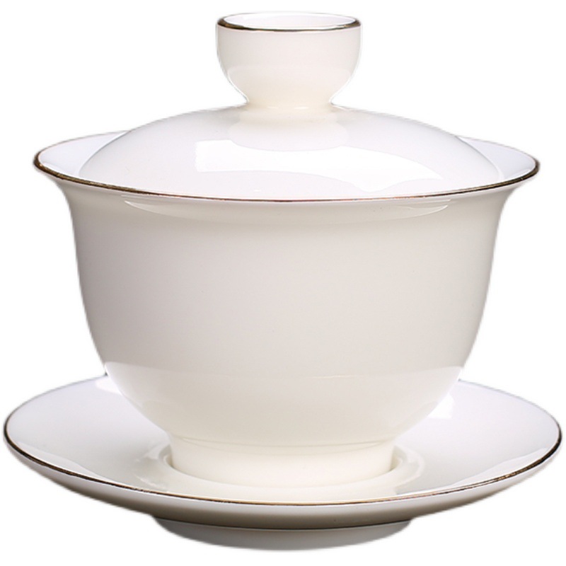 高档羊脂玉三才盖碗白瓷单个茶杯家用陶瓷茶碗功夫茶具家用泡茶器