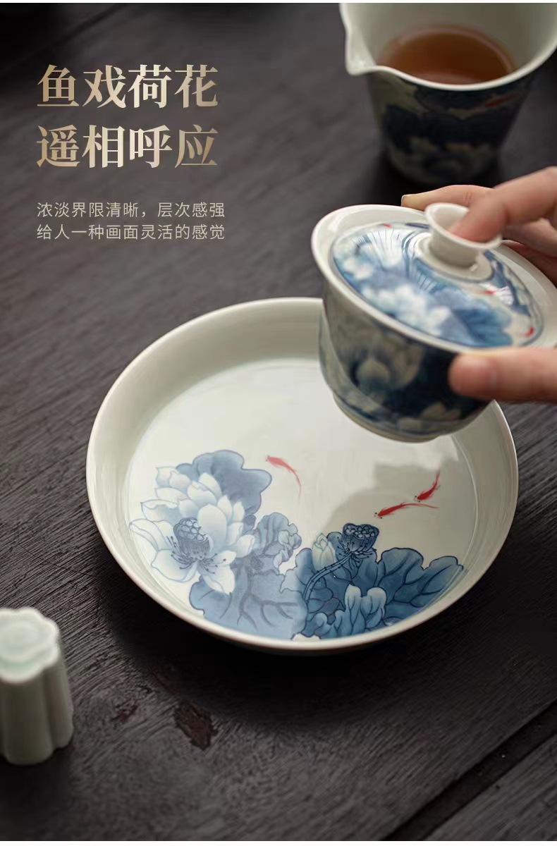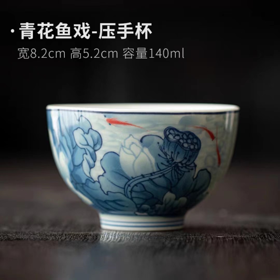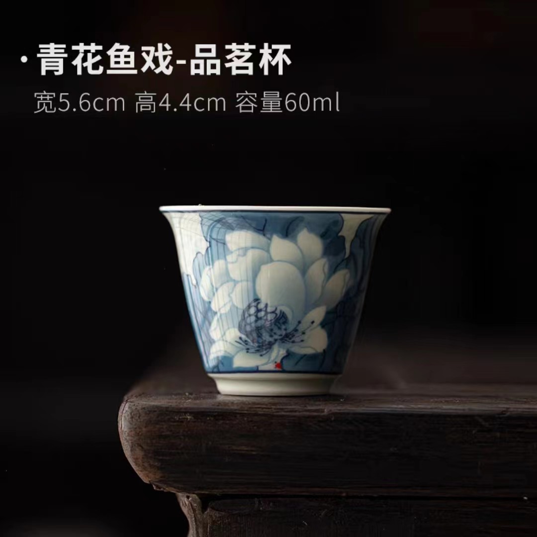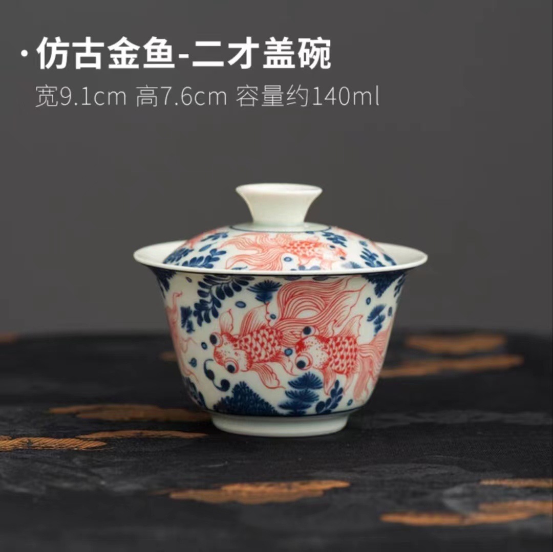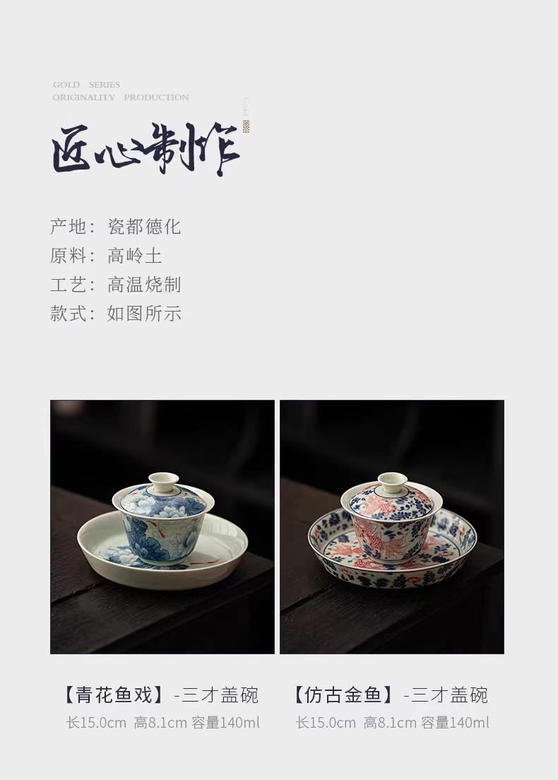 复古青花陶瓷三才盖碗釉下彩可悬停泡茶碗单个茶杯高档功夫茶具