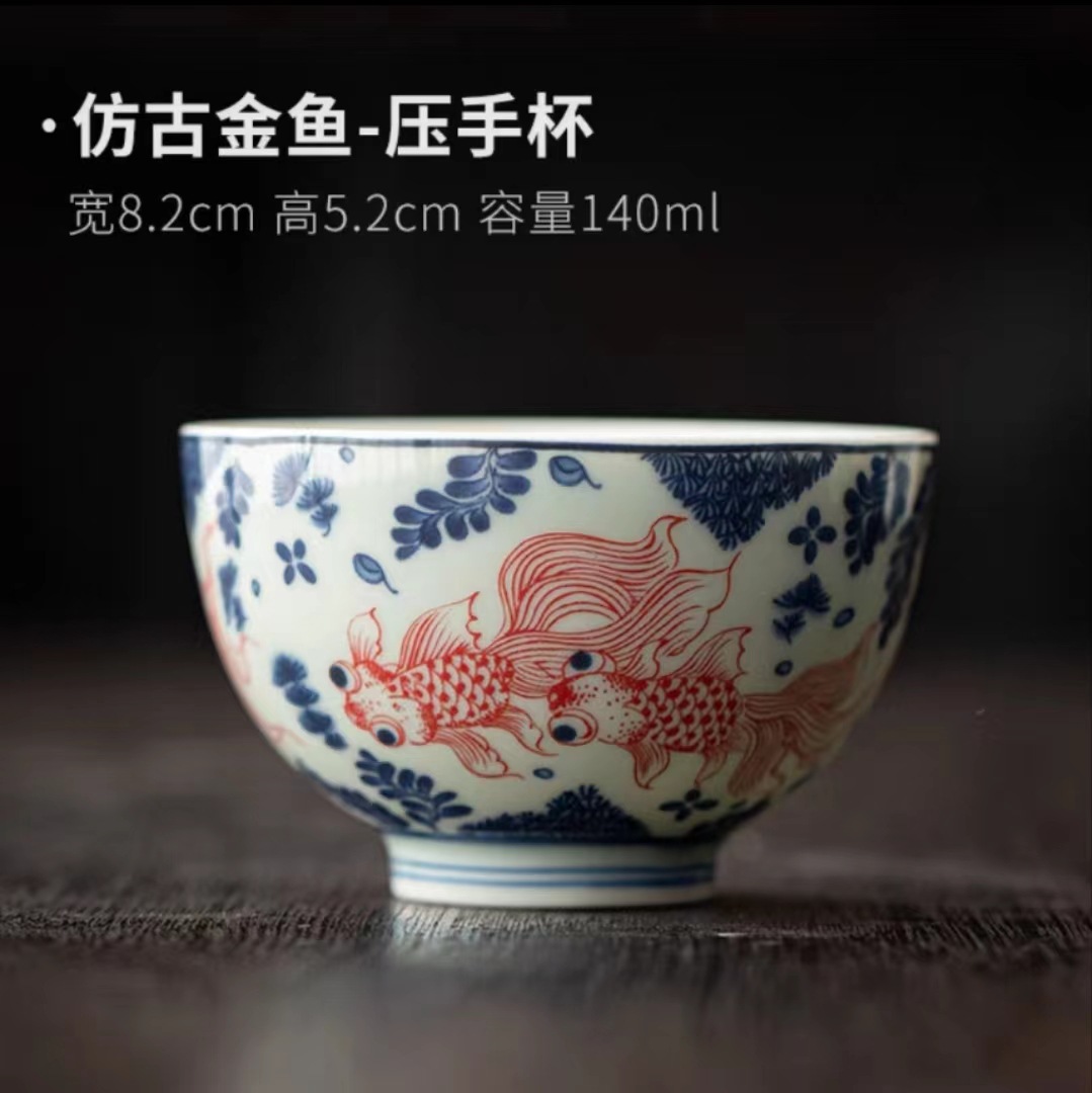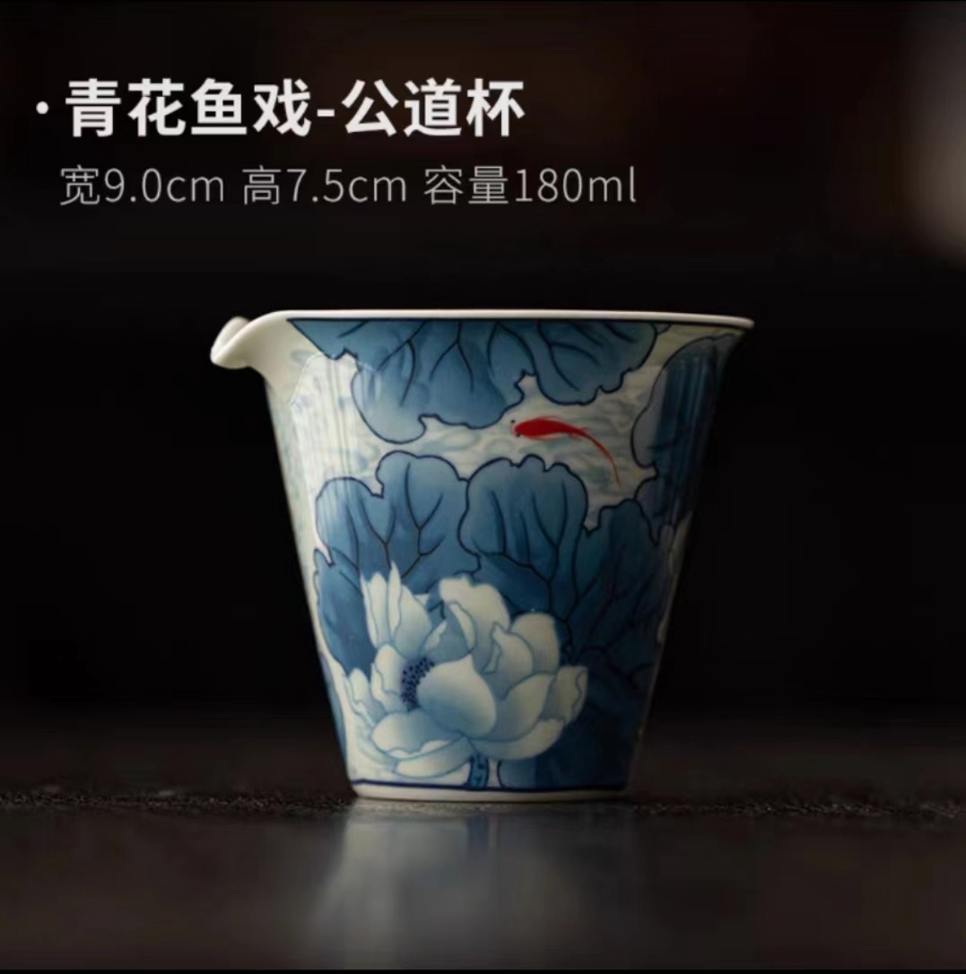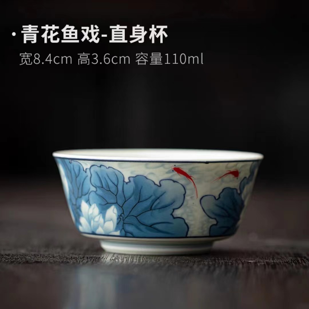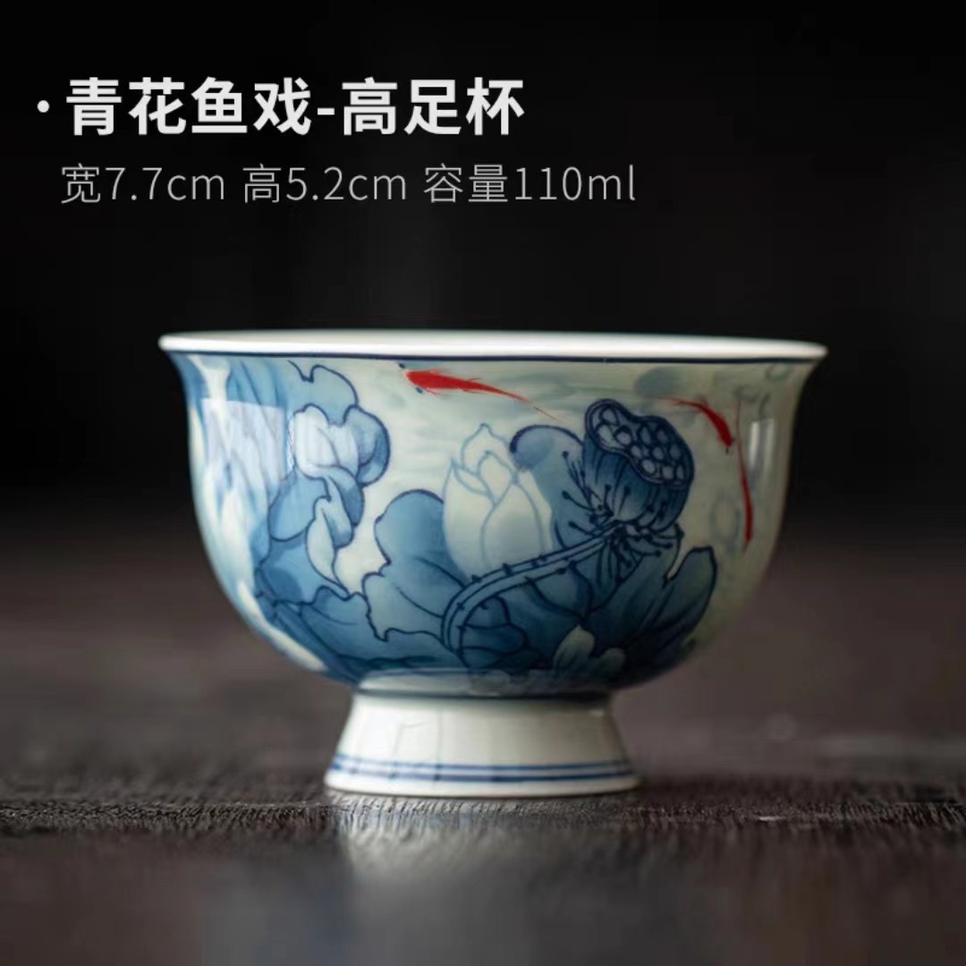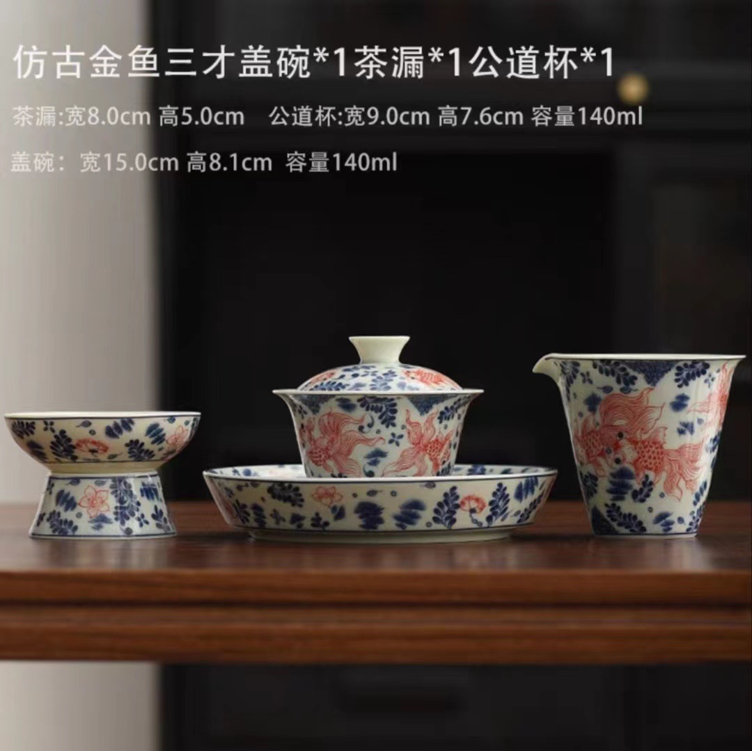 复古青花陶瓷三才盖碗釉下彩可悬停泡茶碗单个茶杯高档功夫茶具