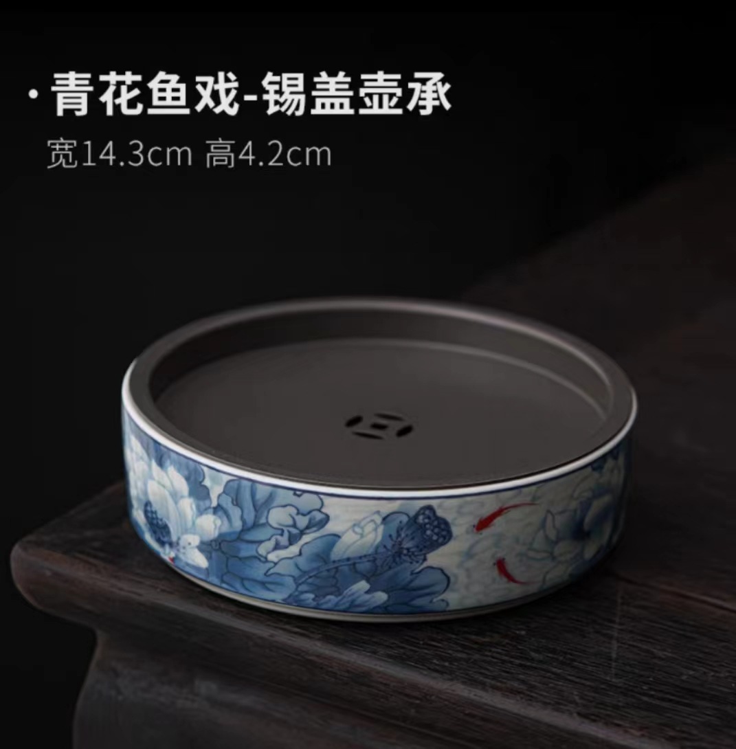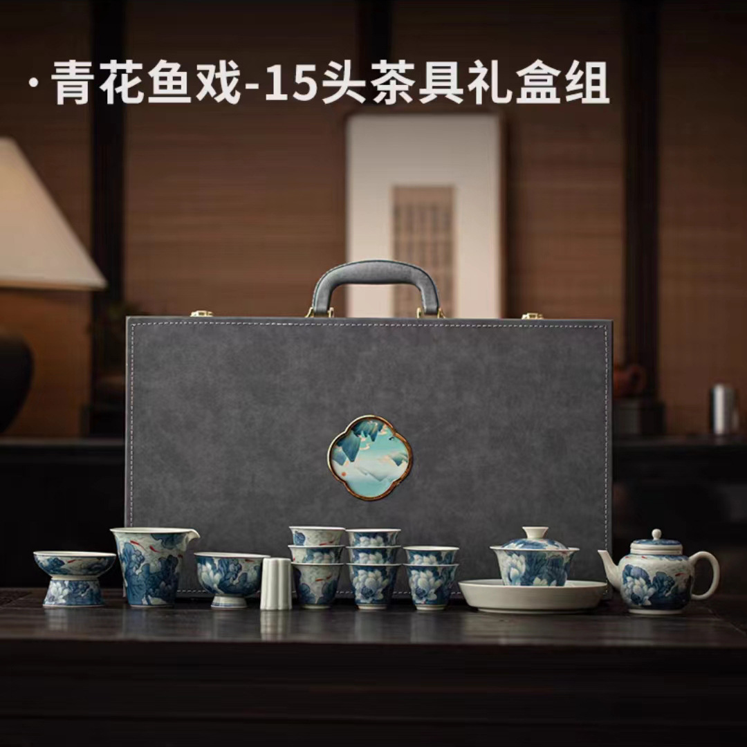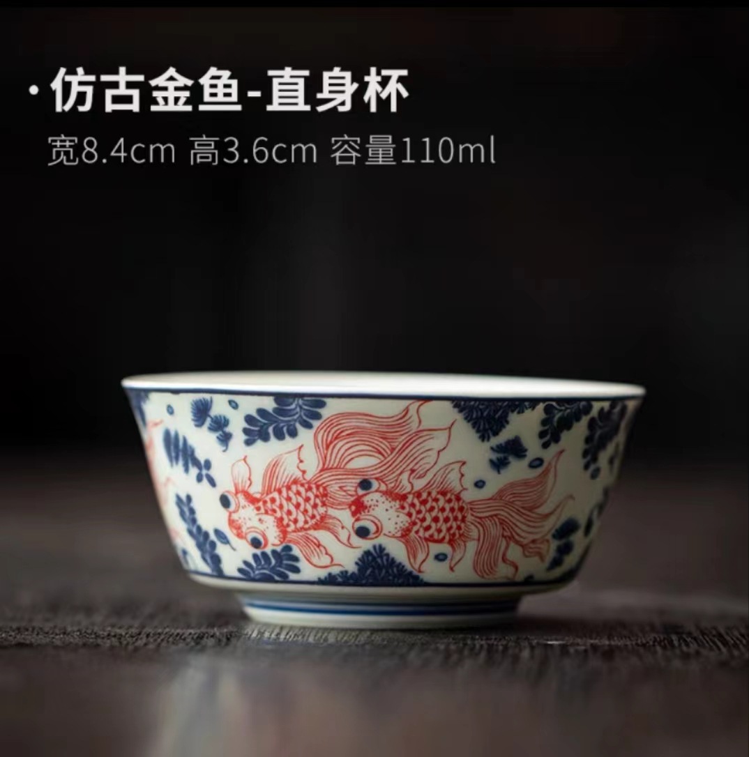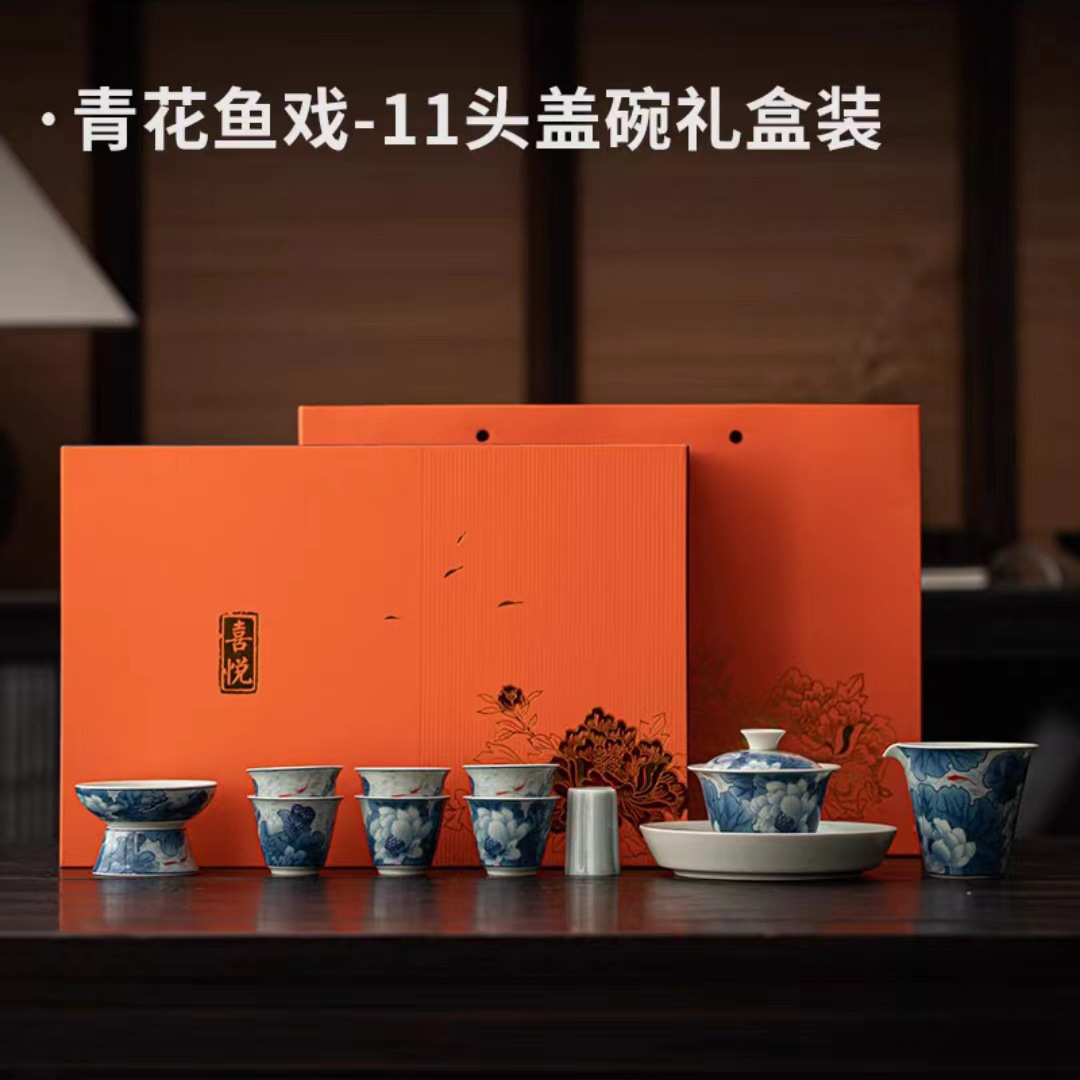 复古青花陶瓷三才盖碗釉下彩可悬停泡茶碗单个茶杯高档功夫茶具