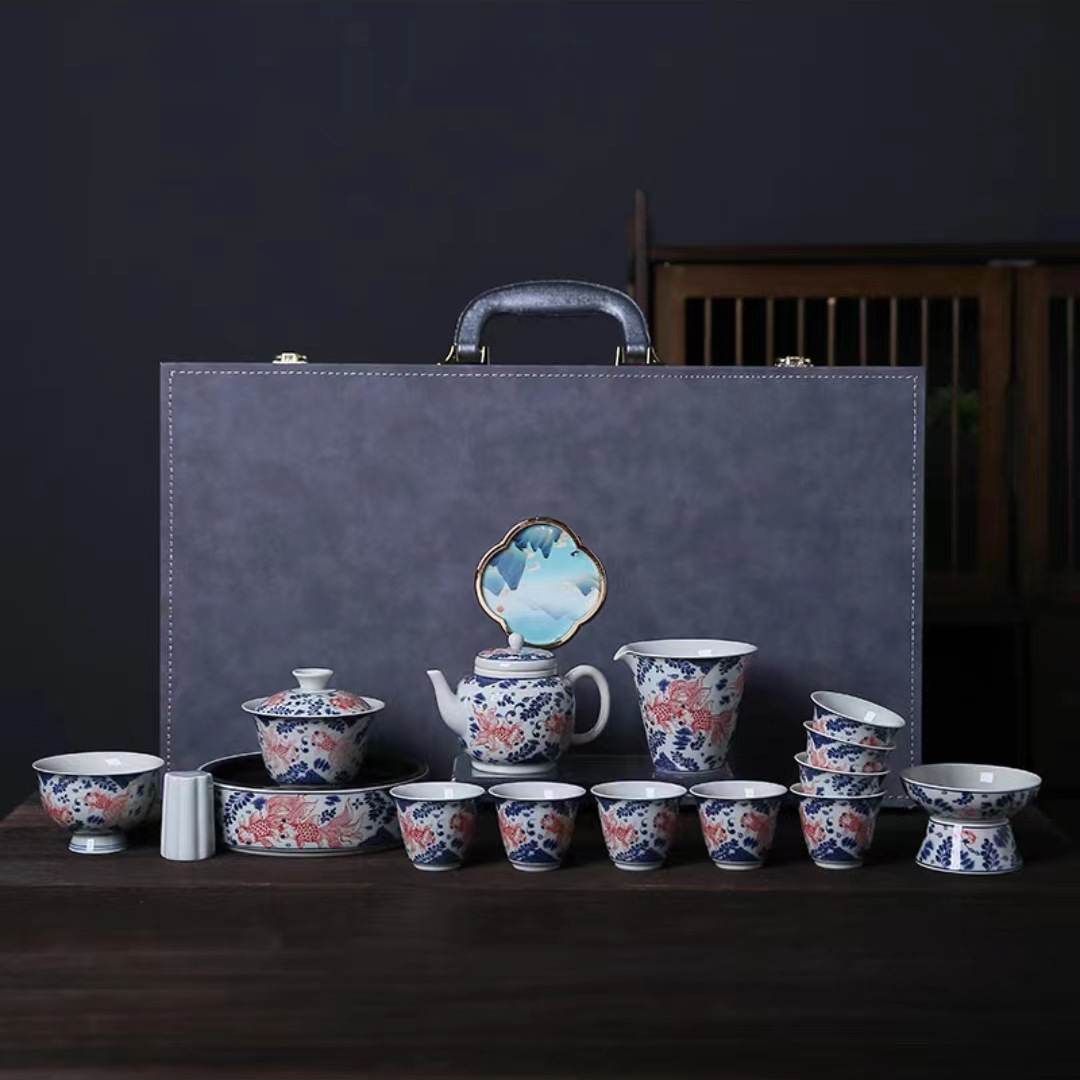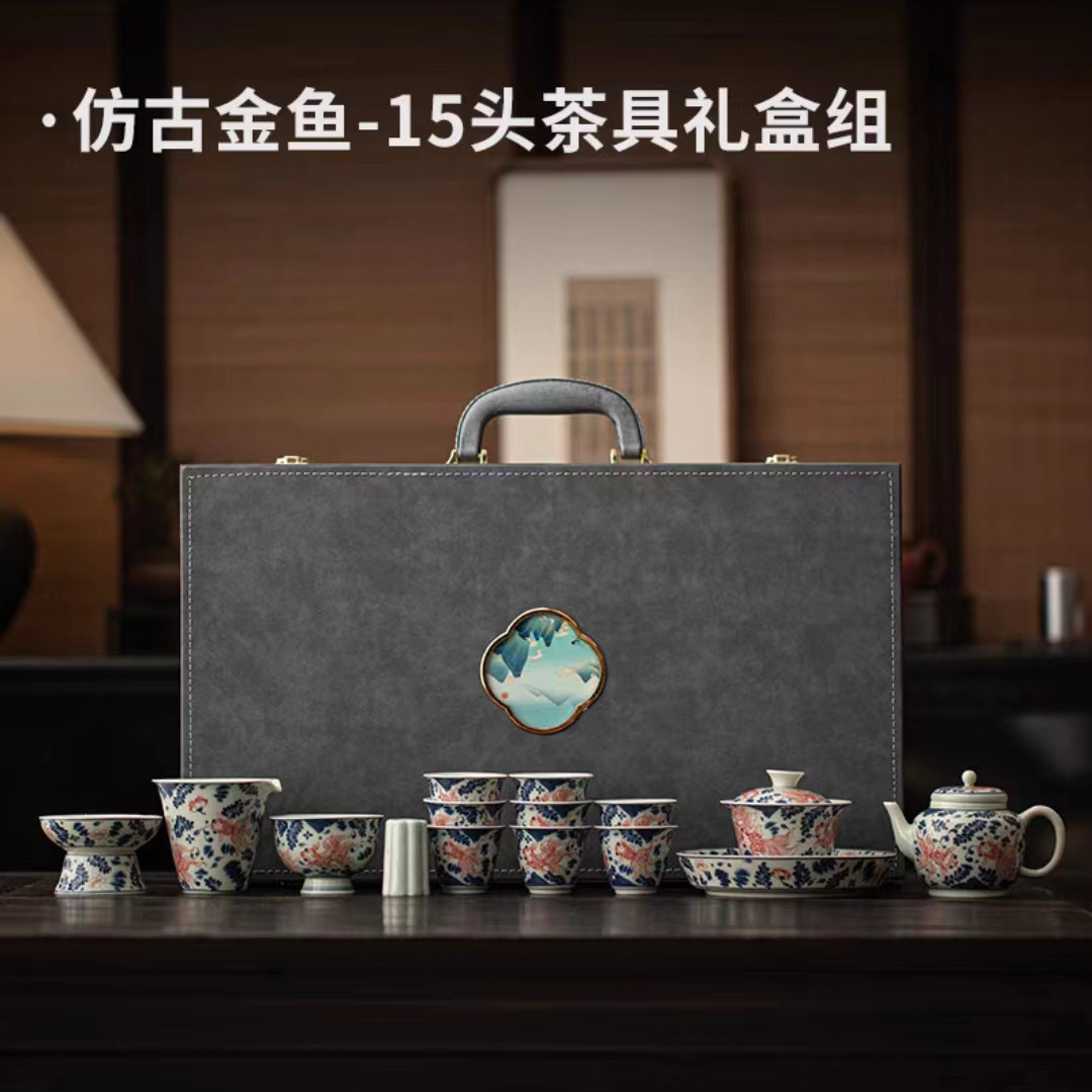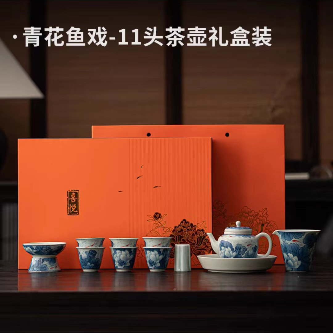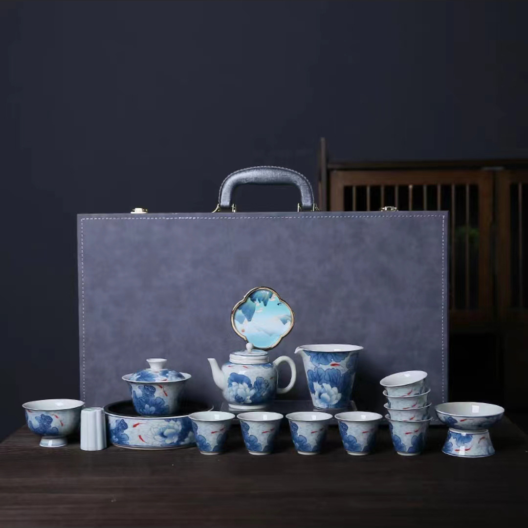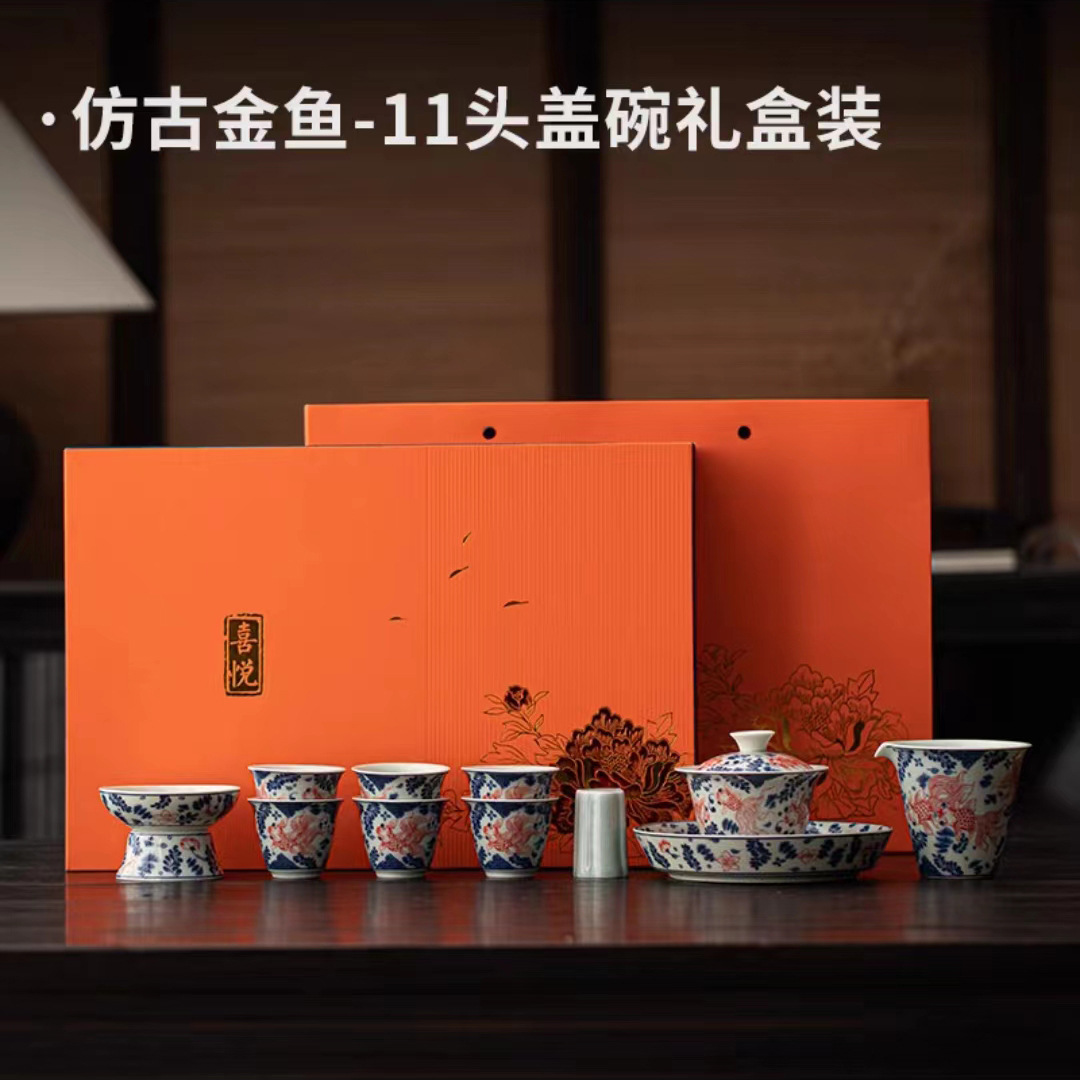 复古青花陶瓷三才盖碗釉下彩可悬停泡茶碗单个茶杯高档功夫茶具