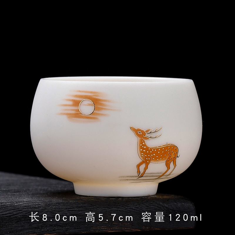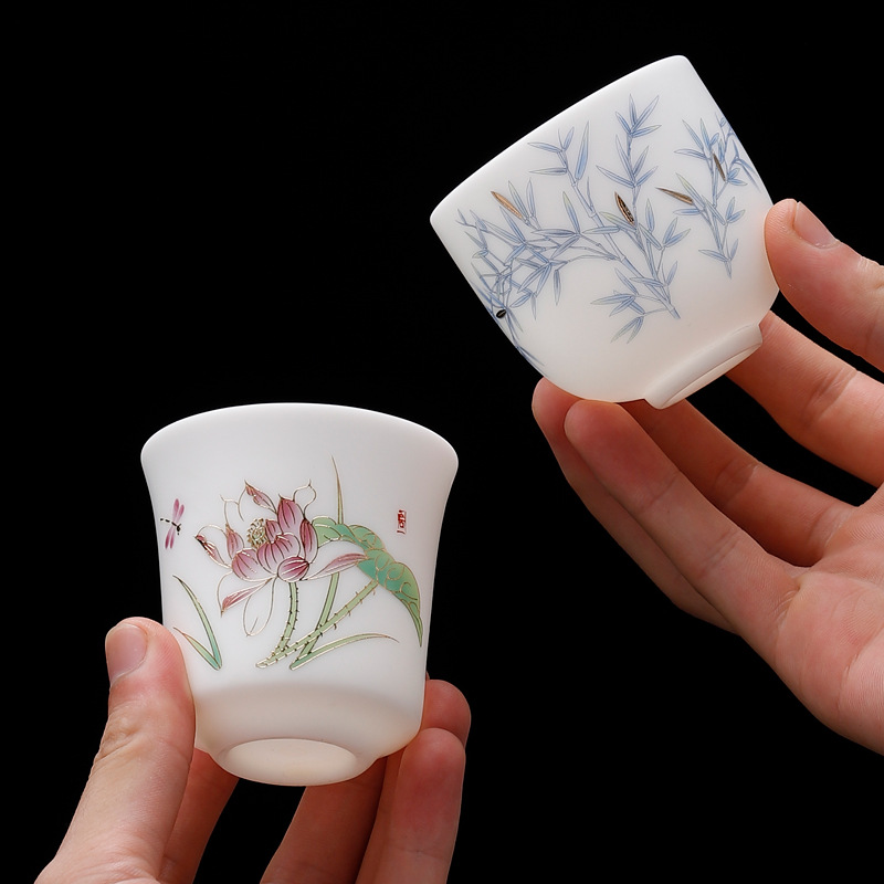 素烧羊脂玉白瓷主人杯陶瓷单杯品茗杯套装家用个人杯办公茶杯批发