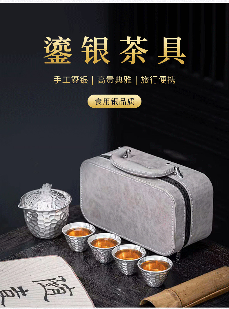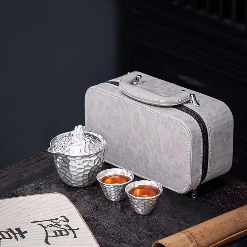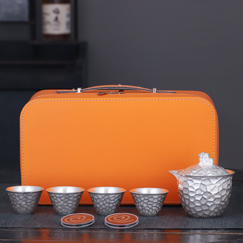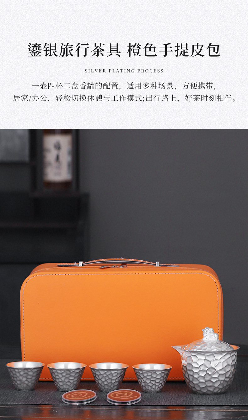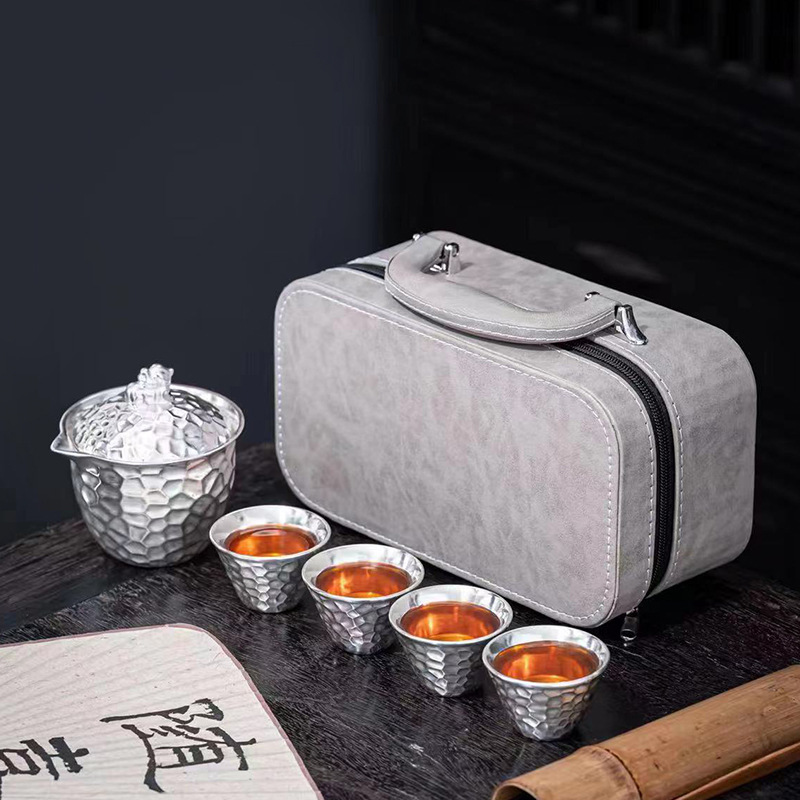 纯鎏银旅行茶具套装便携一壶四杯镀银壶杯高档商务公司礼品定 制