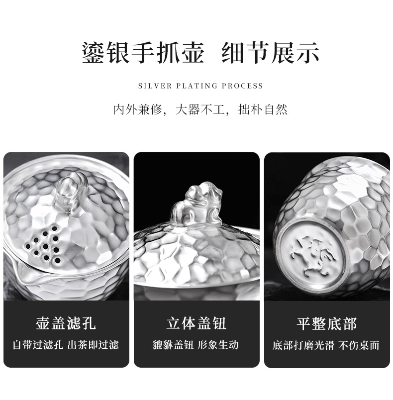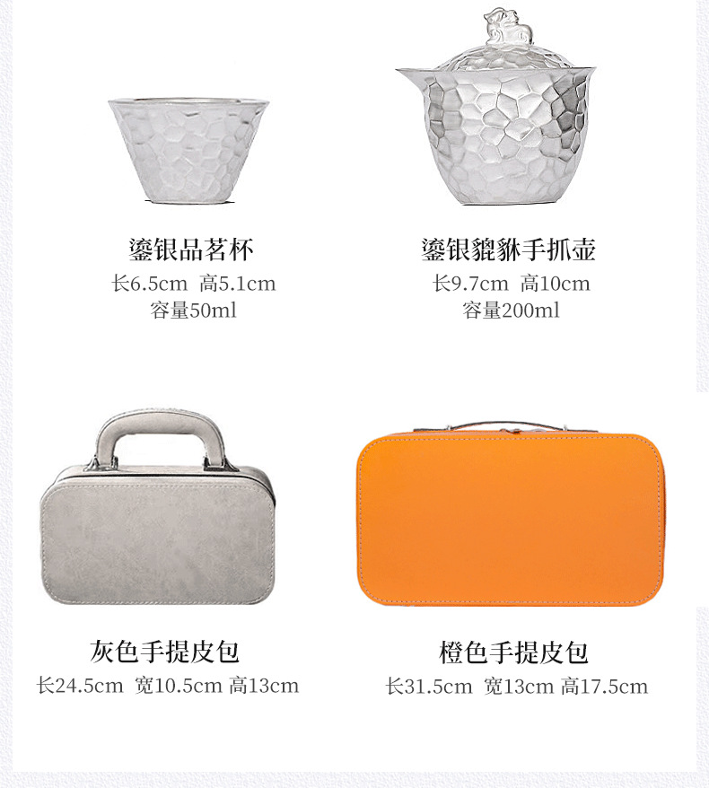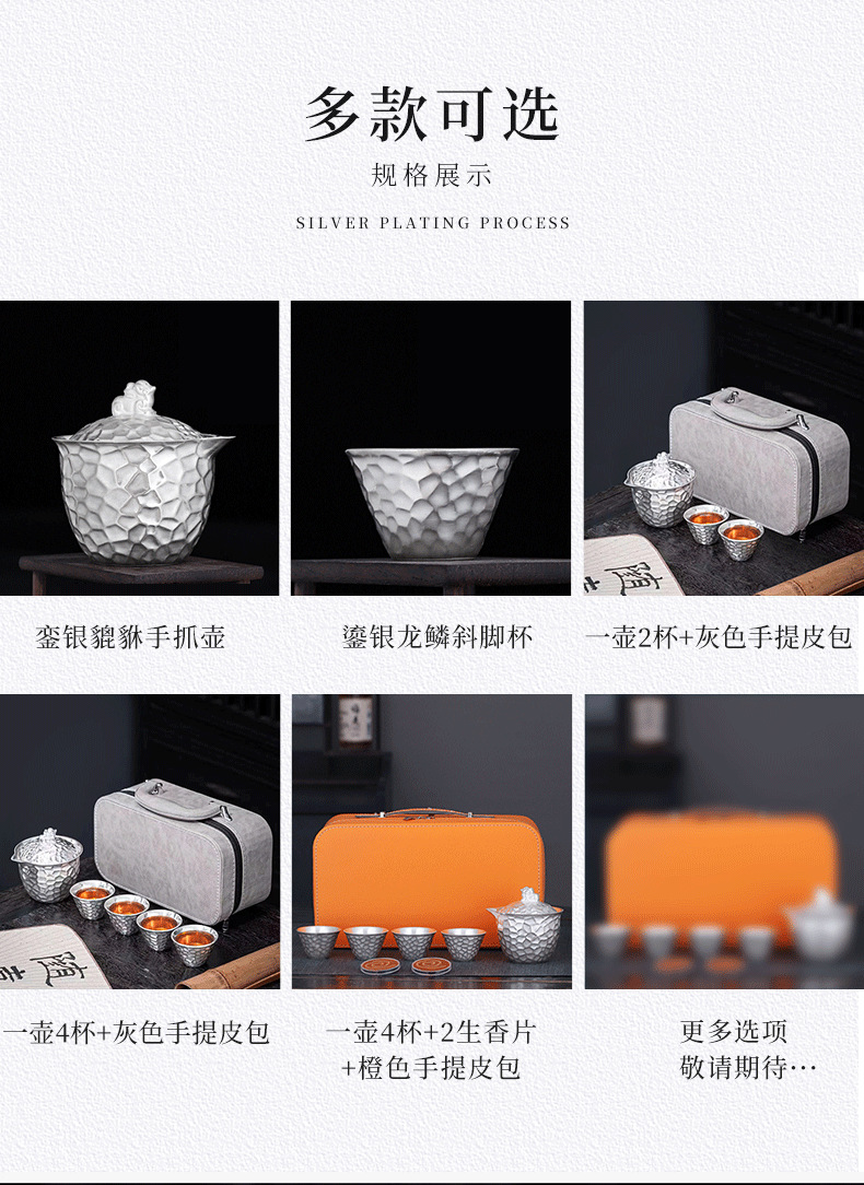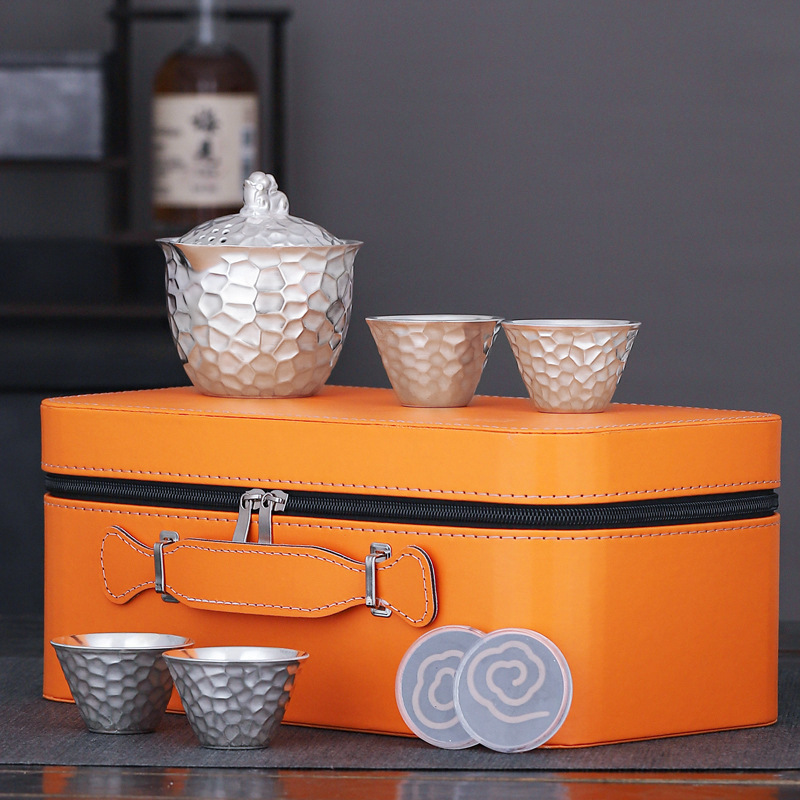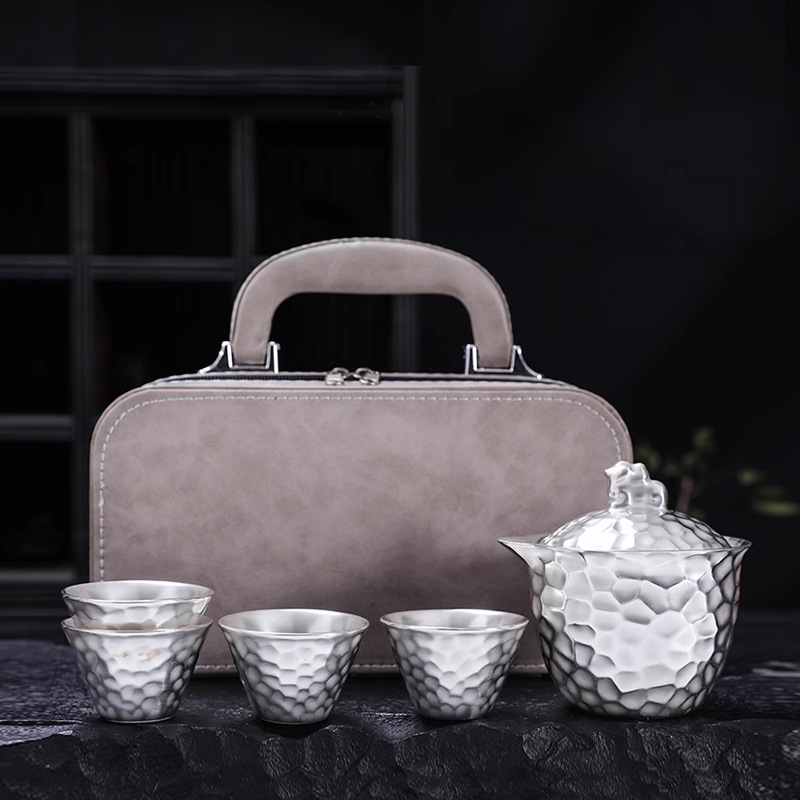 纯鎏银旅行茶具套装便携一壶四杯镀银壶杯高档商务公司礼品定 制