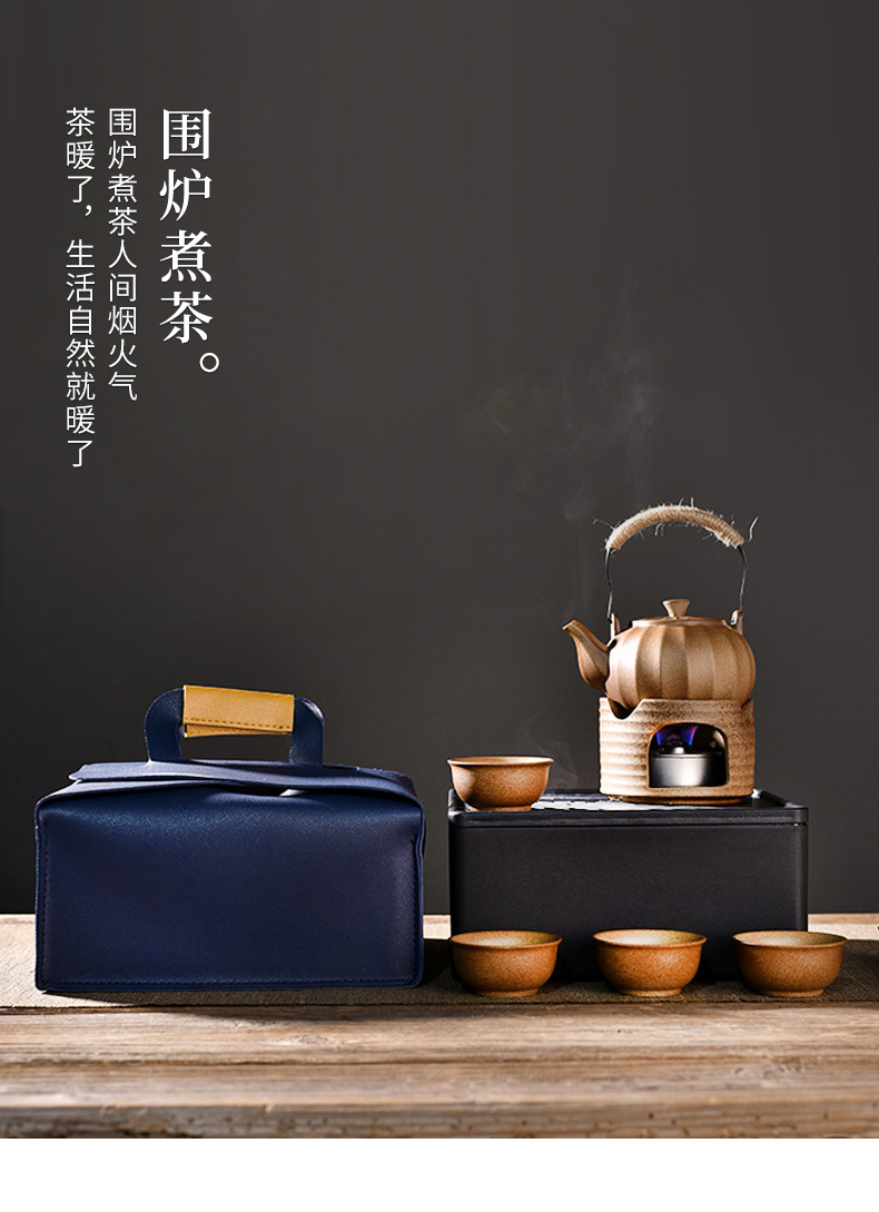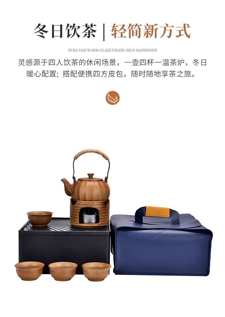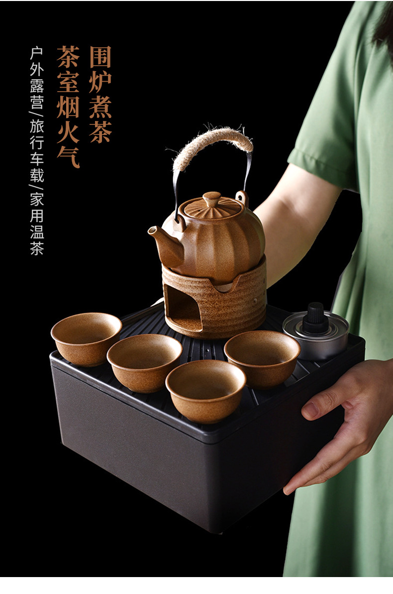 柴烧旅行茶具套装户外露营围炉煮茶便携式带提梁商务礼品定 logo