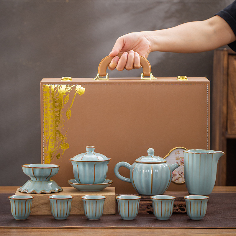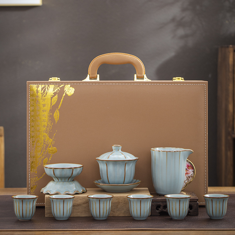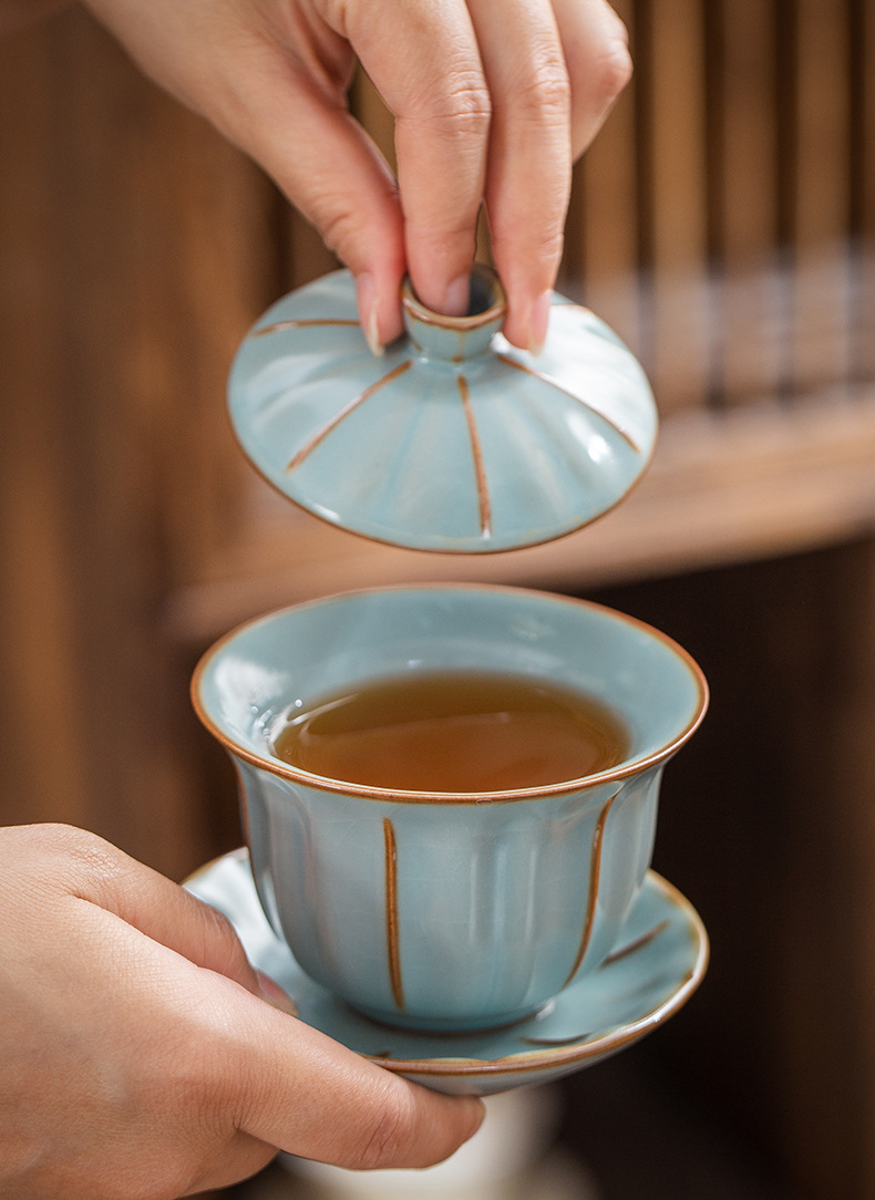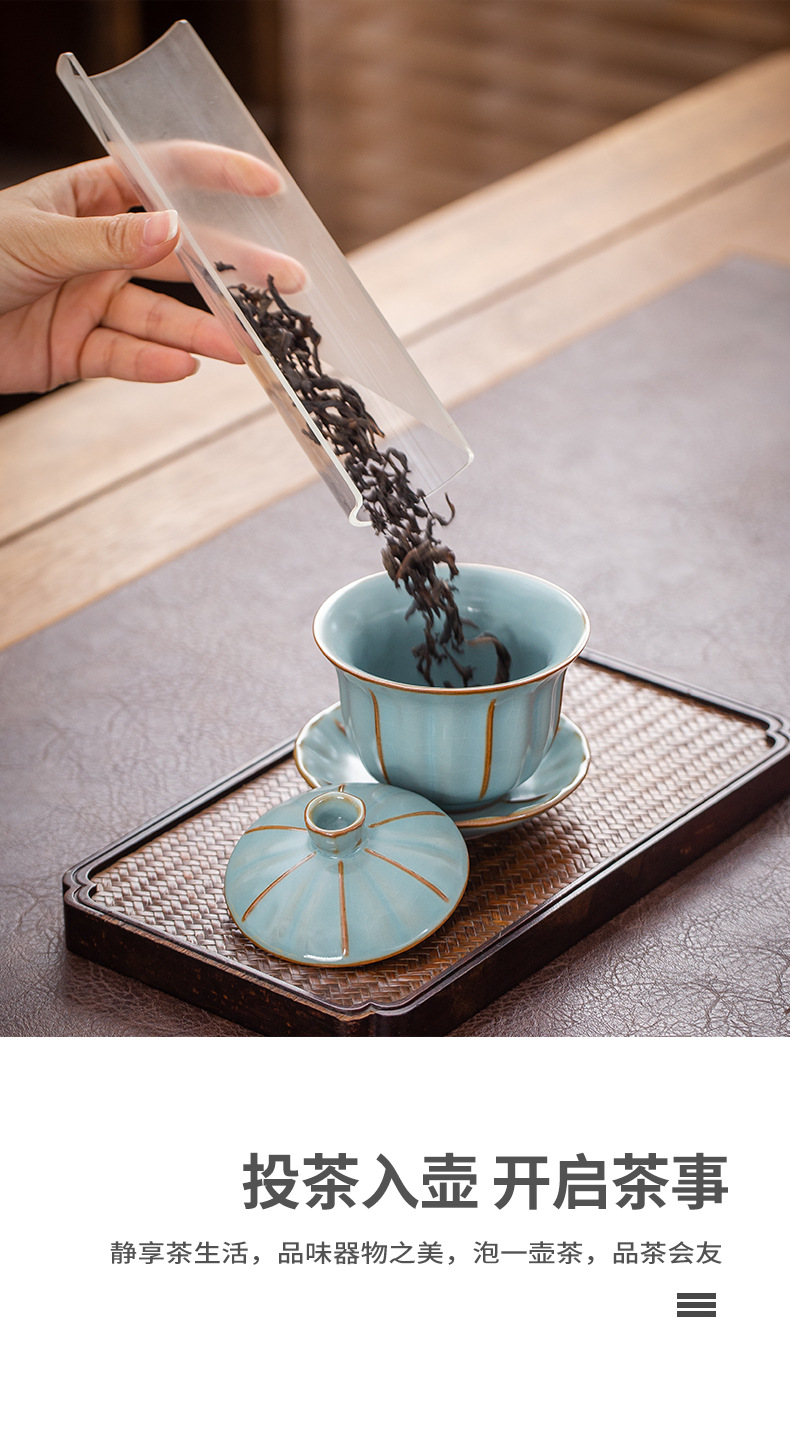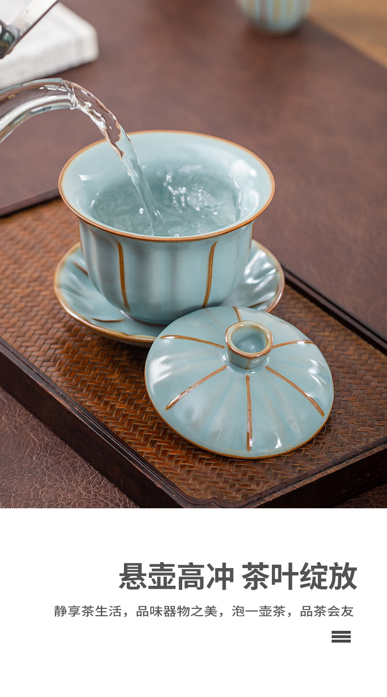 轻奢汝窑茶具匠心手作黄汝天青开片可养三才盖碗礼品陶瓷茶具套装