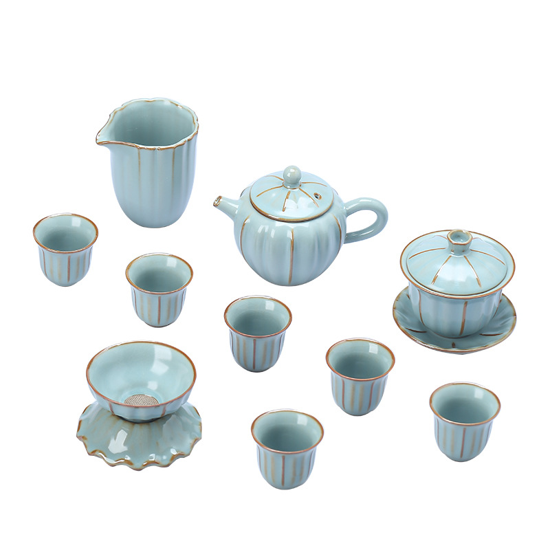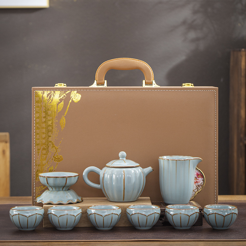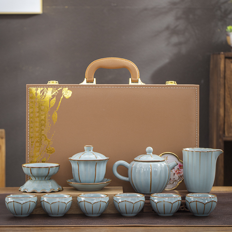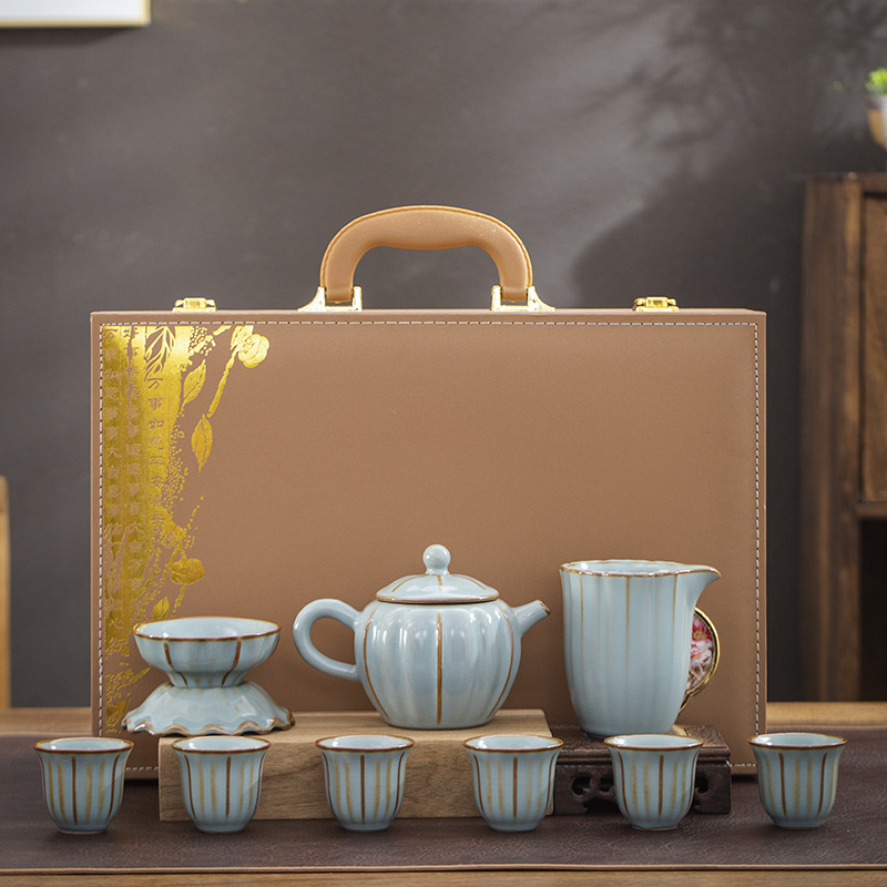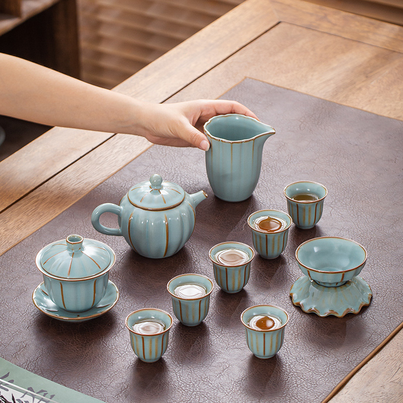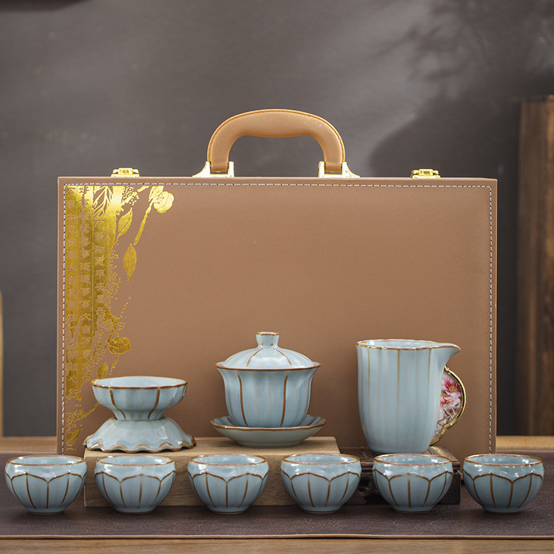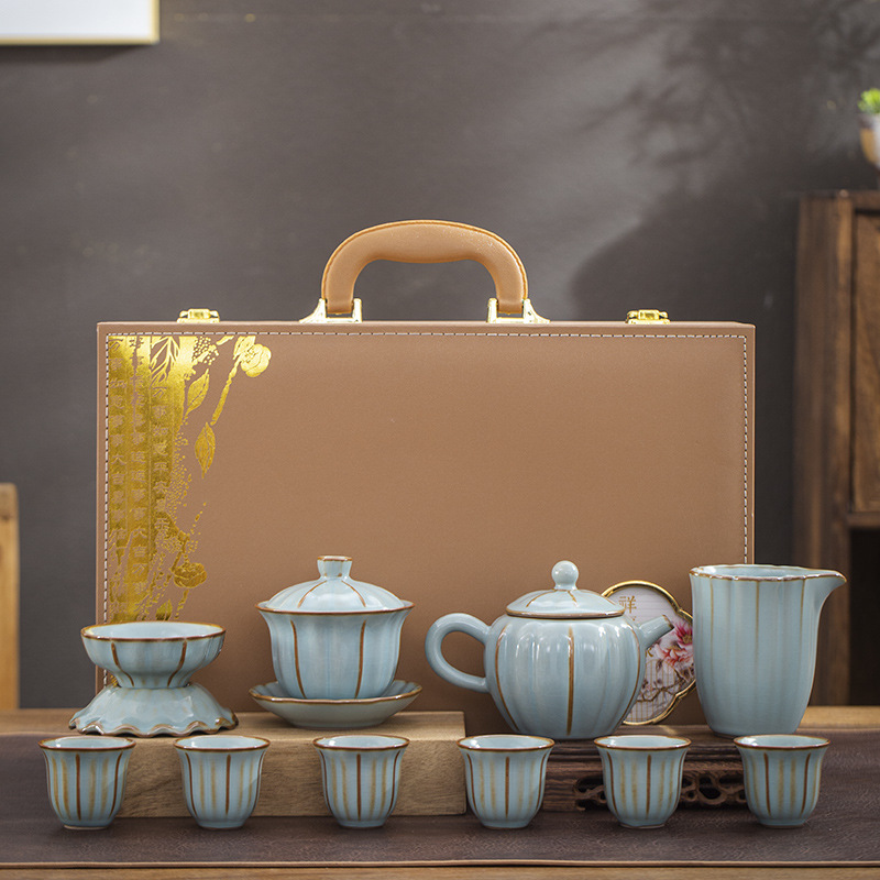 轻奢汝窑茶具匠心手作黄汝天青开片可养三才盖碗礼品陶瓷茶具套装
