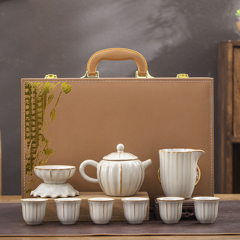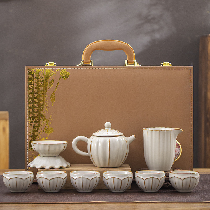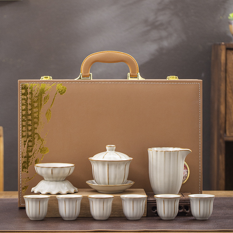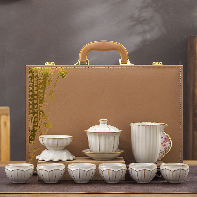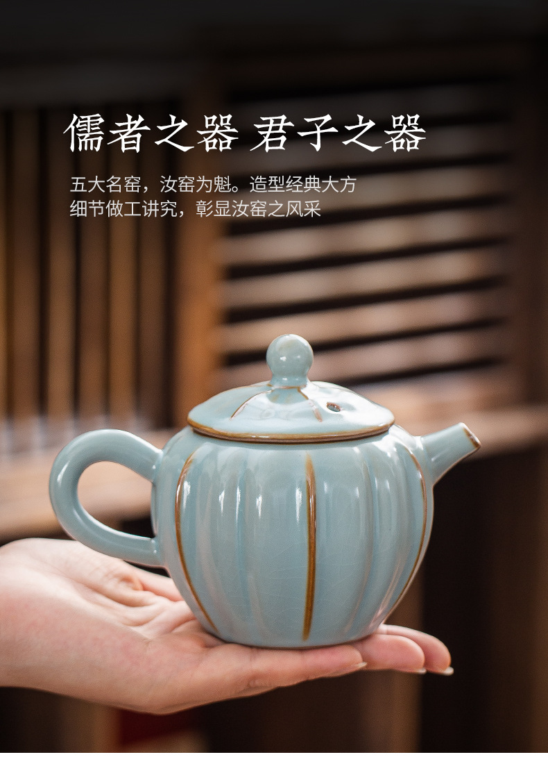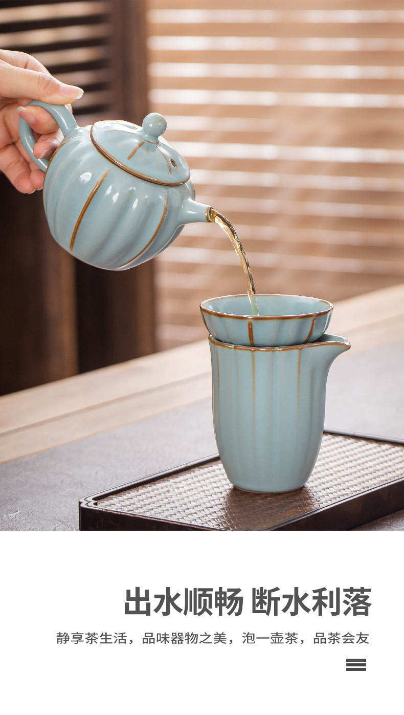 轻奢汝窑茶具匠心手作黄汝天青开片可养三才盖碗礼品陶瓷茶具套装