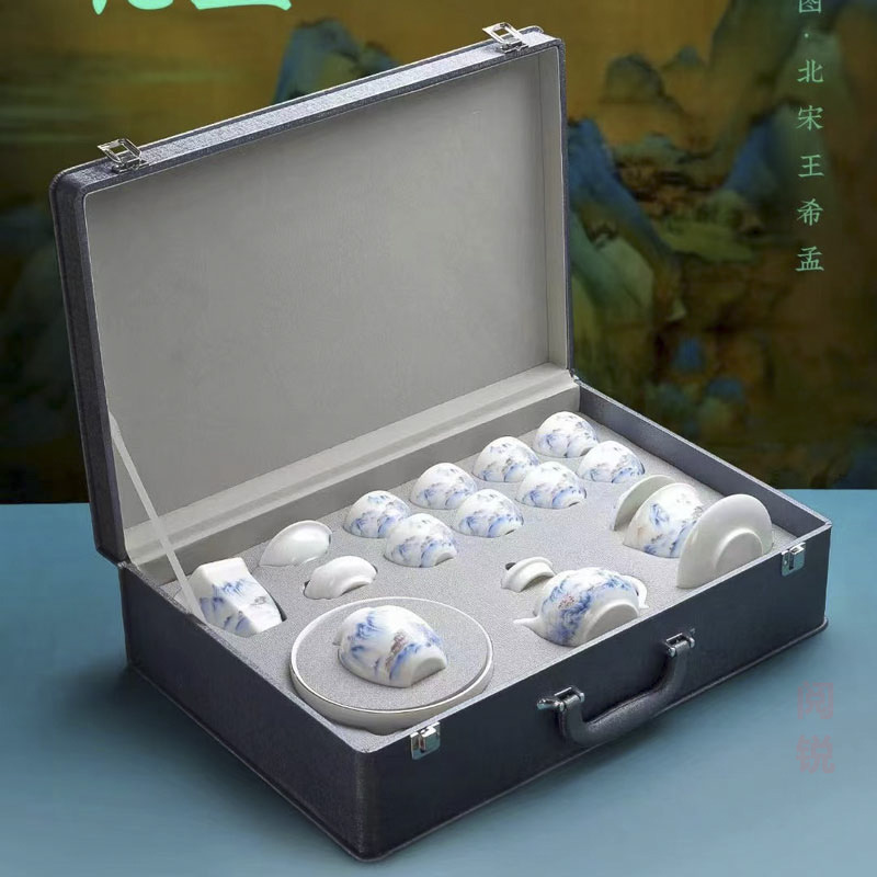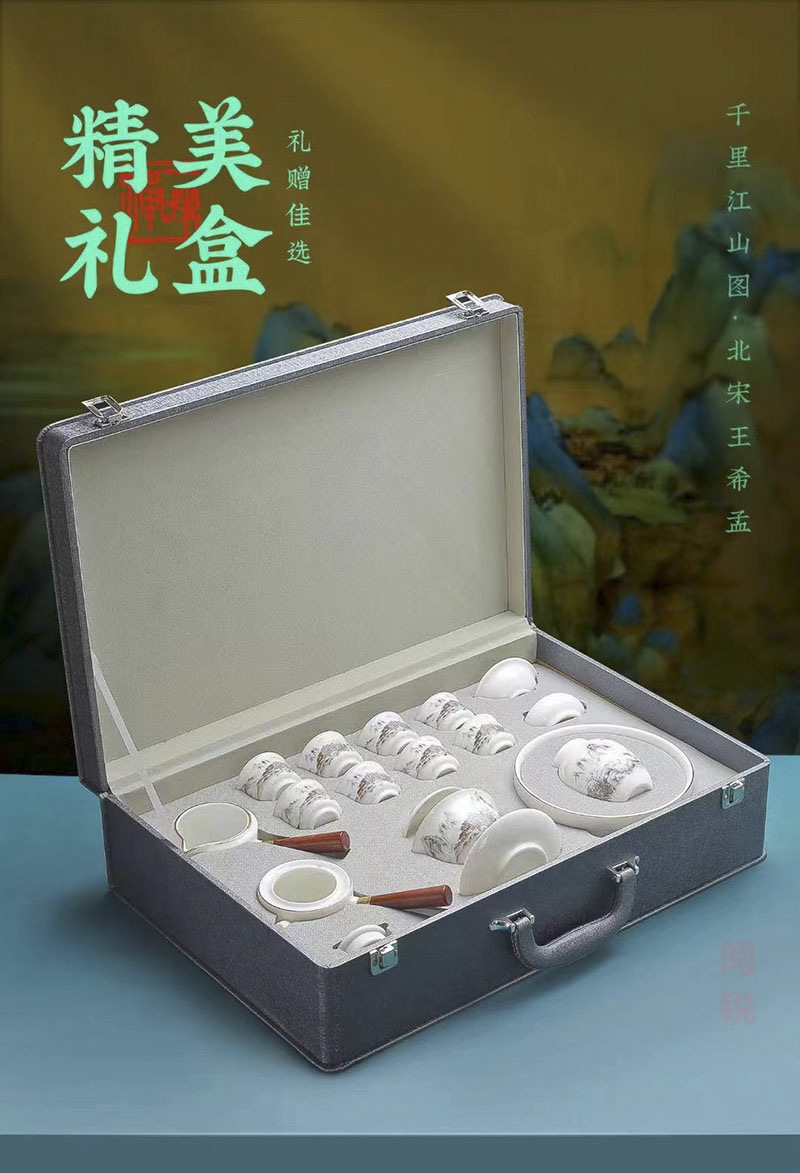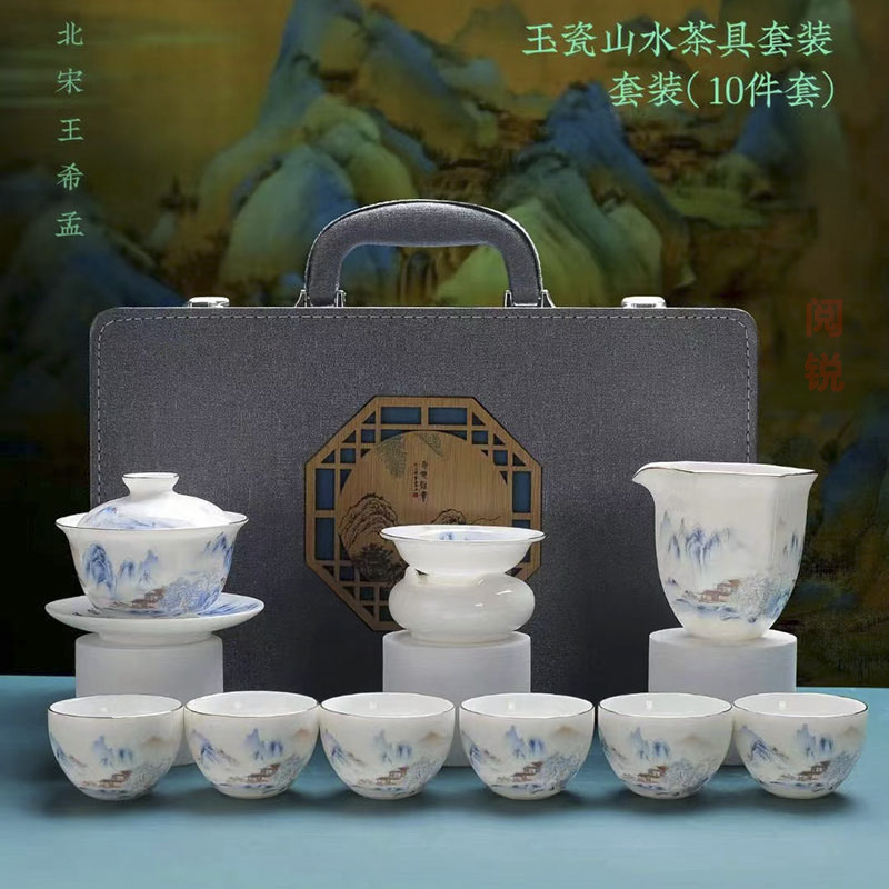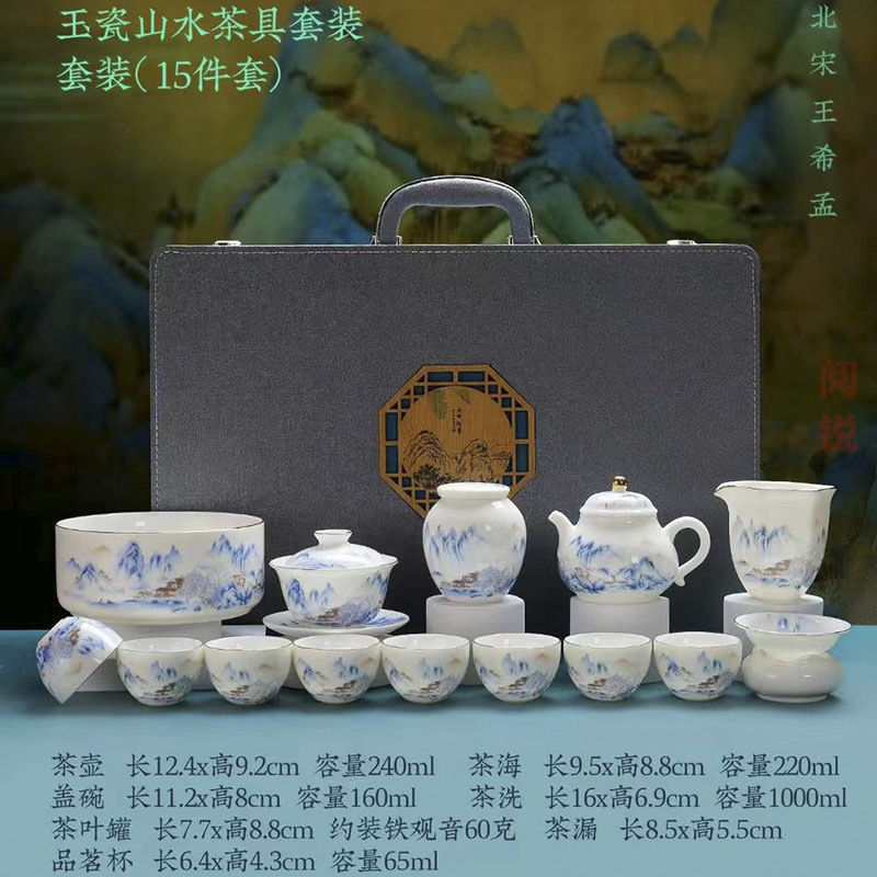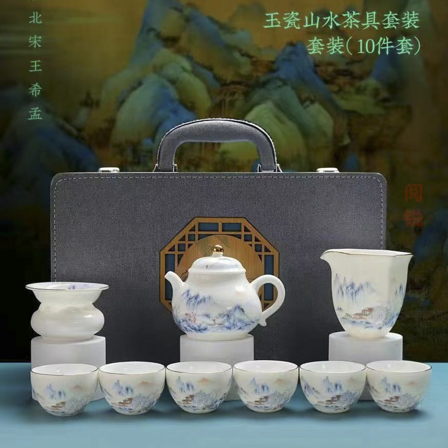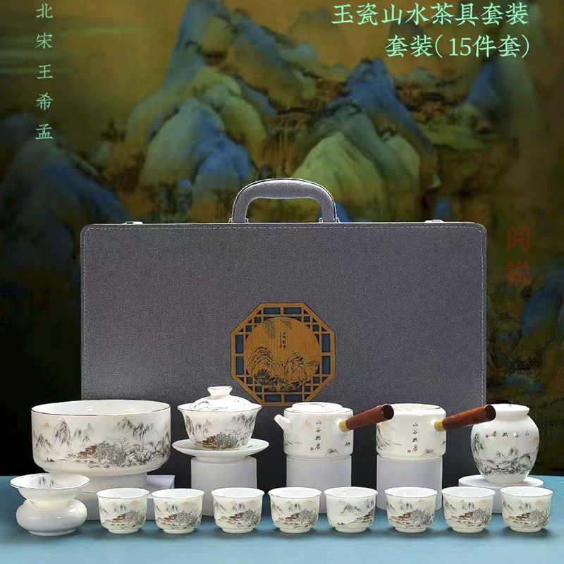 轻奢高档羊脂玉旅行茶具套装家用描金木柄侧把壶防烫陶瓷托盘套装