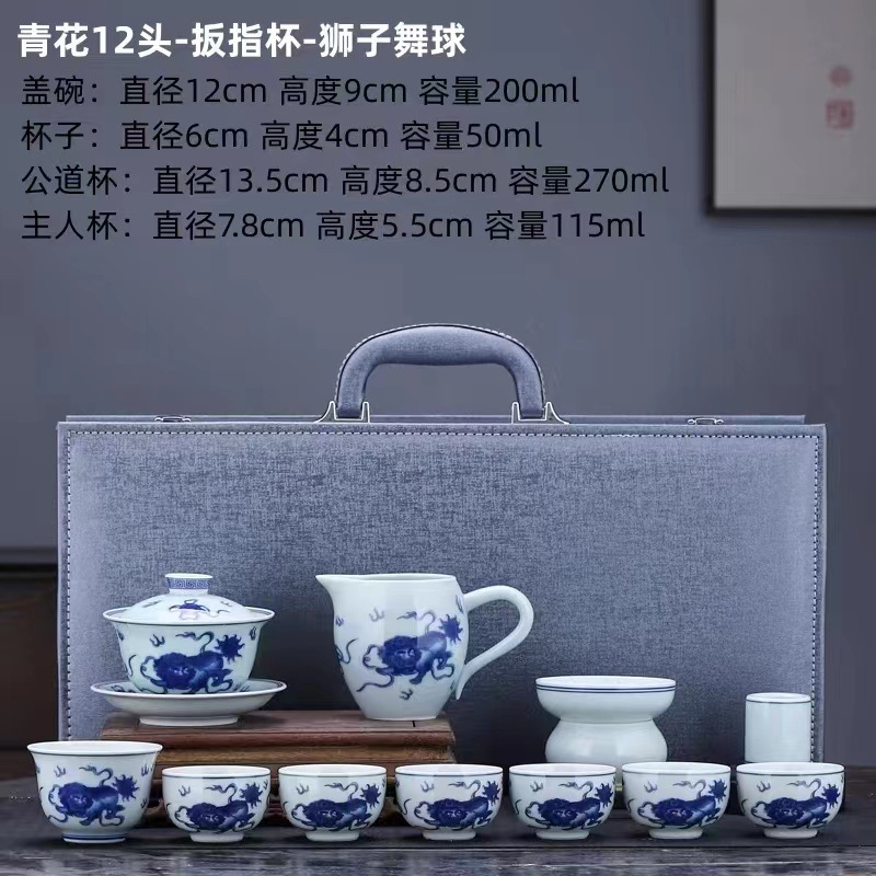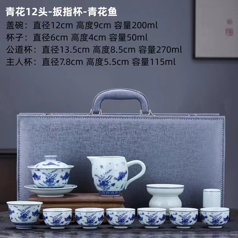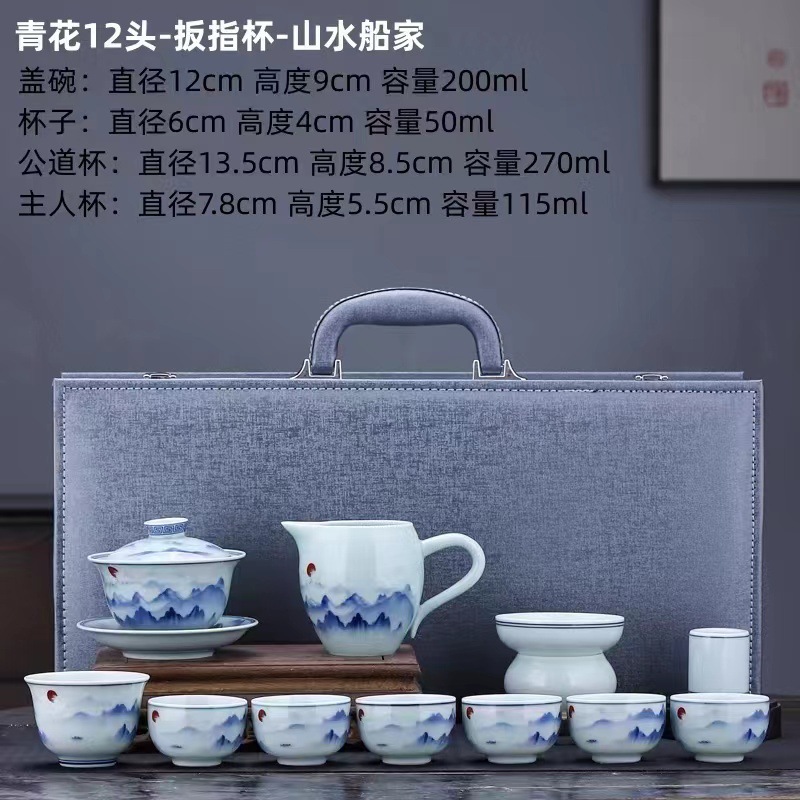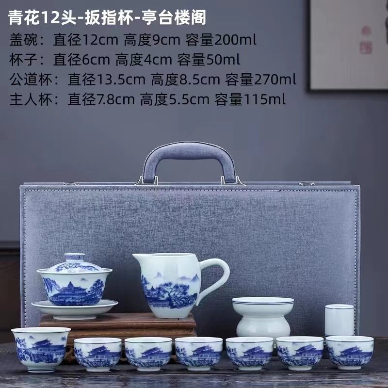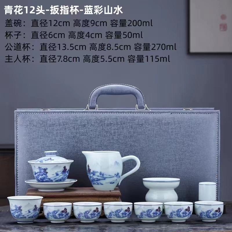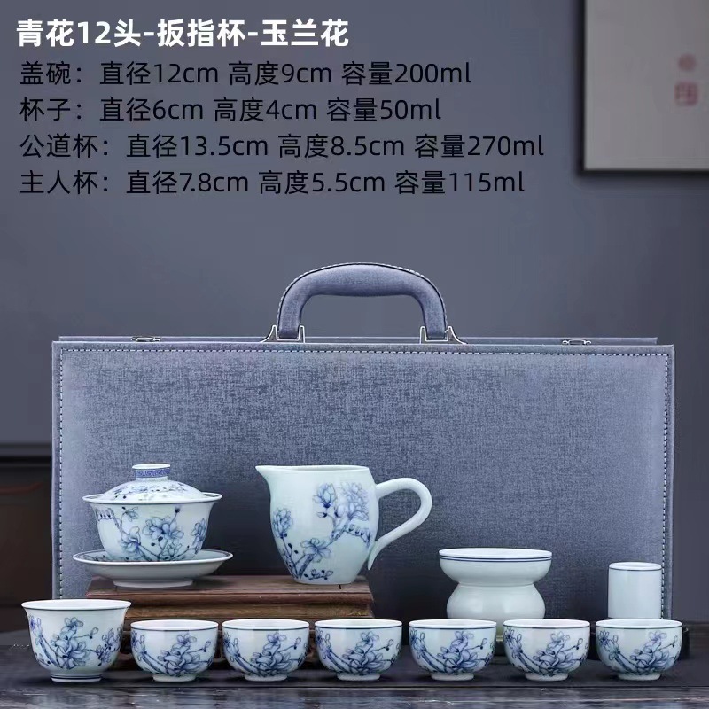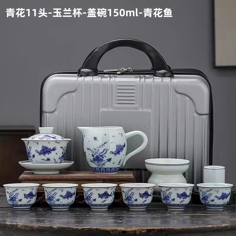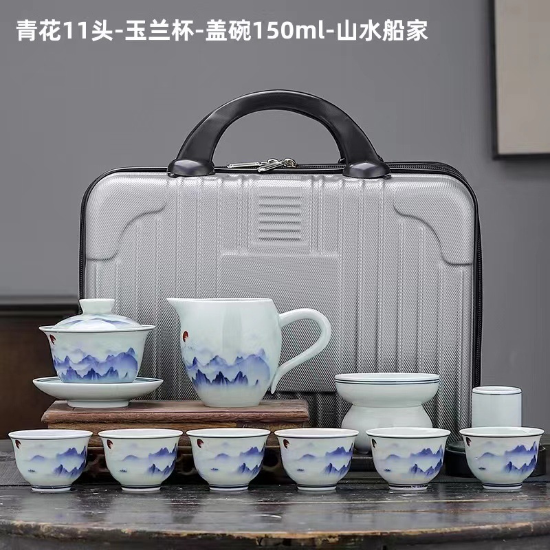 复古青花手提皮包便携旅行茶具套装家用高端茶礼公司活动商务礼品